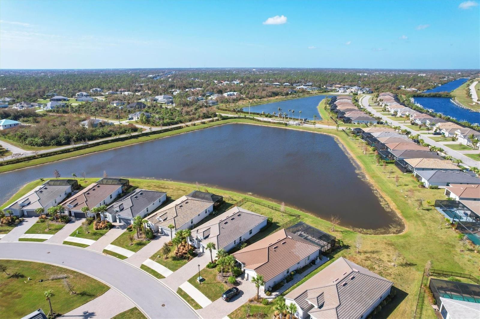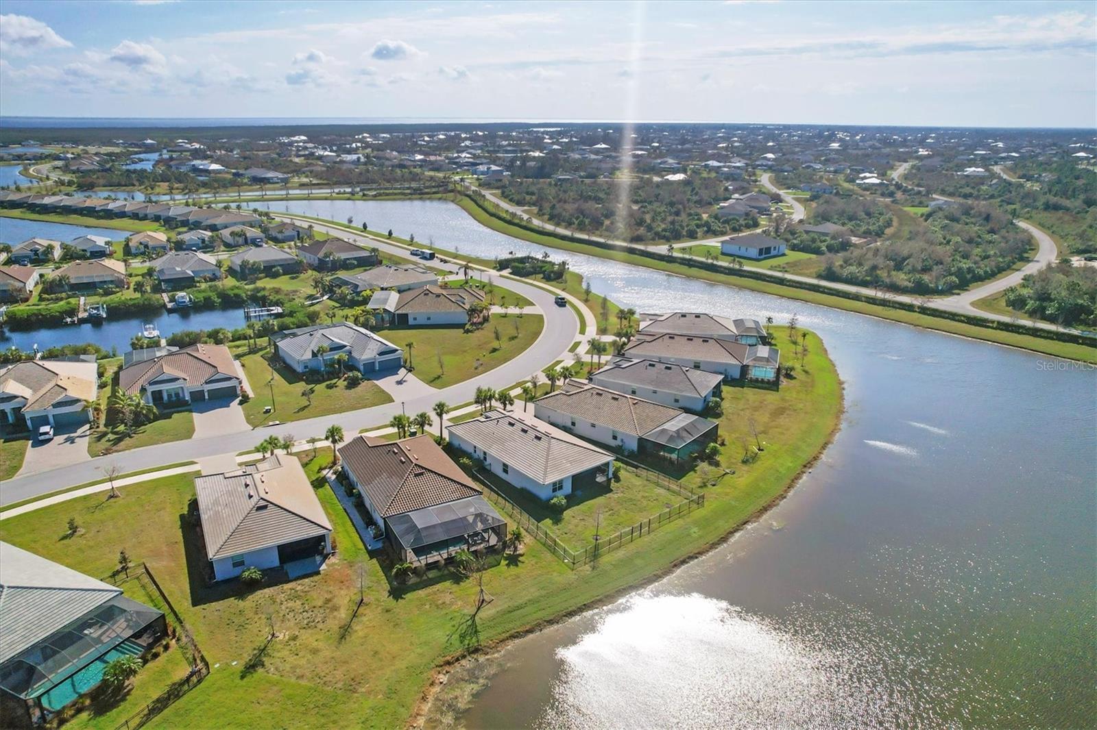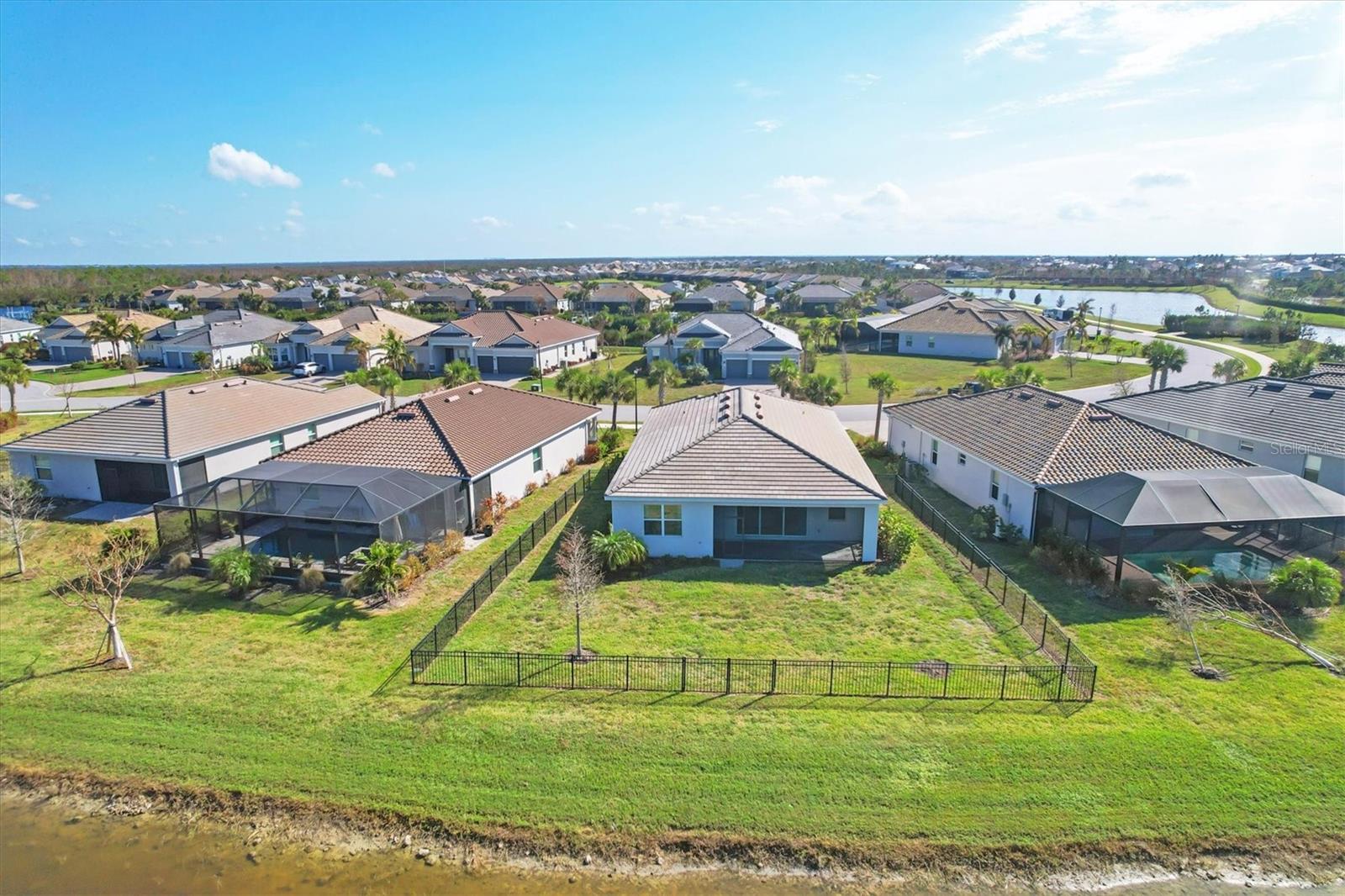 Welcome Home to your quiet oasis!!! With HARBOR WEST'S gated entrances, waterfront location, and no back-to-back homesites, the community offers a sense of exclusivity and security with privacy and open space. Experience the most incredible sunsets right from your back lanai with over 75 feet of serene lake views and be greeted by the inviting, light filled open-concept floor plan featuring impact-resistant doors and windows and more than $30,000 in upgrades. The home boasts an expansive kitchen island and triple pocket sliding doors that seamlessly blend indoor and outdoor living. The additional den space could serve as either an office, a fourth bedroom, or a media room. And delight in the oversized screened lanai, offering an ideal setting to relish Florida's breathtaking sunsets and tranquil lake views with the fenced back yard creating a private oasis to enjoy the surrounding wildlife. Discover modern elegance with a sleek electric fireplace with wood shiplap surround adding a stylish and cozy touch to the living space. The kitchen is upgraded with a stainless-steel vent hood, spacious single bowl sink, and newer appliances. Enjoy the ease of maintenance free lawncare and landscaping, giving you more time to explore Florida's renowned beaches, charming boutiques, fine dining, and premier boating and fishing--all less than 30 minutes away. Seller is willing to give buyer concessions toward closing costs and/or prepaids.