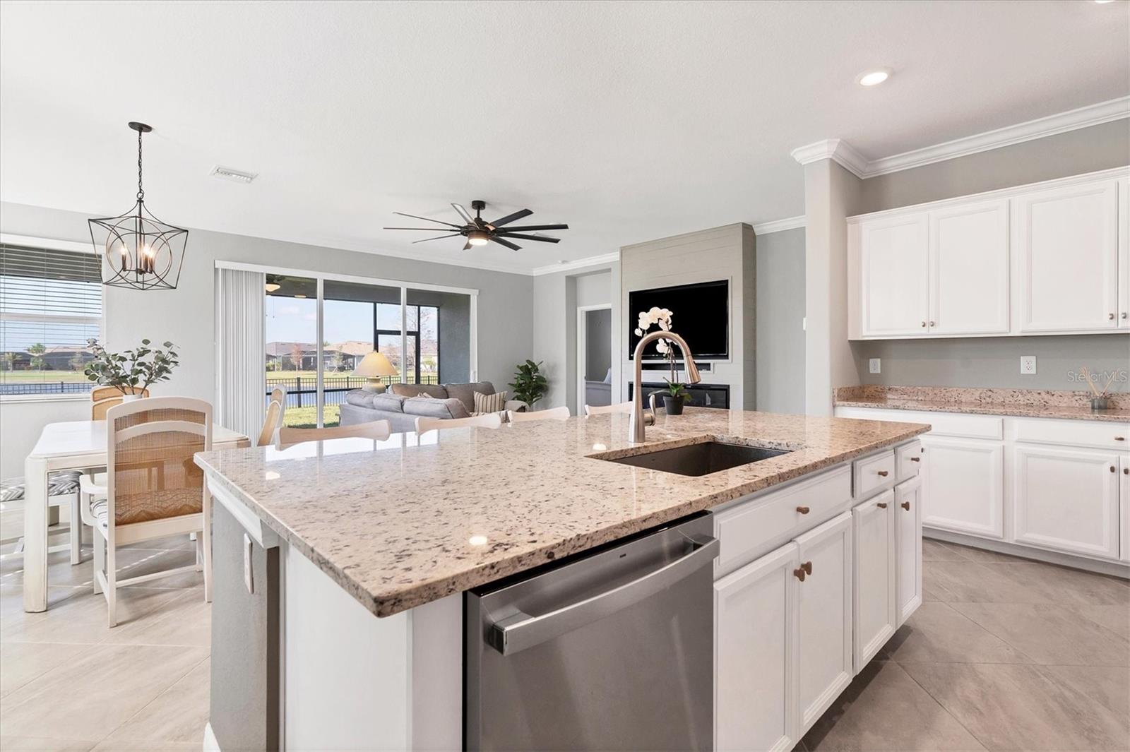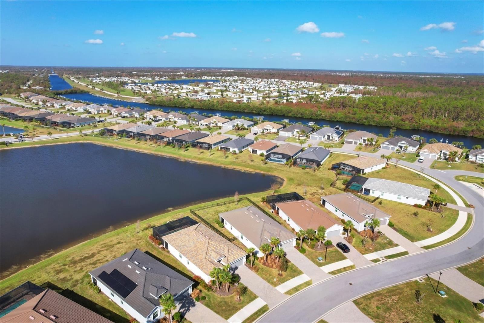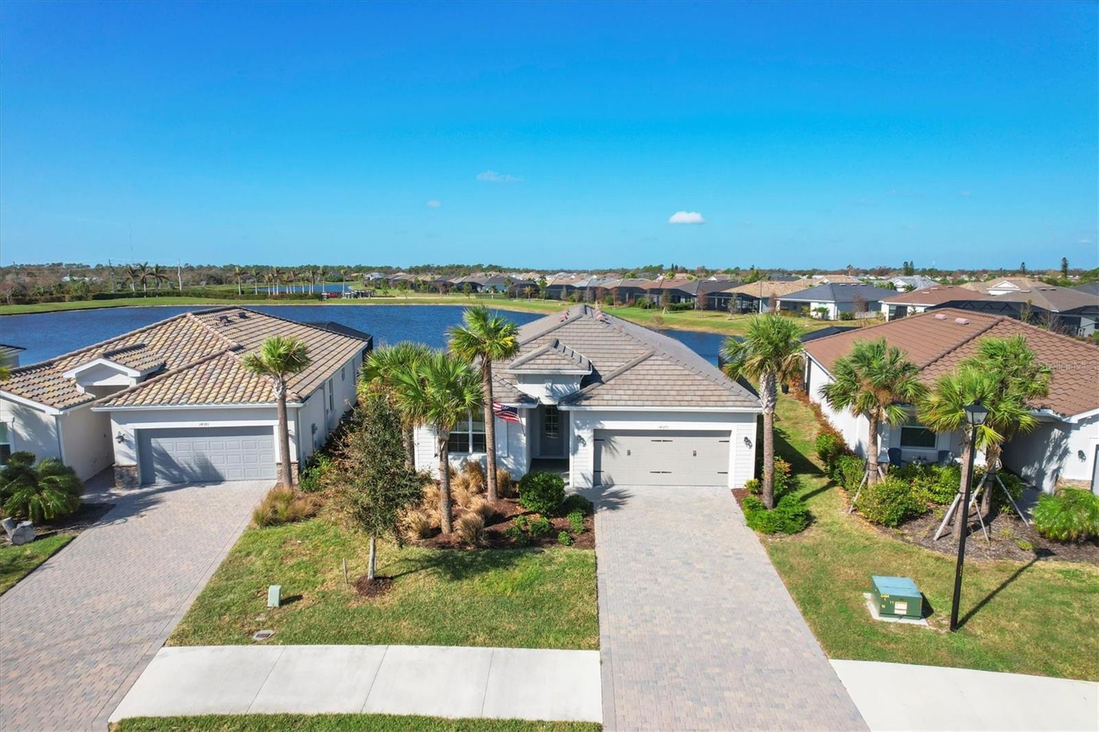 Welcome Home to your quiet oasis!!! With HARBOR WEST'S gated entrances, waterfront location, and no back-to-back homesites, the community offers a sense of exclusivity and security with privacy and open space. Experience the most incredible sunsets right from your back lanai with over 75 feet of serene lake views and be greeted by the inviting, light filled open-concept floor plan featuring impact-resistant doors and windows and more than $30,000 in upgrades. The home boasts an expansive kitchen island and triple pocket sliding doors that seamlessly blend indoor and outdoor living. The additional den space could serve as either an office, a fourth bedroom, or a media room. And delight in the oversized screened lanai, offering an ideal setting to relish Florida's breathtaking sunsets and tranquil lake views with the fenced back yard creating a private oasis to enjoy the surrounding wildlife. Discover modern elegance with a sleek electric fireplace with wood shiplap surround adding a stylish and cozy touch to the living space. The kitchen is upgraded with a stainless-steel vent hood, spacious single bowl sink, and newer appliances. Enjoy the ease of maintenance free lawncare and landscaping, giving you more time to explore Florida's renowned beaches, charming boutiques, fine dining, and premier boating and fishing--all less than 30 minutes away. Seller is willing to give buyer concessions toward closing costs and/or prepaids.