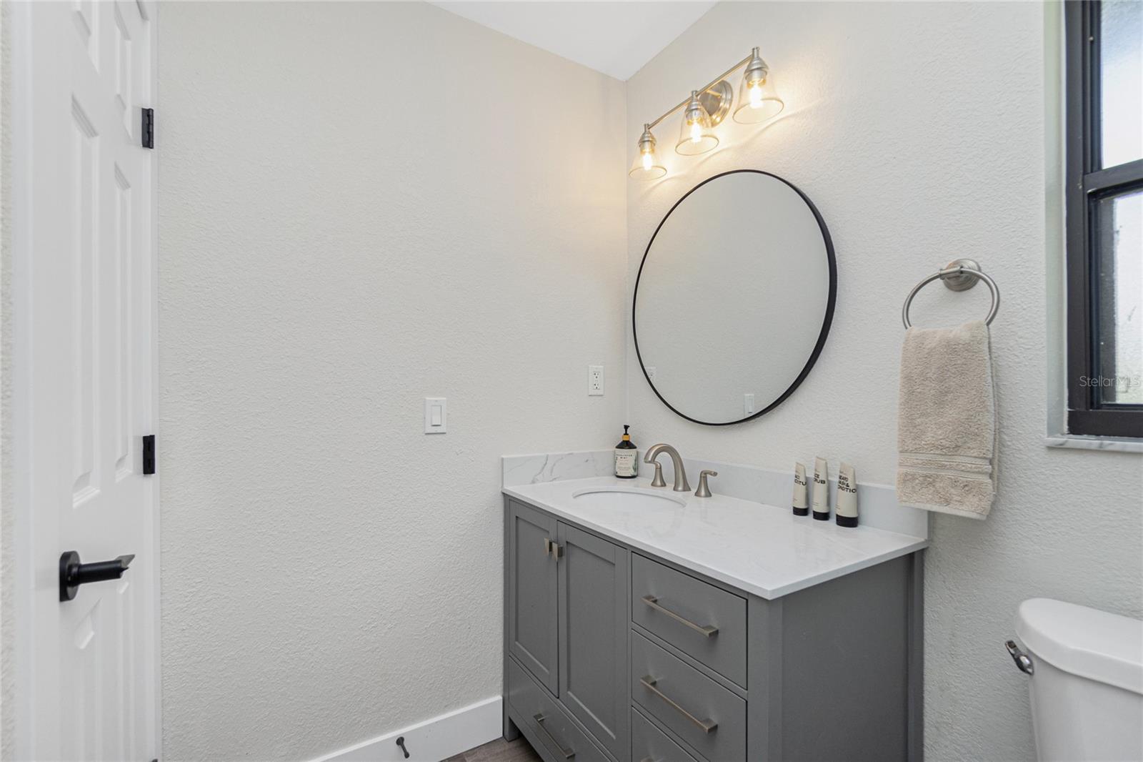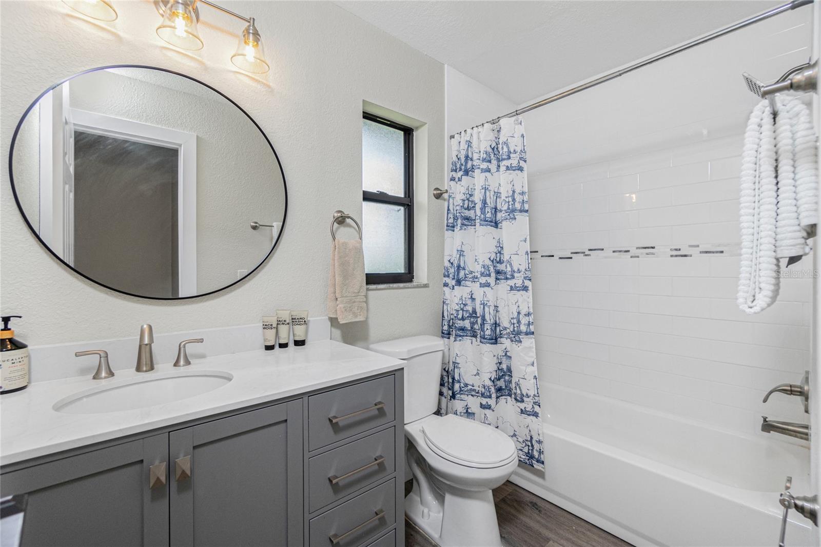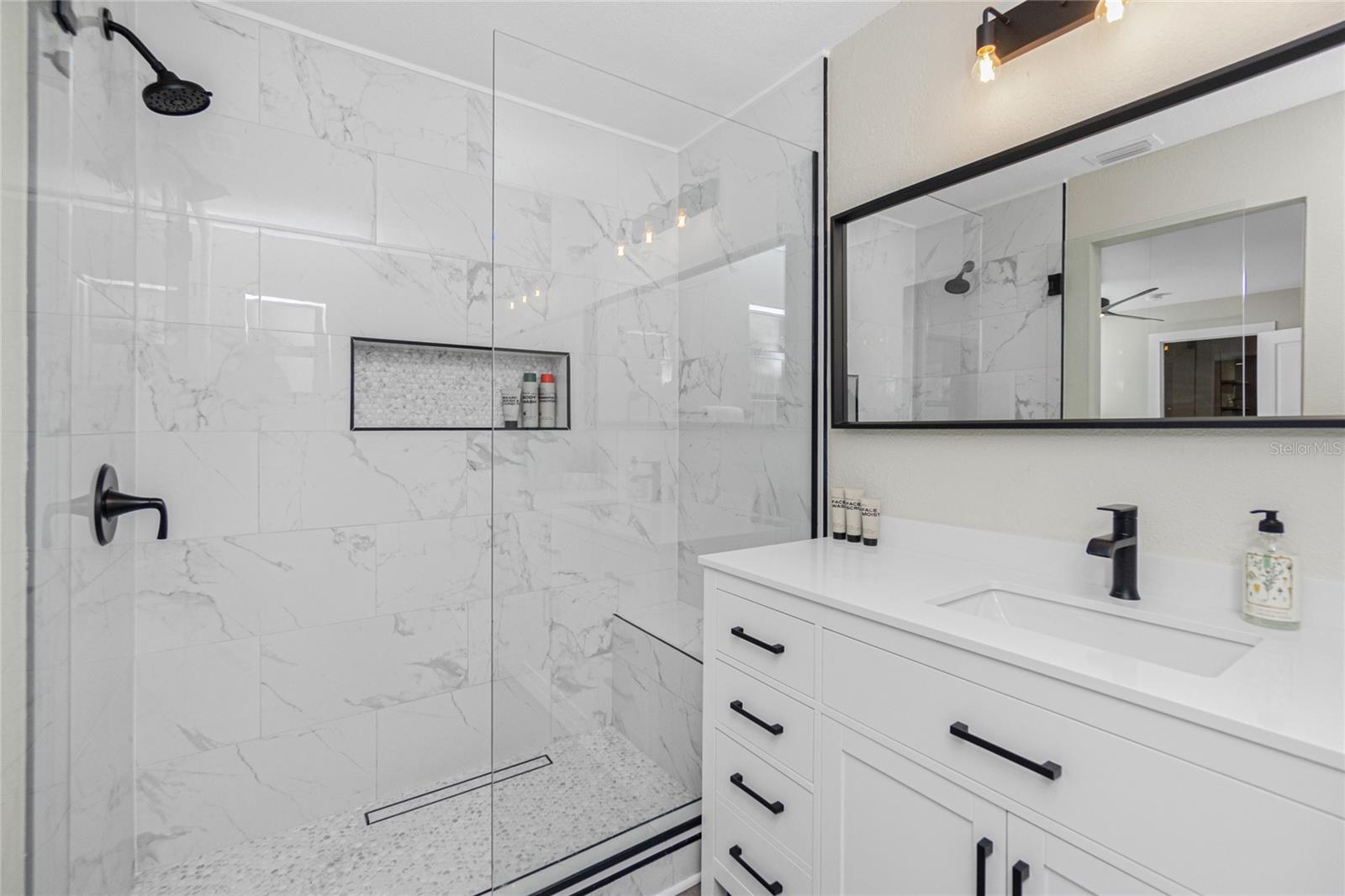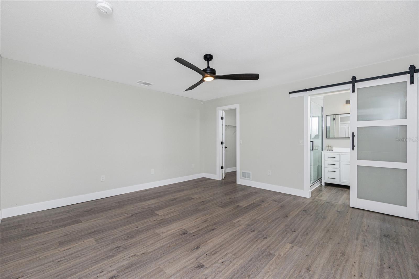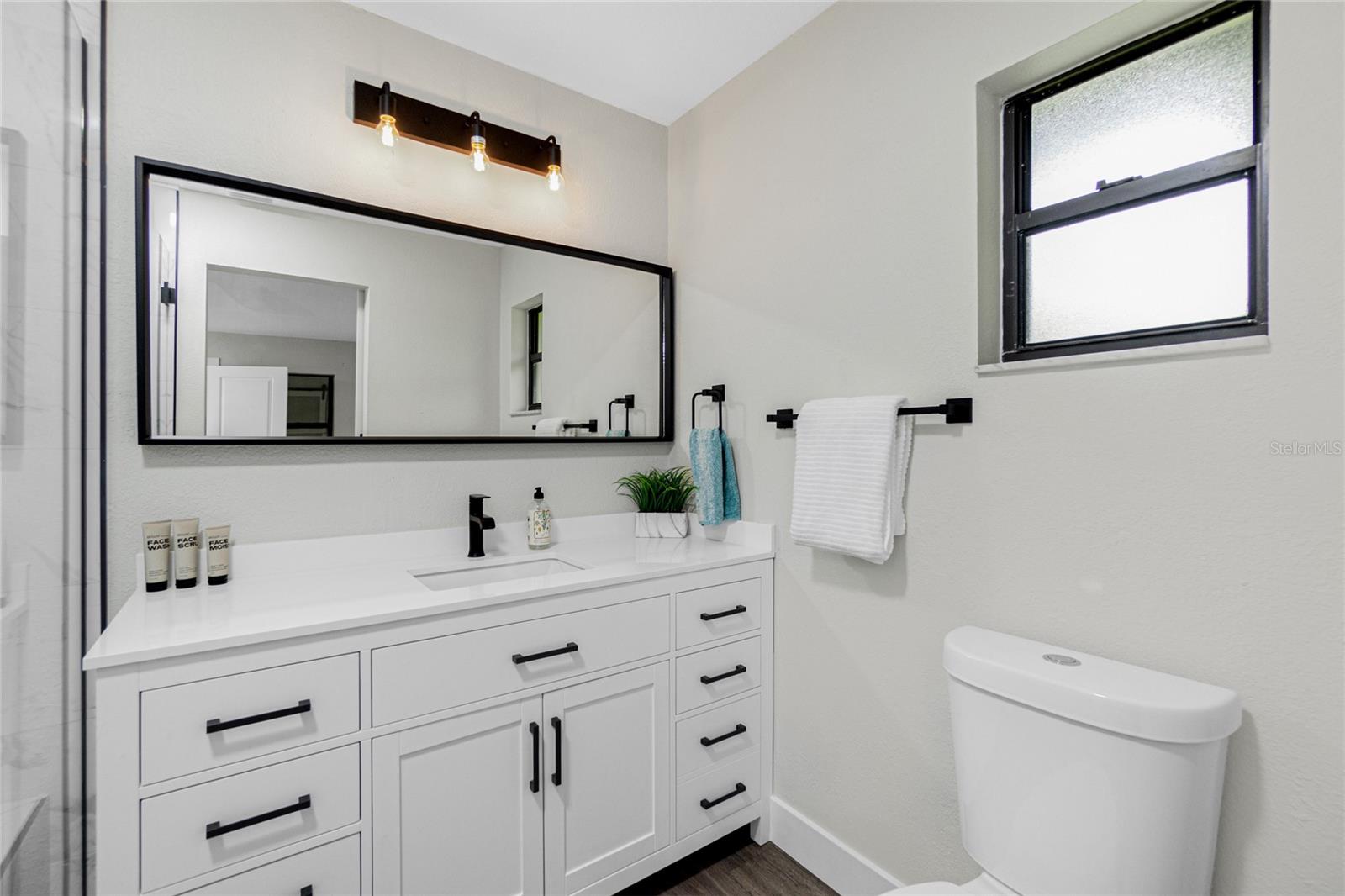Nestled on a serene fresh water canal that leads into Lake Blueberry, this home offers the perfect blend of modern luxury and natural beauty. As you step inside, you will immediately notice the tasteful upgrades that make this house stand out. Contemporary remote controlled light fixtures, new interior doors and moldings, and modern hardware add a touch of elegance to the look and feel of the home. The luxury vinyl plank flooring throughout not only enhances the aesthetic appeal but also provides durability and easy maintenance. The kitchen has been updated with a functional design featuring recessed adjustable ceiling lights, soft-close solid wood shaker cabinets, sparkling quartzite countertops, and top-of-the-line stainless steel LG appliances. It's a chef's delight with plenty of counter space to work with, an abundance of cabinet storage including a full-size pantry, and best of all - counter height seating for casual meals and a place to gather. From the kitchen we can see where this open floor plan allows for full view of the living area and backyard. The large living area is the focal point in the home featuring cathedral ceilings with plenty of natural light shining through all the windows of the backyard water view. The spacious main bedroom offers a picturesque view of the water in addition to its spacious walk-in closet and en-suite bathroom. The bathroom entrance has been updated with a modern barn door with soft close feature to maximize the space. The walk-in shower was upgraded with porcelain tile, a built-in shower bench and a glass enclosure. An oversized vanity allows for comfortable usable space and plenty of storage for all the essentials. Sliding glass doors open to the oversized screened-in lanai where we can experience peace and quiet overlooking the canal to Blueberry Lake. There is a concrete pad already poured in the backyard to build a future storage shed and also potential for adding a dock on the water. With a new roof (2022) and a newer HVAC system (2020), you can enjoy peace of mind knowing that the essential components of the house are in excellent condition, ensuring years of stress-free living. There are no deed restrictions so you may enjoy the freedom of customizing this house tailored to your own vision as well as be able to seize the opportunity of leasing for short or long-term rentals as you prefer. The lot is situated in an X Flood Zone so there is no mandated flood insurance! Schedule a showing today and experience the perfect blend of modern comfort and natural beauty in person.