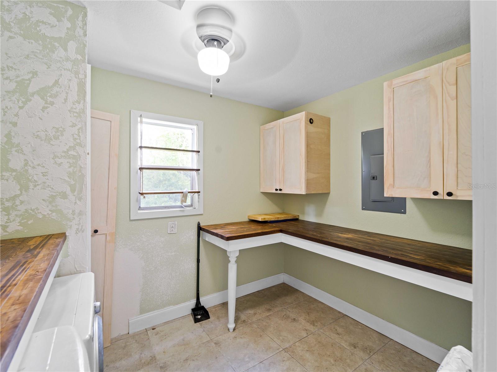 Back on the Market with a BRAND NEW Septic Tank and Field! Welcome to this adorable home in the Gulf Cove community that offers 3 bedrooms, 2 bathrooms, custom built shelving for extra storage, screened in patio, a fully fenced backyard, and a shed that has electricity for all your wood working projects! The roof and AC unit are only 2 years old! With woods all around the home it leaves a very quiet and peaceful. From the outside to the inside, the colors of the home just feel like a nice inviting tropical Florida. After walking in the home, to the right is the master and first bedroom. The master bath has a walk in shower and more custom cabinets for space. The master has his and hers closets and double sliding doors to your screened in porch which you can also access just off the kitchen. The kitchen offers lots of cabinets, a beautiful countertop, and just beyond it is all the amazing custom built storage! To the left of that is the third bedroom with a Murphy style drop down bed so you can use it as a bedroom, office, or play room! It offers an AC wall unit which is supplemental to the homes central AC. Access to the dedicated laundry room is through the porch and again has custom cabinets and counters for all your folding needs. This home is close to all sorts of shopping, dining, and entertainment with a short drive to Englewood Beach.