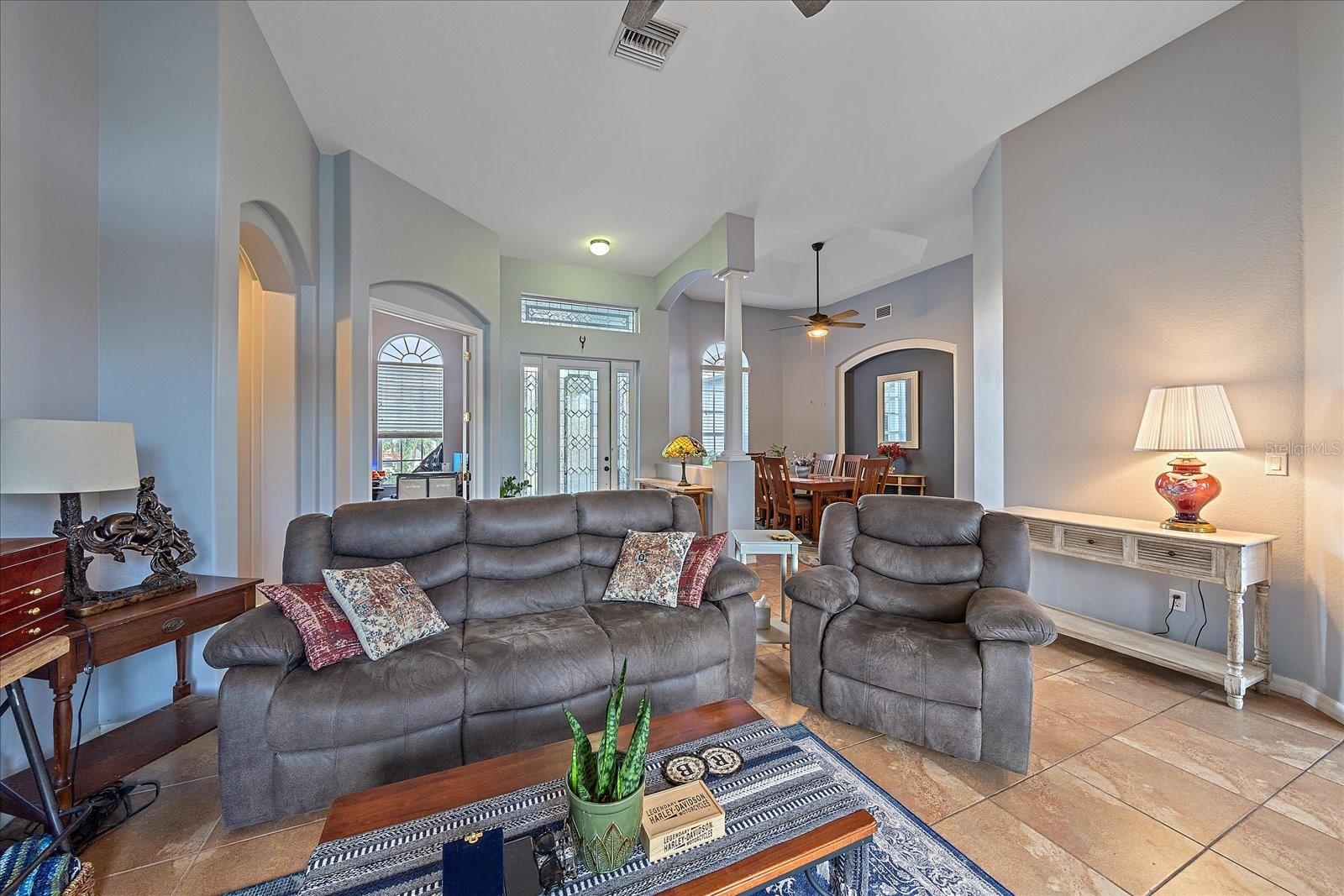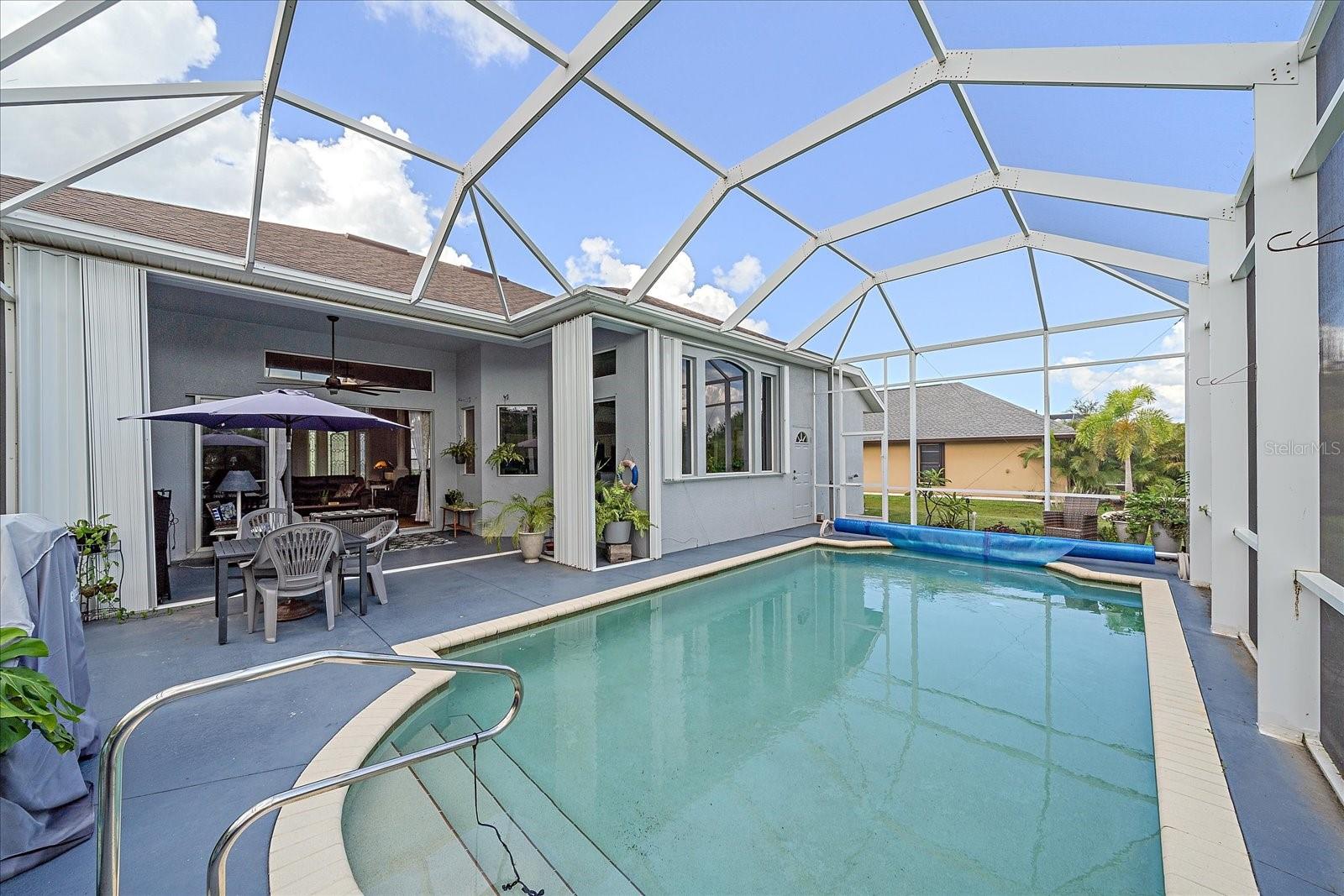 SELLER MOTIVATED! Welcome to 15475 Viscount Circle in the sought-after South Gulf Cove community of Port Charlotte! This immaculate 3-bedroom, 3-bathroom home offers 2,350 square feet of well-designed living space, perfect for comfortable Florida living. Step into the welcoming screened entry, featuring beautiful glass doors, and be captivated by the open view straight through to the sliding doors leading to the covered, screened lanai and stunning (heated) pool. The lanai offers generous space for both relaxation and entertaining, with plenty of room for outdoor dining and lounging. This home features a split floor plan, with bedrooms situated in three corners for privacy. The spacious primary suite has direct access to the lanai, tray ceilings, double walk-in closets, and a luxurious ensuite bathroom with a walk-in shower, jetted jacuzzi tub, water closet, and linen closet. A second bedroom located near the kitchen and family room is next to a full bathroom, with convenient access to the pool area, making it perfect as a pool bath. The kitchen is a chef's dream with ample counter space, an island, and an easy flow to the garage through the laundry room, making grocery trips a breeze. There’s space for casual dining at the kitchen counter or a more formal meal in the dining area, all while staying connected to the family room. Looking for a quiet spot? Step into the private home office with French doors—perfect for work or creative pursuits. With your home as your sanctuary add peace of mind with the new roof (2022) and accordion shutters. Located in a community with a voluntary HOA, South Gulf Cove offers fantastic amenities, including a clubhouse with AC, WiFi, picnic areas, BBQ grills, and rental options for private events. Enjoy outdoor activities at nearby parks like St. Paul Linear Park, South Gulf Cove Park, and the Butterford Waterway Boat Ramp, or explore nearby golf courses and beaches at Manasota Key, Boca Grande, and Englewood. This home has it all—luxury, comfort, and access to the best of Florida living!