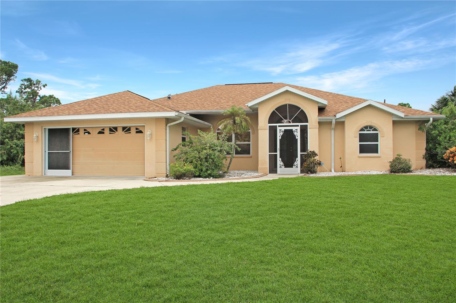 HUGE PRICE REDUCTION -Priced to SELL -MOTIVATED Seller-...This Amazing POOL home features 3 bedrooms and 2 baths with a large fenced yard. NO FLOOD ZONE.. NO HOA'S..NO DEED RESTRICTIONS..NO DAMAGE FROM MILTON NOR HELENE STORM It's a great location with privacy! Beautifully landscaped backyard and pool area for entertaining. The primary bedroom has 2 walk-in closets and an ensuite bathroom with 2 sinks a soaking tub and a walk-in shower. Also, it has sliders right out to the pool lanai, so you could wake up and take a morning swim :) It has a nice large kitchen with lots of storage and newer appliances. An aquarium window in the kitchen nook looks out to the pool. Split bedroom plan to have your own oasis on one side of the home. Two large living spaces..one for a media room and one for perhaps a quiet time space. Designated dining space for a large party. The cathedral ceiling in the living spaces has a grandeur feel when you walk into the home. Mature landscaping around with cement curbing. Roof replaced 2021, AC 2010, Septic tank replacement 2019. The tall PVC fence in the backyard..very pleasing surroundings and privacy for all pets and small folks to play outside.. Minutes from shopping, healthcare, and entertainment and is approx. 40 minutes to Englewood Beach. The location is a quick smooth ride and easy access to Venice Beach, North Port, Punta Gorda... and south..to Fort Myers. Wide sidewalks across the street for jogging, bicycling, and walking...Based on estimates from real estate investment sites, renting a home like this is projected to cost about $2,912 approximately a month. In contrast, the estimated mortgage payment is roughly $2471/approximately a month—the difference you can calculate of the savings.. This makes buying the home a far more sensible and affordable option than renting a similarly high-quality property like this ONE!! Schedule a showing soon before it's gone !!