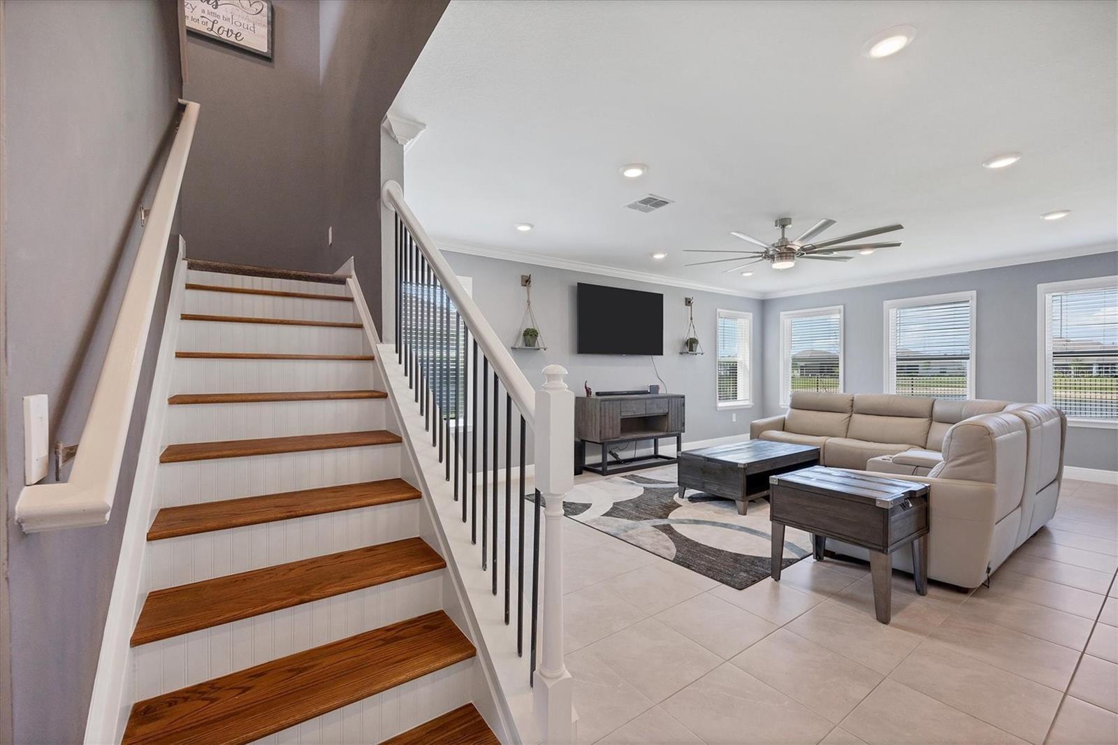 Welcome to your maintenance-free lakefront retreat! This stunning two-story home offers incredible lake views from the spacious lot with elegant fencing. Enjoy the large screened in lanai and serene surroundings. Inside, you’ll find 4 bedrooms, 3.5 bathrooms, and a 3-car tandem garage. The open floor plan features crown molding, a gourmet kitchen with 42-inch cabinets, and a pantry with custom wood shelving. The primary suite boasts a tray ceiling and a spa-like bathroom with an extended shower. Upstairs, enjoy a bonus room, loft, and convenient laundry. This home combines luxury, comfort, and unbeatable views. Don’t miss out!