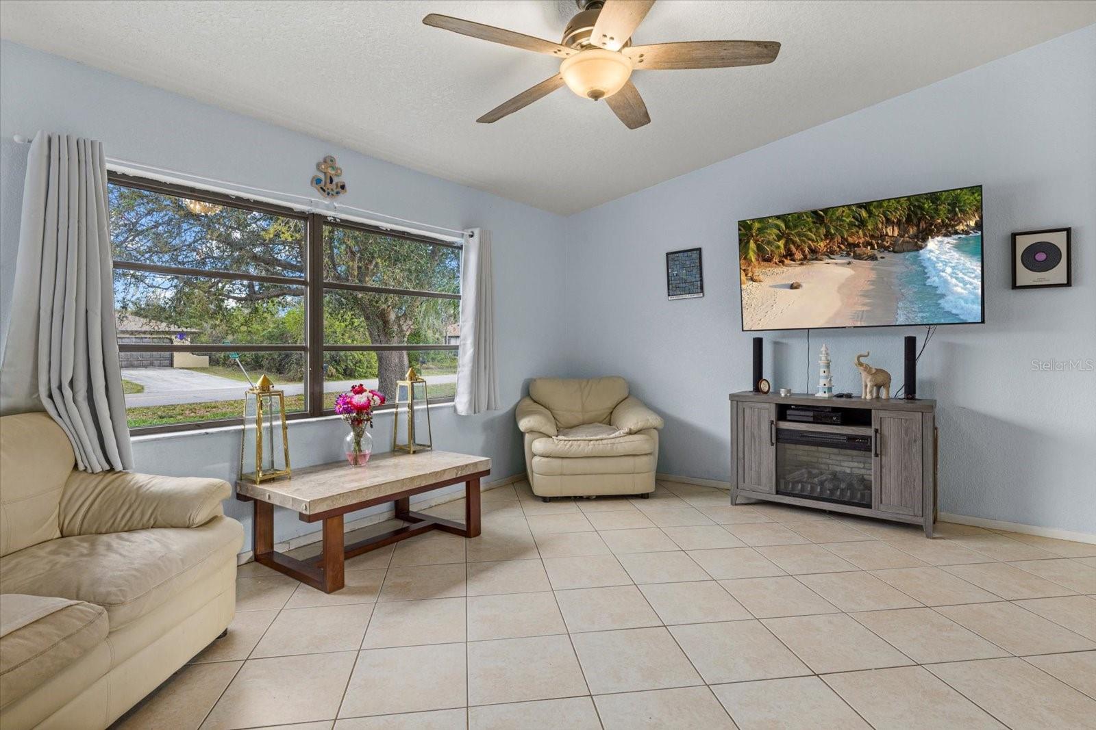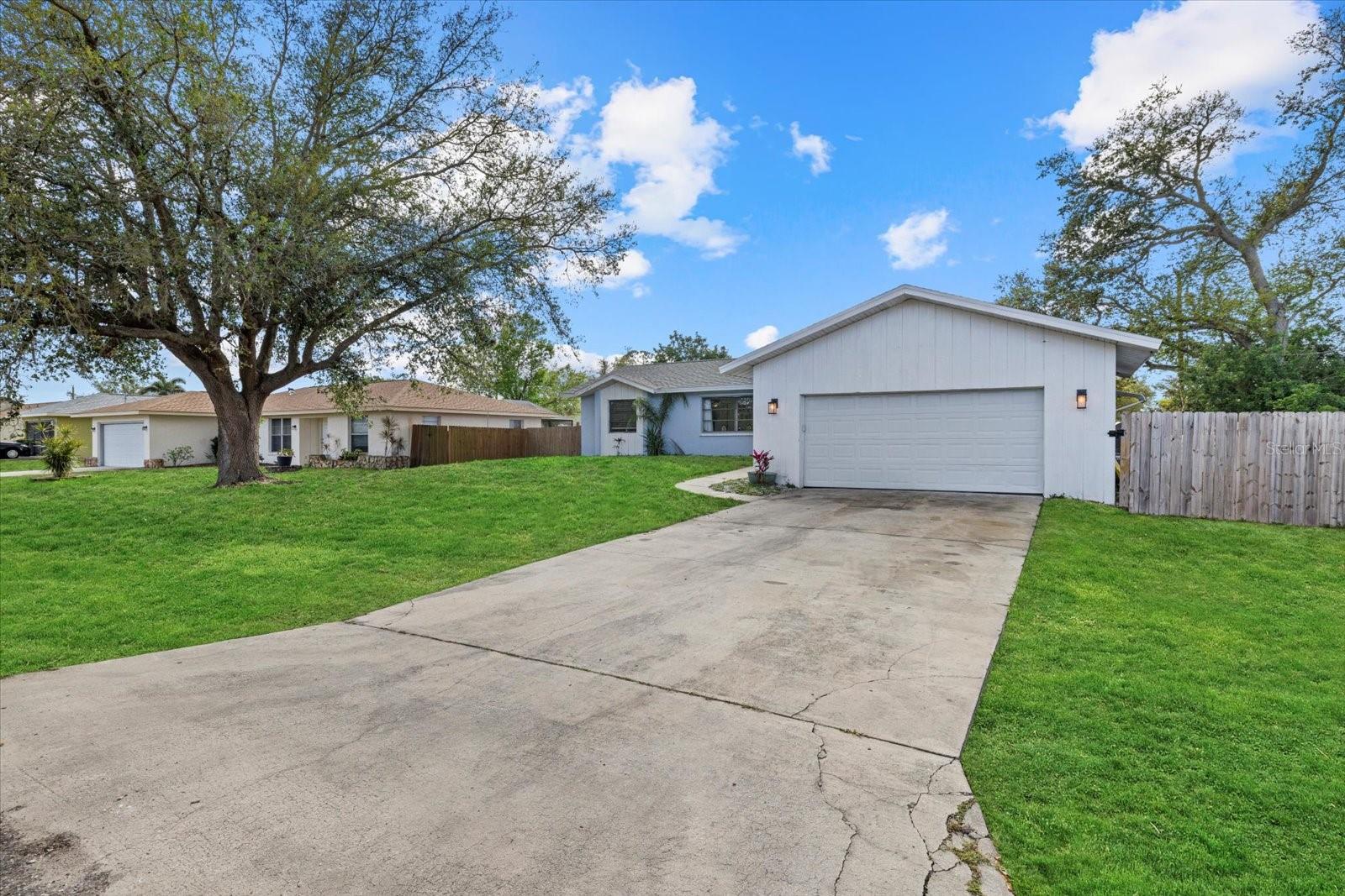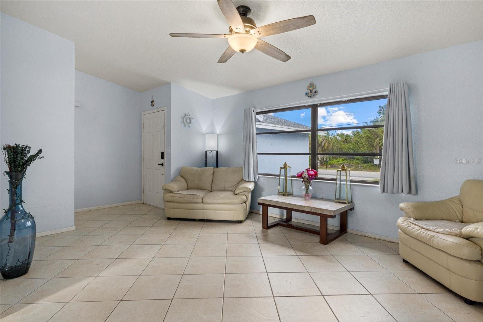 One or more photo(s) has been virtually staged. This charming 2-bedroom, 2-bathroom home in Port Charlotte offers an ideal blend of comfort and convenience! With a 2-car garage and a prime location near shopping, dining, medical facilities, schools, and recreational areas, you'll have everything you need right at your fingertips. Inside, enjoy the airy feel of the high ceilings and a desirable split floor plan. The formal living and dining areas are perfect for entertaining, while the Florida room adds a desirable location for relaxation. This additional room, includes a Murphy bed and can be transformed into a guest room, den, or office which faces the spacious backyard for a private outdoor space. The pristine kitchen, complete with new appliances (2024) and a pantry, makes meal prep a breeze. A large laundry room features a convenient laundry tub, and the master bedroom boasts a walk-in closet and a full master bath. The second bathroom includes a tub shower and a lovely skylight, and both bathrooms have their own linen closet. Additional highlights include tile floors throughout, ceiling fans in most rooms, and practical features like panel hurricane shutters, a shed in the backyard, and a pull-down staircase in the garage for extra storage. This beautiful home has ample storage throughout! There is an oversized pantry in the kitchen and a spare closet at the entrance! Enjoy peace of mind with a new shingle roof installed in 2023 and the property being located outside of a flood zone. Centrally located to schools, churches, shopping, and medical facilities. Great starter home or affordable winter retreat! Short drive to beaches, Punta Gorda and Sarasota. This home is ready for you to move in and enjoy! Bring your offers!