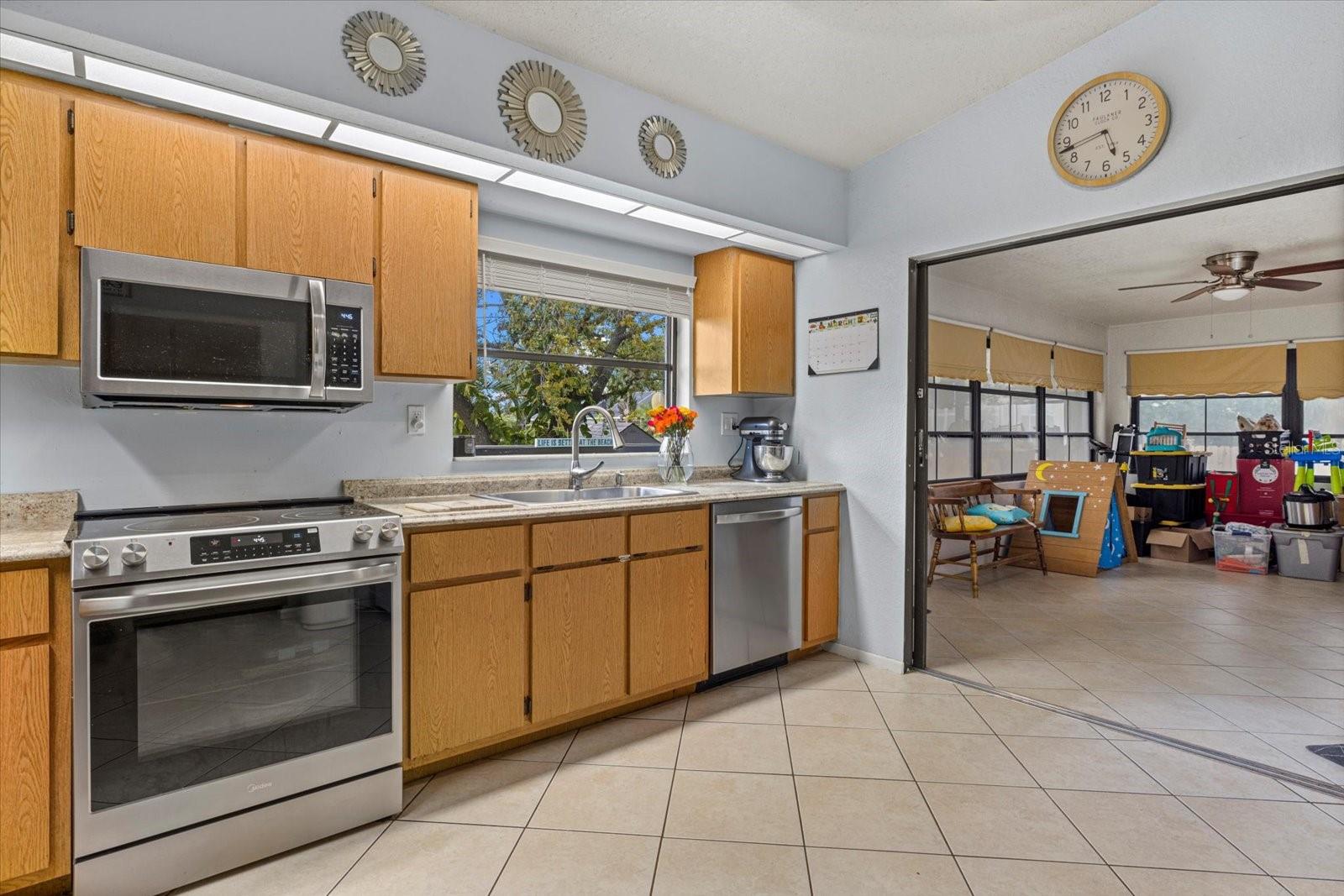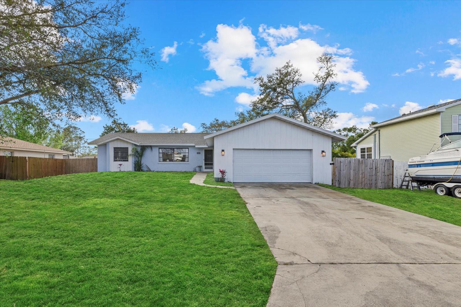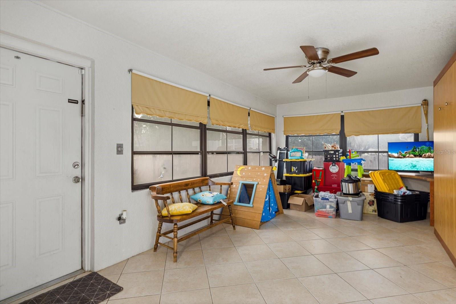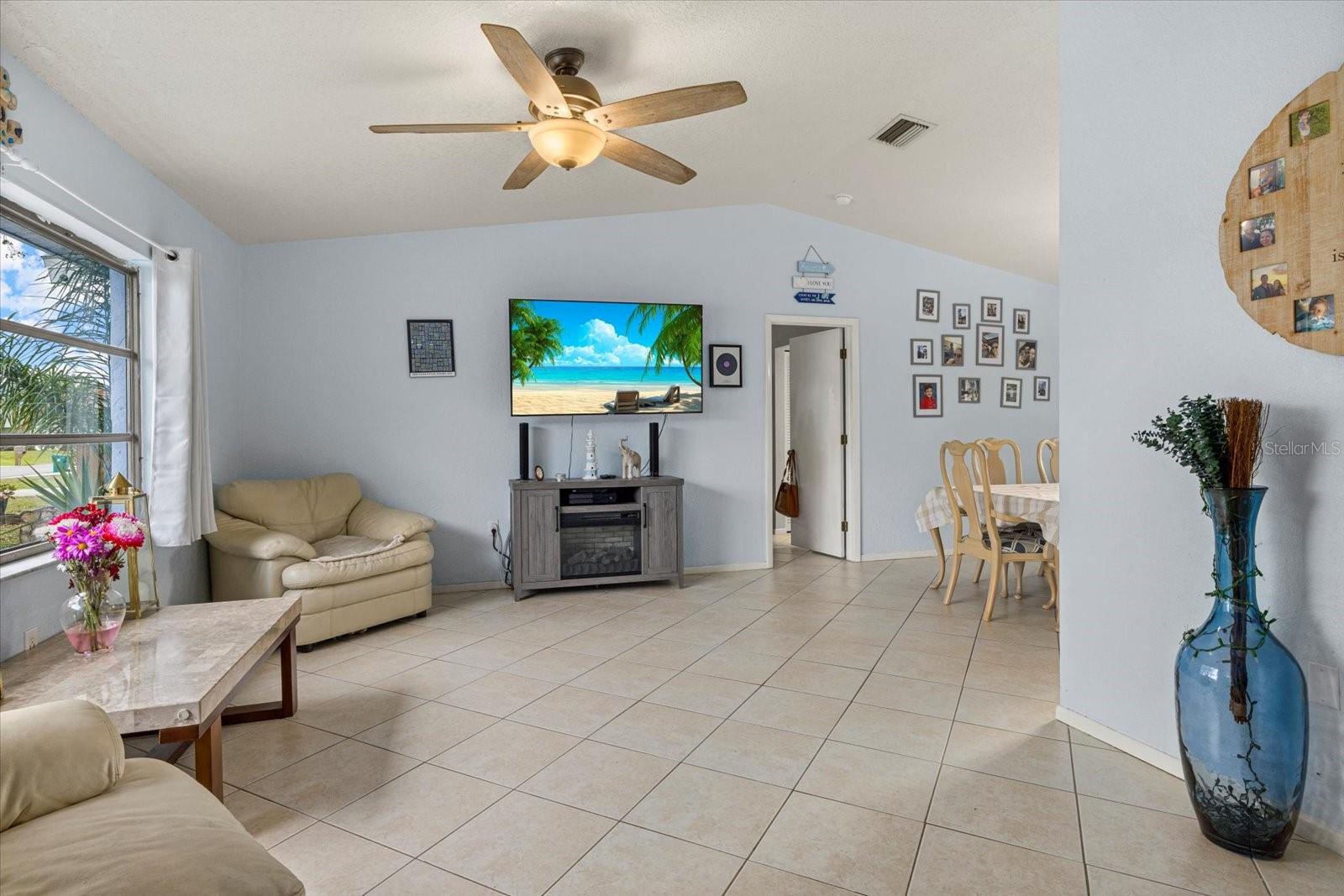 One or more photo(s) has been virtually staged. This charming 2-bedroom, 2-bathroom home in Port Charlotte offers an ideal blend of comfort and convenience! With a 2-car garage and a prime location near shopping, dining, medical facilities, schools, and recreational areas, you'll have everything you need right at your fingertips. Inside, enjoy the airy feel of the high ceilings and a desirable split floor plan. The formal living and dining areas are perfect for entertaining, while the Florida room adds a desirable location for relaxation. This additional room, includes a Murphy bed and can be transformed into a guest room, den, or office which faces the spacious backyard for a private outdoor space. The pristine kitchen, complete with new appliances (2024) and a pantry, makes meal prep a breeze. A large laundry room features a convenient laundry tub, and the master bedroom boasts a walk-in closet and a full master bath. The second bathroom includes a tub shower and a lovely skylight, and both bathrooms have their own linen closet. Additional highlights include tile floors throughout, ceiling fans in most rooms, and practical features like panel hurricane shutters, a shed in the backyard, and a pull-down staircase in the garage for extra storage. This beautiful home has ample storage throughout! There is an oversized pantry in the kitchen and a spare closet at the entrance! Enjoy peace of mind with a new shingle roof installed in 2023 and the property being located outside of a flood zone. Centrally located to schools, churches, shopping, and medical facilities. Great starter home or affordable winter retreat! Short drive to beaches, Punta Gorda and Sarasota. This home is ready for you to move in and enjoy! Bring your offers!