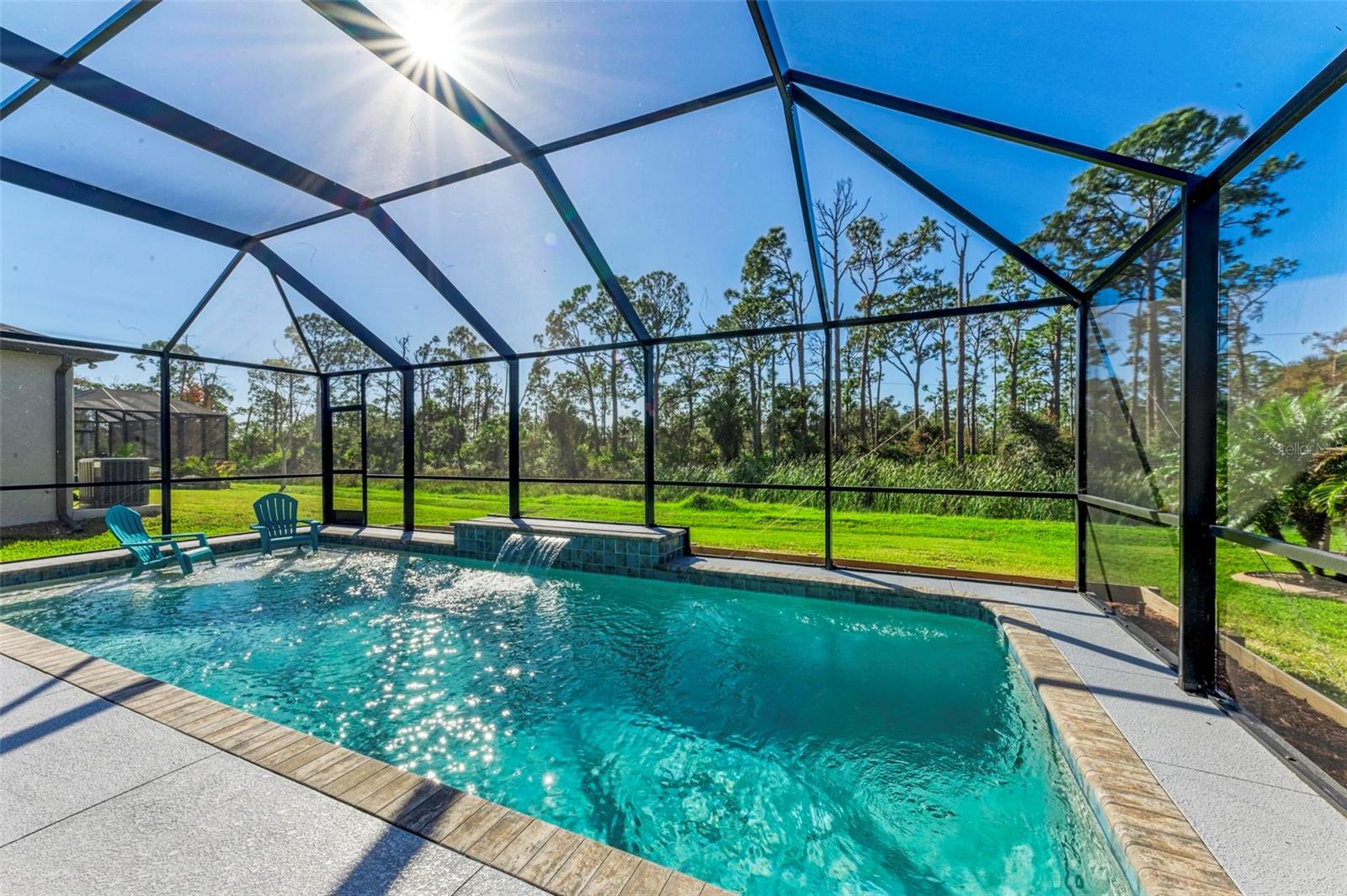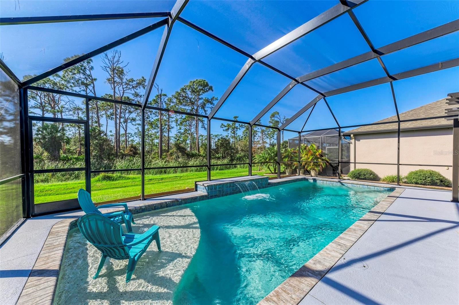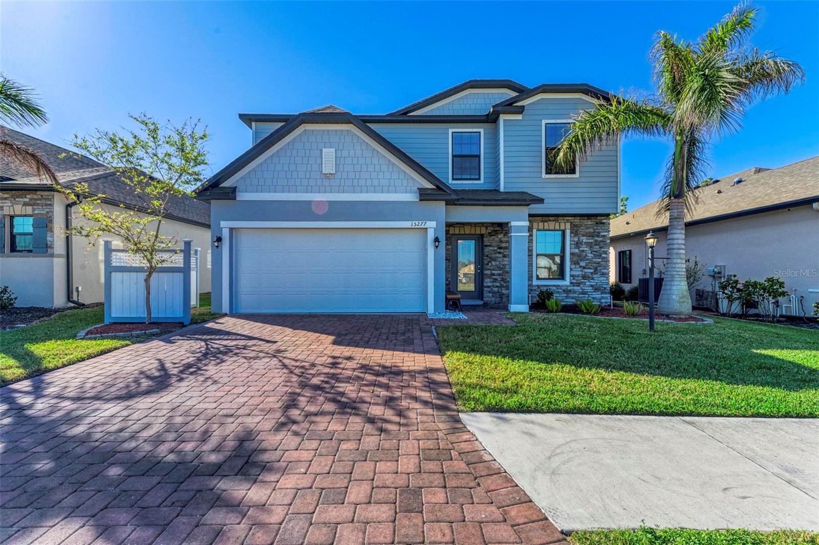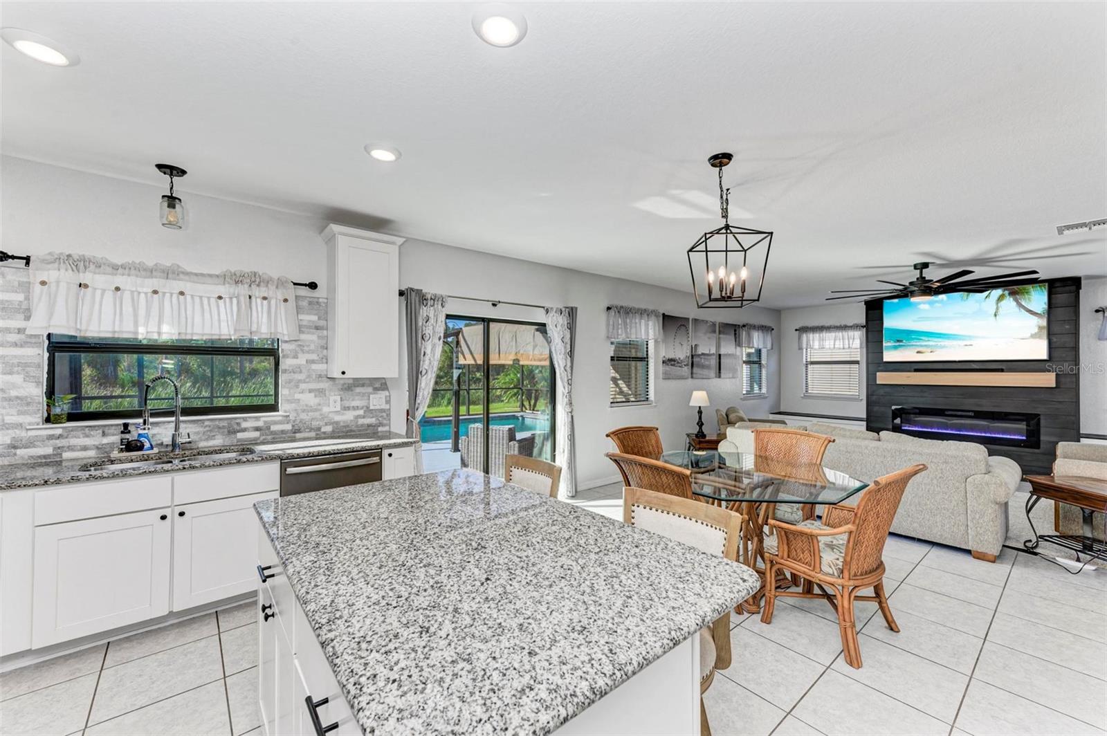 Welcome to your dream home in the gated community of Villa Milano! This 4 bedroom, 2 and a half bath, with pool, has no homes built behind it. The expansive lanai, pool and backyard have a woods view, making it your own, private oasis. Step into the living room, with your custom built ship lap wall with storage and a fireplace. Kitchen boasts a spacious island, granite countertops, and stainless steel appliances, with a brand new dishwasher. Relax in your master suite with its tray ceiling and on-suite bath featuring dual sinks and separate walk-in shower. There are 3 additional bedrooms, all with ample closet space. And additional full bathroom. Dedicated laundry room in house. Downstairs, you will find a large den, that can be used as an office, entertainment room for family movie night, game room, or an additional bedroom. Come make your place in Villa Milano!