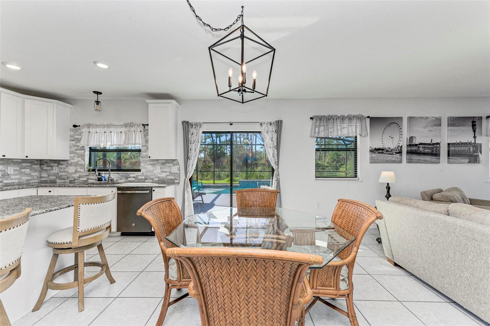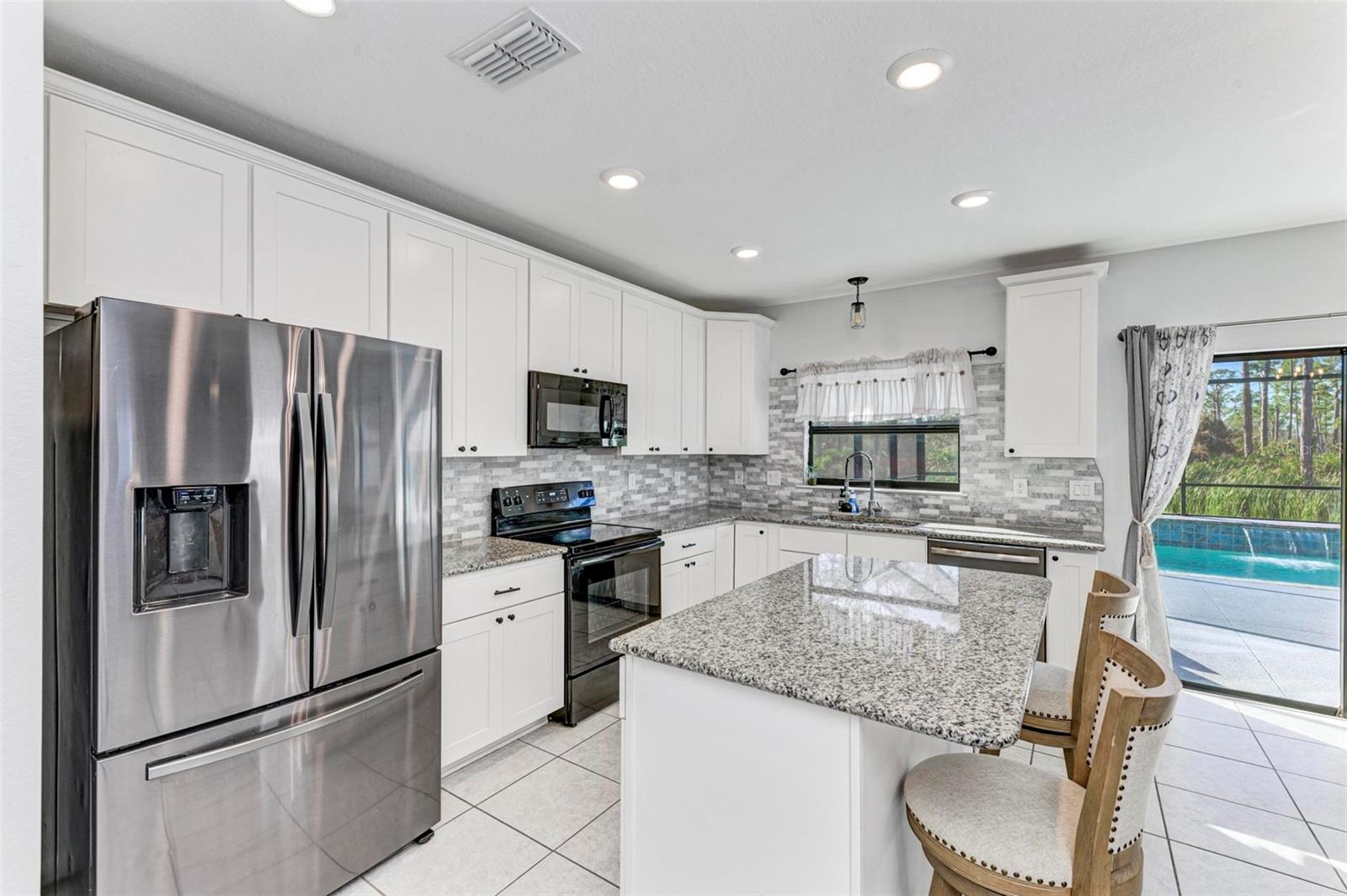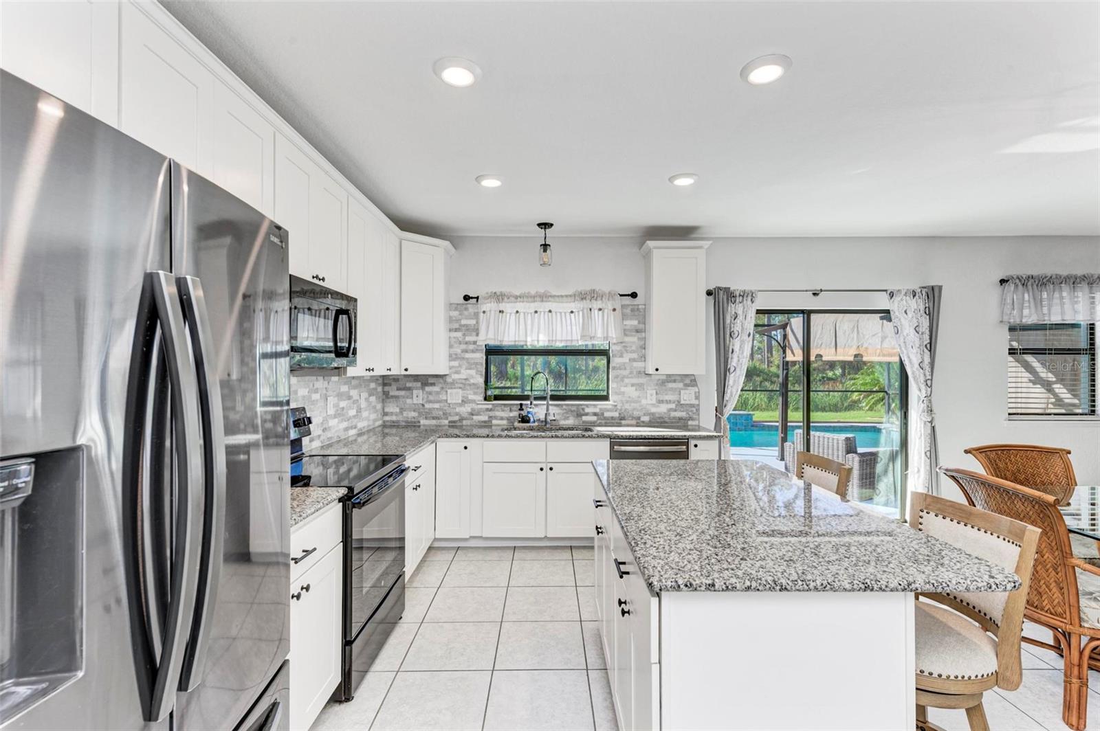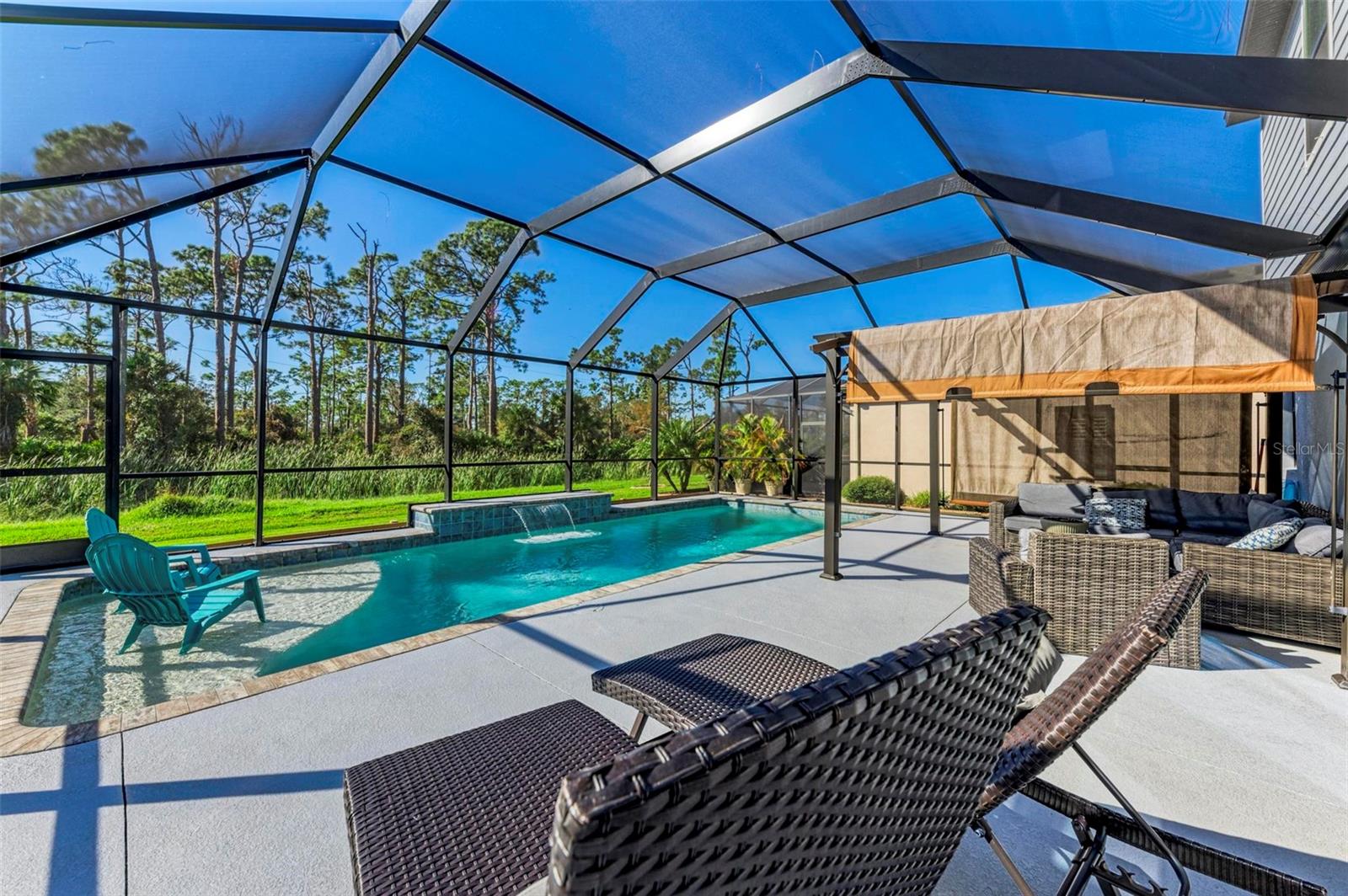 Welcome to your dream home in the gated community of Villa Milano! This 4 bedroom, 2 and a half bath, with pool, has no homes built behind it. The expansive lanai, pool and backyard have a woods view, making it your own, private oasis. Step into the living room, with your custom built ship lap wall with storage and a fireplace. Kitchen boasts a spacious island, granite countertops, and stainless steel appliances, with a brand new dishwasher. Relax in your master suite with its tray ceiling and on-suite bath featuring dual sinks and separate walk-in shower. There are 3 additional bedrooms, all with ample closet space. And additional full bathroom. Dedicated laundry room in house. Downstairs, you will find a large den, that can be used as an office, entertainment room for family movie night, game room, or an additional bedroom. Come make your place in Villa Milano!