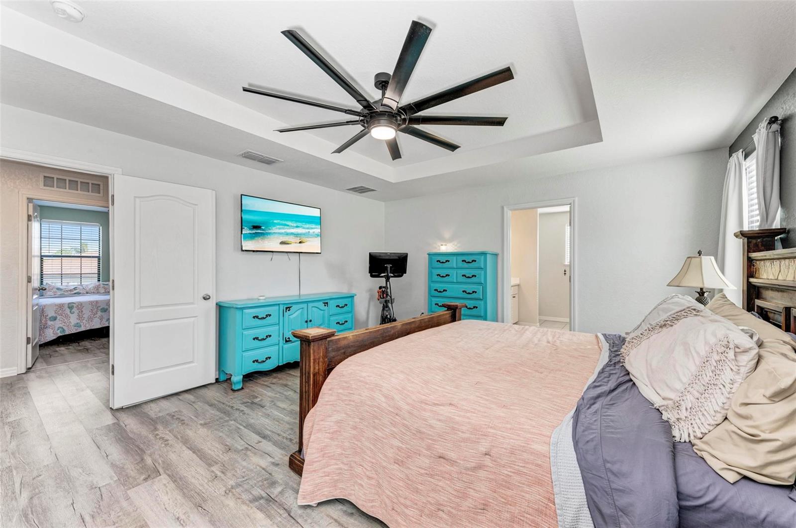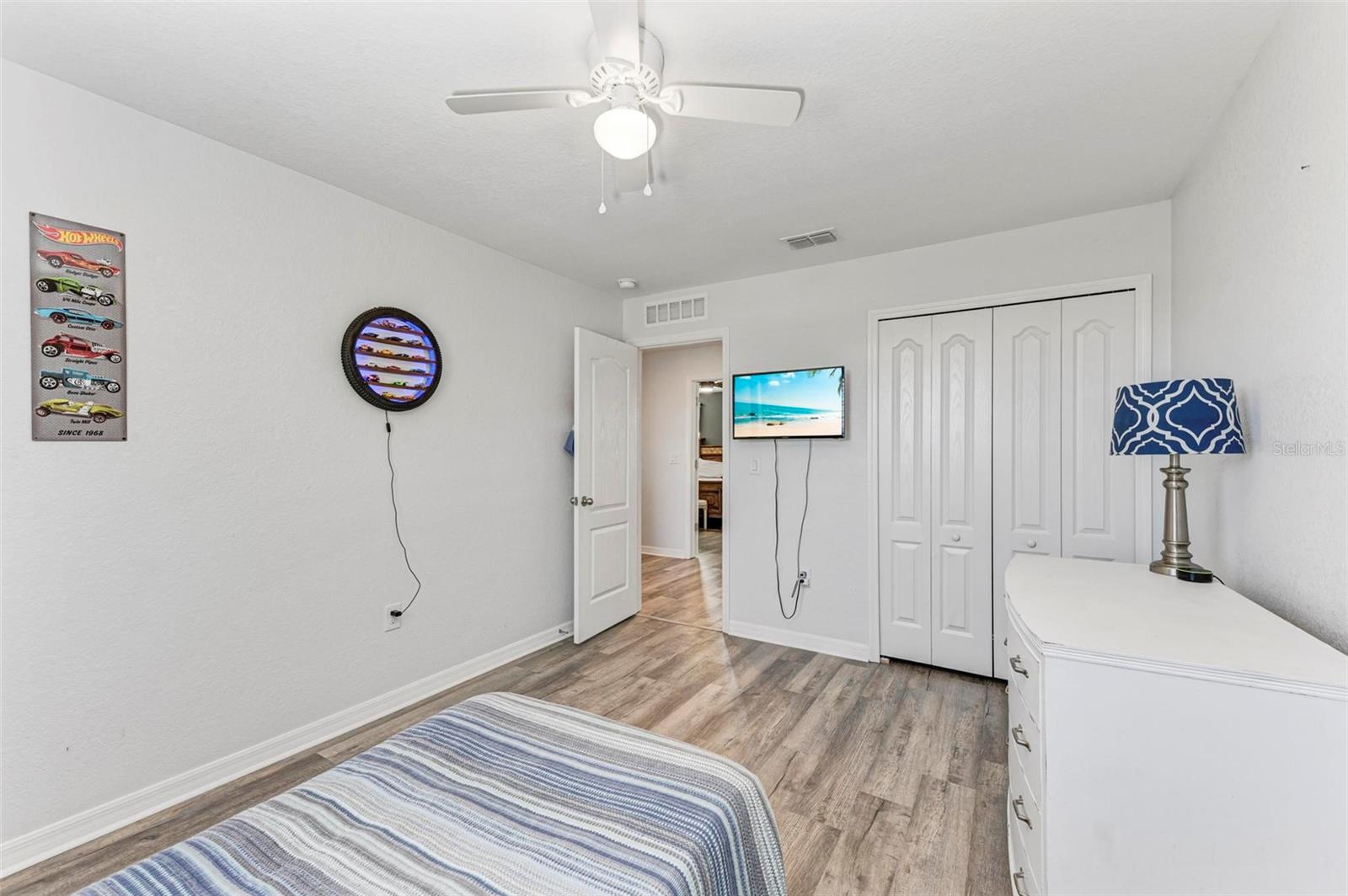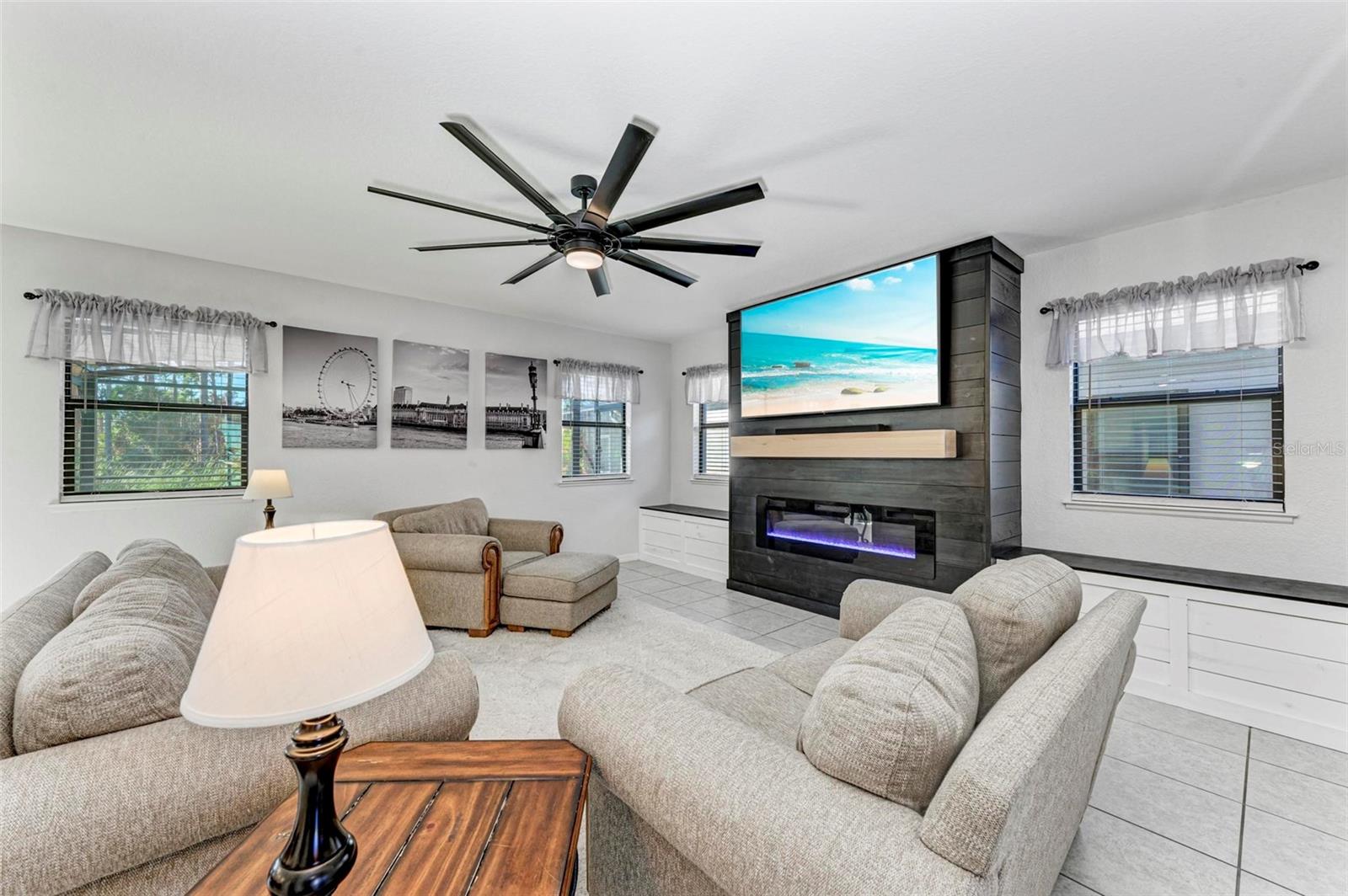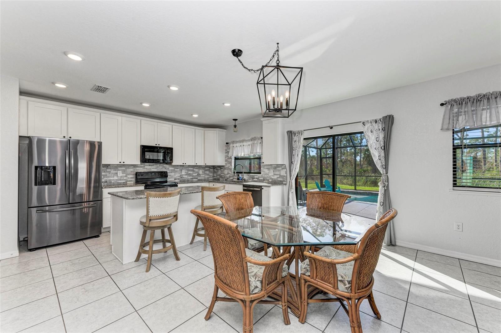 Welcome to your dream home in the gated community of Villa Milano! This 4 bedroom, 2 and a half bath, with pool, has no homes built behind it. The expansive lanai, pool and backyard have a woods view, making it your own, private oasis. Step into the living room, with your custom built ship lap wall with storage and a fireplace. Kitchen boasts a spacious island, granite countertops, and stainless steel appliances, with a brand new dishwasher. Relax in your master suite with its tray ceiling and on-suite bath featuring dual sinks and separate walk-in shower. There are 3 additional bedrooms, all with ample closet space. And additional full bathroom. Dedicated laundry room in house. Downstairs, you will find a large den, that can be used as an office, entertainment room for family movie night, game room, or an additional bedroom. Come make your place in Villa Milano!