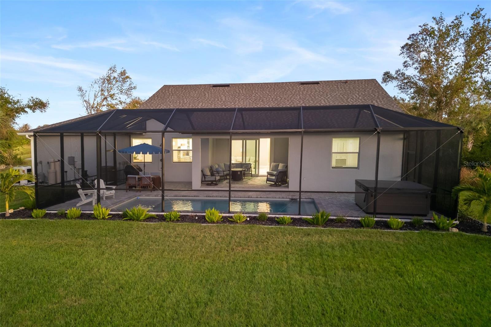 Truly the best Custom-built POOL home you will find in the area, you'll immediately notice the many upgrades and premium finishes thoughtfully curated by the owner. Discover MODERN living in this brand- NEW house, an embodiment of comfort and style. This captivating residence features three well-appointed bedrooms, including a luxurious primary bedroom, providing a perfect retreat for relaxation with access to an expansive backyard patio—a private sanctuary for gardening or quiet reflection. Relaxation and Peace is what you find on either the front screened in outdoor porch or back with Western Exposure. Complementing the cozy sleeping quarters is the primary pristine bathroom, designed dual sink vanity, private water closet, with contemporary finishes and fixtures, you will never want to leave. The heart of the home is its inviting living area, built in fireplace, thoughtfully laid out to host gatherings or enjoy quiet evenings. The kitchen, with its sleek design, promises to inspire culinary creativity, offering ample space for both cooking and dining. The chef’s kitchen is a showstopper, equipped with a large island, double wall oven, in cabinet microwave, soft close drawers, pot filler, farm sink, stunning countertops, and top-of-the-line appliances, perfect for culinary creativity. Luxurious fixtures and custom tile designs elevate every space, showcasing exceptional attention to detail. The adjacent dining area is perfect for gatherings during the Holidays. Home office allows the flexibility to never return to the office with two French doors out to your private patio. The generously sized bedrooms of this home provide ample privacy for your entire family and guests. The gorgeous sparkling Salt water, heated pool with brick paver patio has plenty of room for entertaining. Salt water Hot Tub is included! Hurricane Impact windows and Doors throughout. Extended driveway allows for you to park RV, Boat or trailers! Wall beside garage has 50 Amp RV Plug and water outlet. Strategically situated, the house finds itself nestled among key community features. Located close to 5 beaches, the vibrant cities of North Port and Port Charlotte with outstanding entertainment, restaurants and shopping and within 1 and 1/2 hours of several airports, you can have it all! For those who cherish outdoor activities for a multitude of recreational pursuits in Florida's West Coast. Conveniently located near a variety of restaurants, the Tampa Rays and Atlanta Braves Spring Training facilities, boating, and world-class fishing. This home not only promises a serene and comfortable living environment but also provides easy access to daily necessities and leisure, making it a keen choice for those looking to balance tranquility with convenience. Welcome to a place where each day can be a blend of refreshment and adventure, all situated in a vibrant Charlotte community. Get ready to craft your new beginning in a space designed to elevate your lifestyle. LENDER CREDITS AVAILABLE! HOME WARRANTY PROVIDED AT CLOSING!