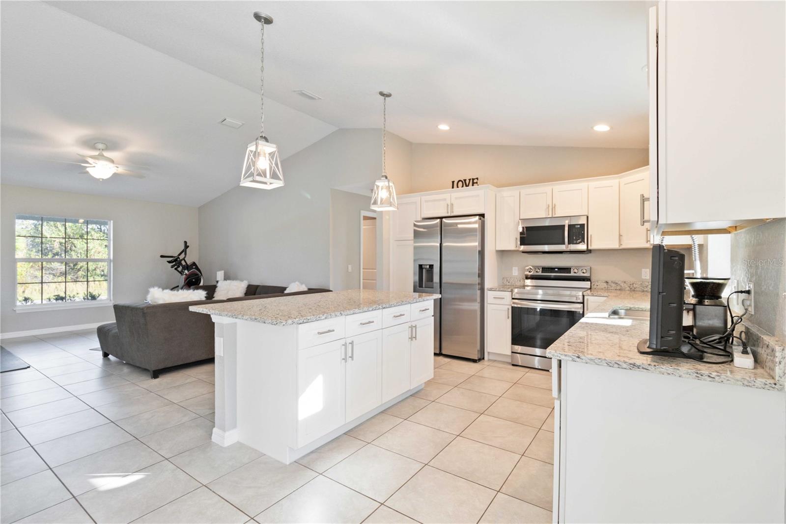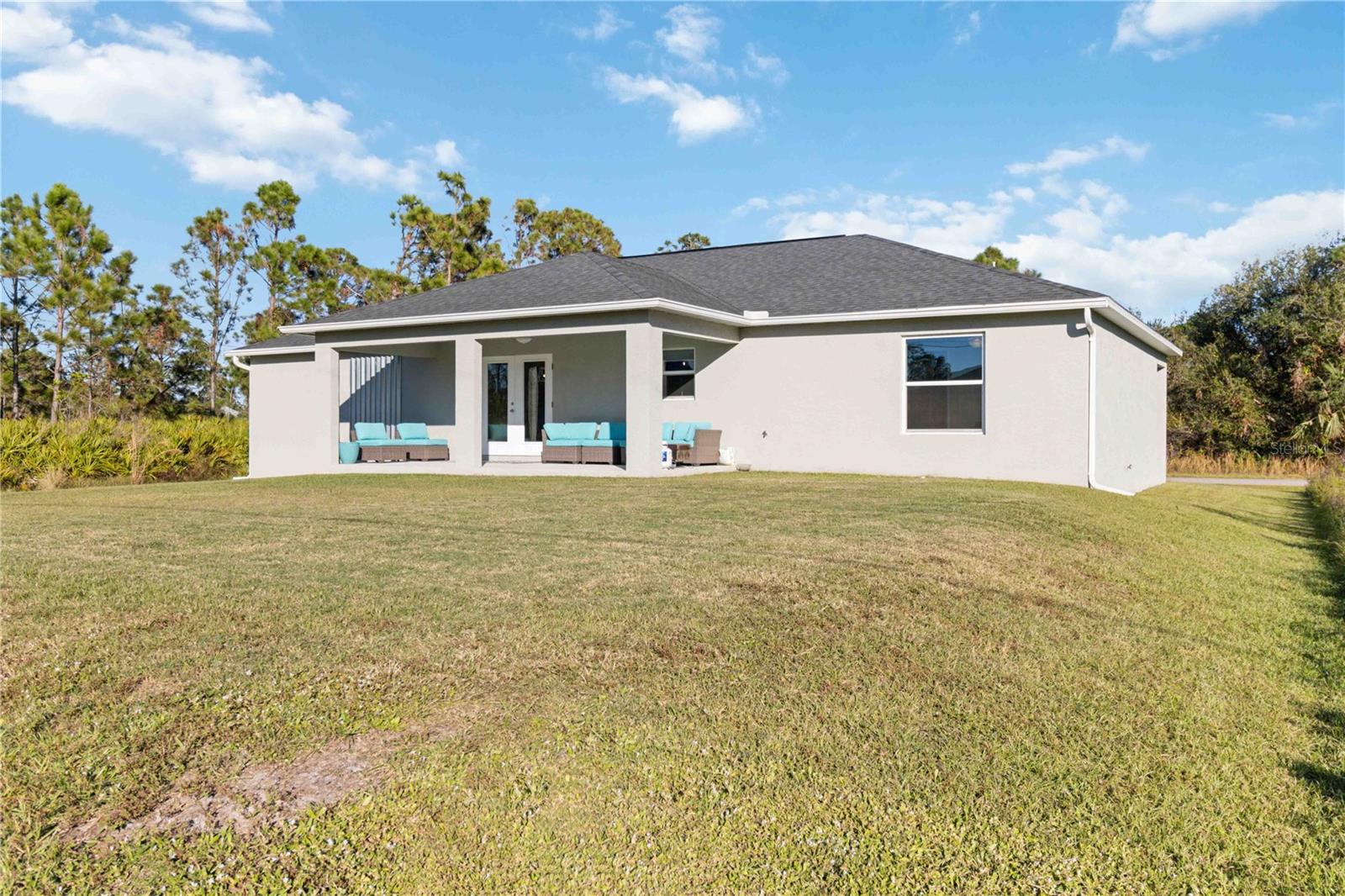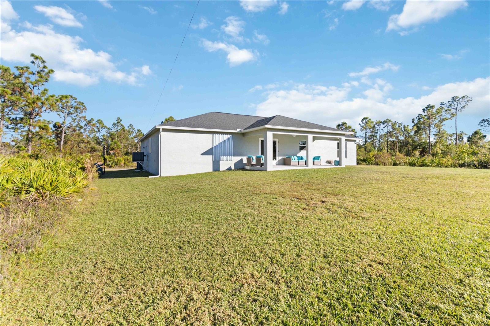 This stunning 3 bedroom, 2 bathroom single family home, built in 2021, offers 1,700 square feet of modern elegance in the desirable Gulf Cove neighborhood of Port Charlotte, Florida. The open-concept design features a sleek, modern kitchen complete with stainless steel appliances, beautiful cabinetry, and ample counter space, perfect for entertaining or everyday living. Step outside to a covered outdoor area overlooking a beautifully landscaped backyard, ideal for enjoying Florida’s year-round sunshine. The home includes hurricane shutters, underground wiring for added storm safety, and a raised foundation to minimize flooding risks. Nestled in a quiet community near gorgeous beaches and the highly rated Lemon Bay High School, this home offers style, comfort, and convenience. Schedule your showing today!