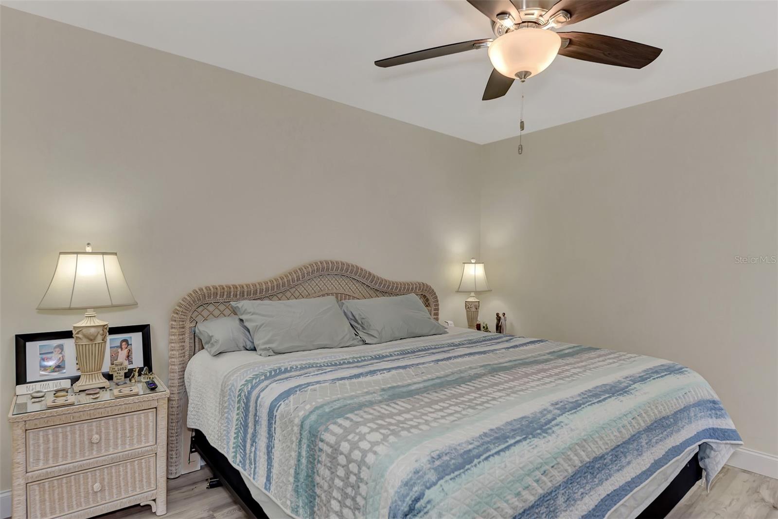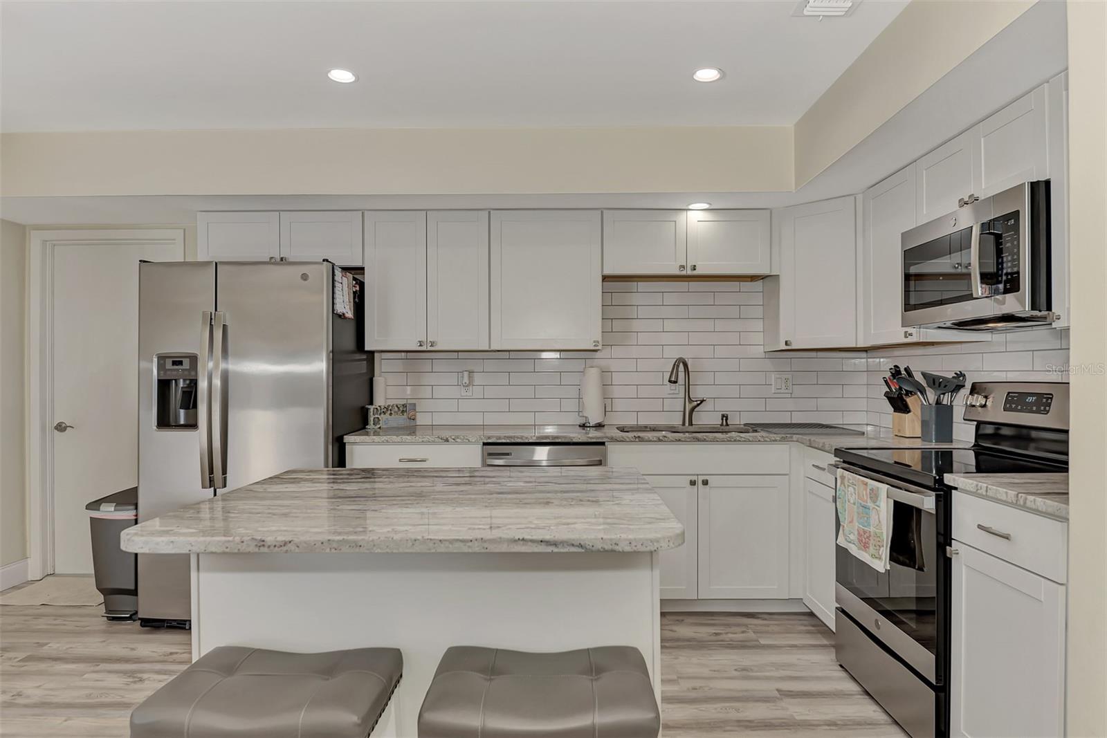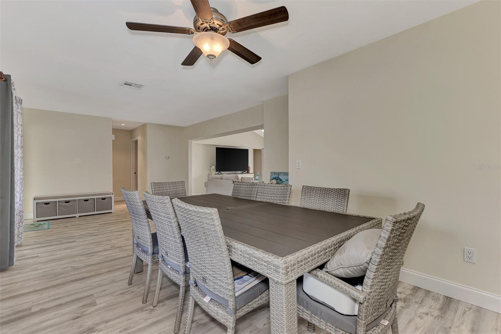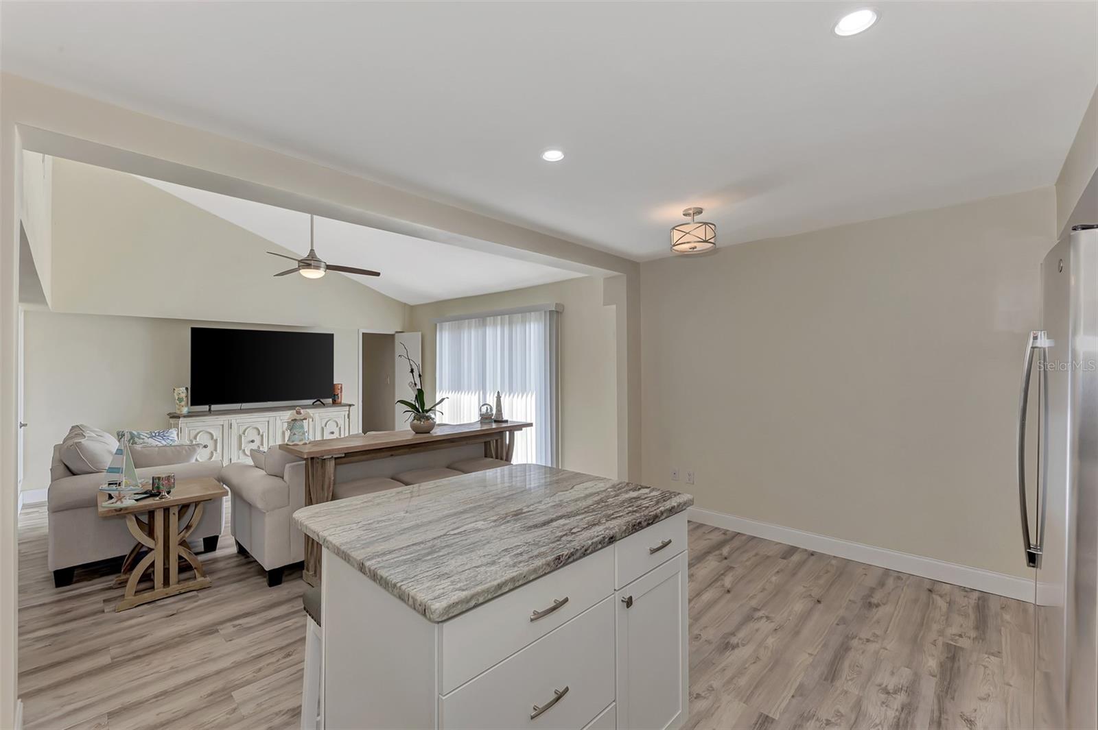 LOCATION. LOCATION. LOCATION. Discover the perfect move-in-ready home in a fantastic amenity rich community of GARDENS OF GULF COVE near several Gulf beaches! NO FLOOD ZONE! Property stayed high and dry through the last few storms and has never flooded. The community boasts 4 lakes, underground utilities, sidewalks, street lights, county water and sewer, and a full-time manager. For an affordable yearly fee of $420.00, residents enjoy access to TWO COMMUNITY POOLS (one heated), tennis courts/PICKLEBALL, shuffleboard, bocce play, a basketball court, rec. center, exercise equipment, pool tables, and a friendly atmosphere. Convenient TO GULF BEACHES, fishing, shopping, dining, and entertainment just minutes away, this property in paradise awaits your visit. This 2-bedroom, 2-bathroom gem has received fresh paint inside and out, creating a welcoming atmosphere. BRAND NEW ROOF. NEW A/C. Recently installed luxury vinyl waterproof flooring enhances most rooms, while the eat-in kitchen boasts a brand-new stainless steel appliance package, including a dishwasher, side-by-side refrigerator with water and ice dispenser, microwave, self-cleaning smooth-top stove/oven, a new garbage disposal, new cabinets, granite countertops, and recessed lighting. The center island doubles as a breakfast bar, contributing to the kitchen's functionality. A dining room with cathedral ceiling, which can also serve as a family room, opens up to a 10x14 rear patio through sliding glass doors. The spacious 12x24 living room provides an open and inviting ambiance. Upgrades extend to the bathrooms, featuring new vanities, toilets, and tile flooring. The home includes a new garage door opener with 2 remotes, and the hot water heater has been replaced. Most rooms are adorned with new ceiling fans, and hurricane shutters add an extra layer of security. The front of the home features a large 9x38 porch surrounded by newly added palm trees. Situated in the sought-after Gardens of Gulf Cove in Port Charlotte, Florida, near the Englewood border, this residence offers desirable amenities. Schedule your appointment today!