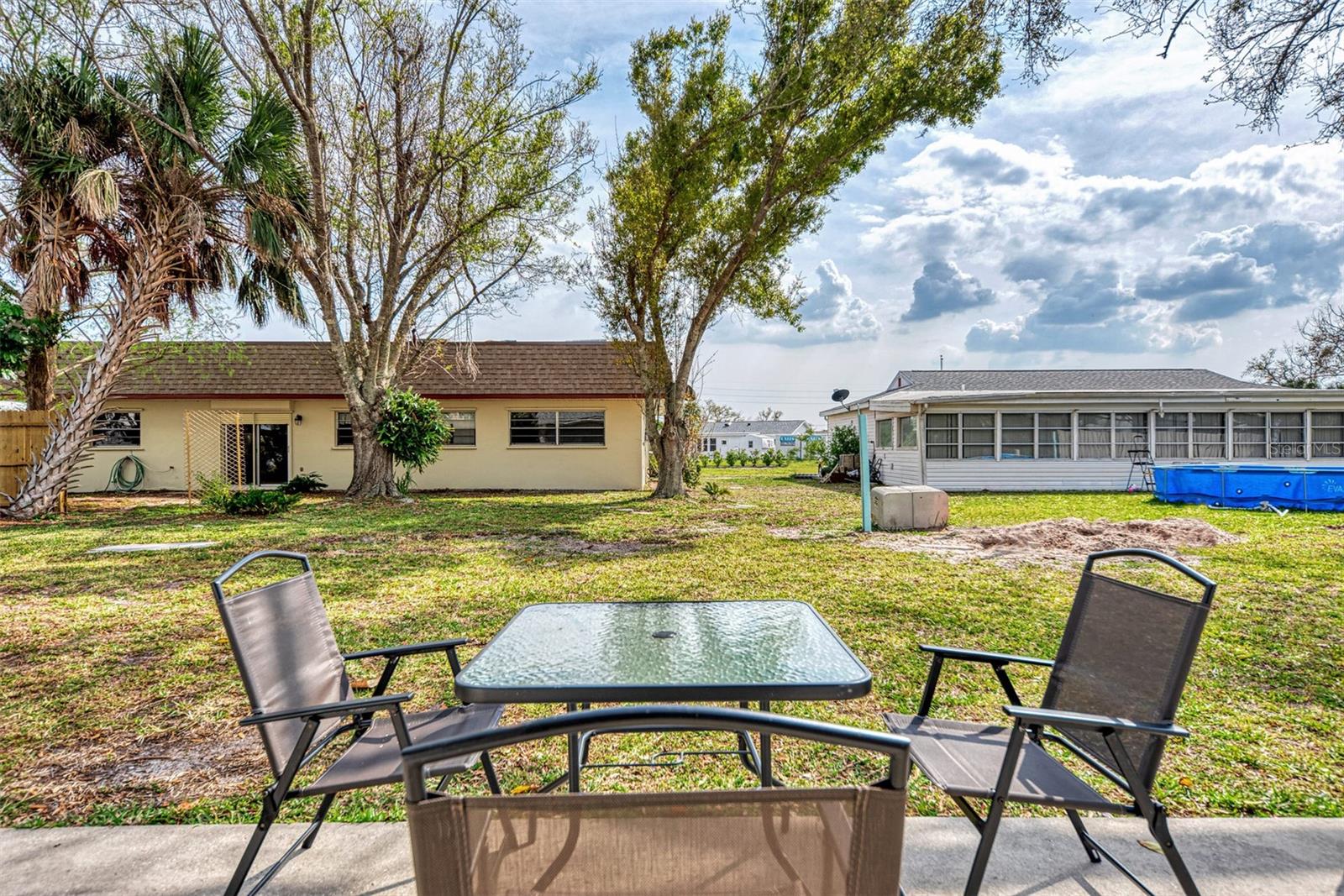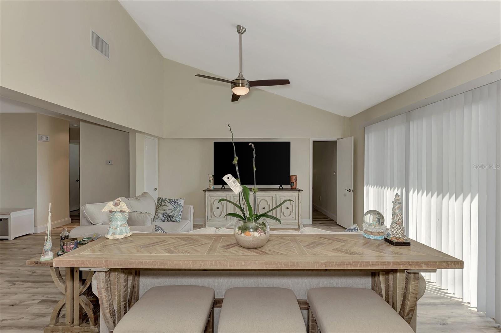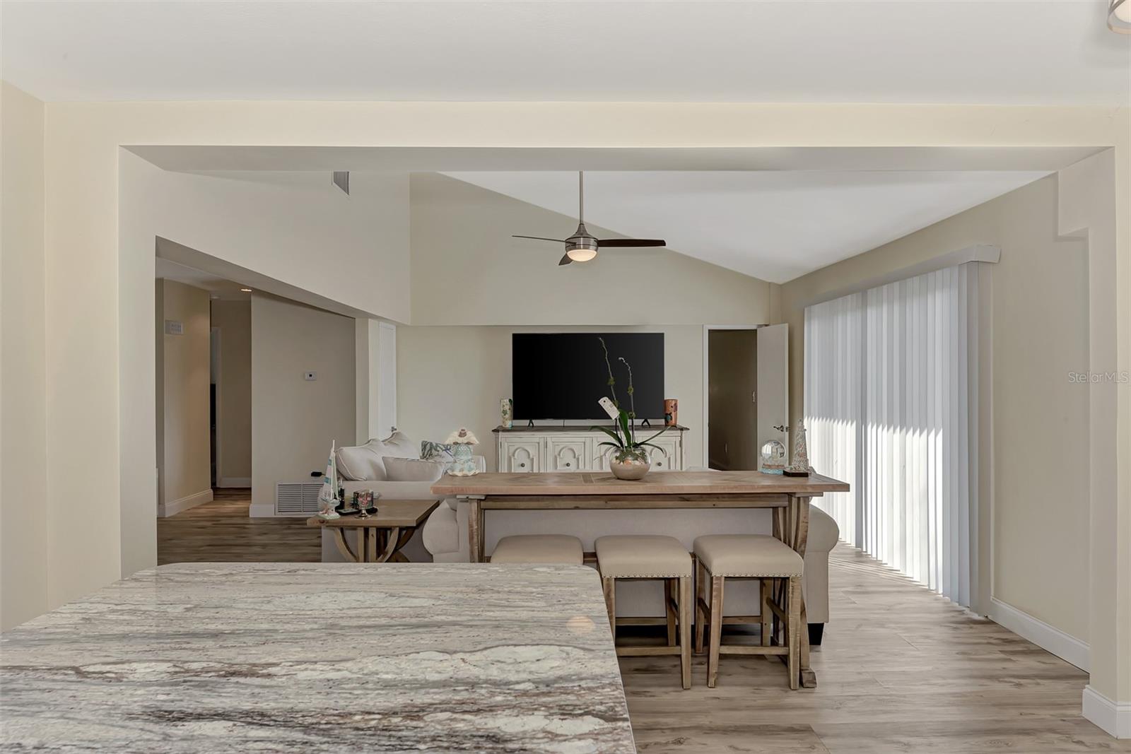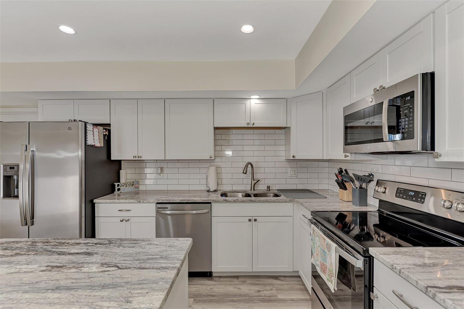 LOCATION. LOCATION. LOCATION. Discover the perfect move-in-ready home in a fantastic amenity rich community of GARDENS OF GULF COVE near several Gulf beaches! NO FLOOD ZONE! Property stayed high and dry through the last few storms and has never flooded. The community boasts 4 lakes, underground utilities, sidewalks, street lights, county water and sewer, and a full-time manager. For an affordable yearly fee of $420.00, residents enjoy access to TWO COMMUNITY POOLS (one heated), tennis courts/PICKLEBALL, shuffleboard, bocce play, a basketball court, rec. center, exercise equipment, pool tables, and a friendly atmosphere. Convenient TO GULF BEACHES, fishing, shopping, dining, and entertainment just minutes away, this property in paradise awaits your visit. This 2-bedroom, 2-bathroom gem has received fresh paint inside and out, creating a welcoming atmosphere. BRAND NEW ROOF. NEW A/C. Recently installed luxury vinyl waterproof flooring enhances most rooms, while the eat-in kitchen boasts a brand-new stainless steel appliance package, including a dishwasher, side-by-side refrigerator with water and ice dispenser, microwave, self-cleaning smooth-top stove/oven, a new garbage disposal, new cabinets, granite countertops, and recessed lighting. The center island doubles as a breakfast bar, contributing to the kitchen's functionality. A dining room with cathedral ceiling, which can also serve as a family room, opens up to a 10x14 rear patio through sliding glass doors. The spacious 12x24 living room provides an open and inviting ambiance. Upgrades extend to the bathrooms, featuring new vanities, toilets, and tile flooring. The home includes a new garage door opener with 2 remotes, and the hot water heater has been replaced. Most rooms are adorned with new ceiling fans, and hurricane shutters add an extra layer of security. The front of the home features a large 9x38 porch surrounded by newly added palm trees. Situated in the sought-after Gardens of Gulf Cove in Port Charlotte, Florida, near the Englewood border, this residence offers desirable amenities. Schedule your appointment today!