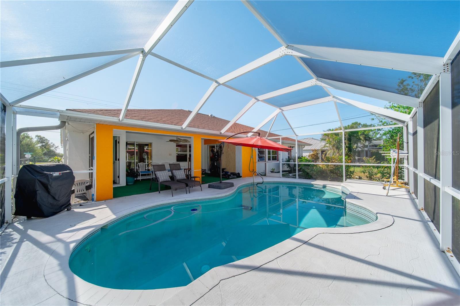 Discover the perfect blend of comfort and elegance in this stunning three bedroom, two and a half bath, pool home with 2,081 sq. ft. of living space. This single story residence boasts an inviting Florida style design with modern upgrades and a private oasis for outdoor enjoyment. The home features an expansive open-concept living area, a spacious kitchen with ample counter space, updated appliances and a cozy dining nook. The master suite offers ample space with a walk in closet and en suite bathroom. Step outside to your personal paradise a screened in lanai with a heated pool, perfect for relaxing or entertaining. The property is set on a 10,000 sq. ft. lot with mature landscaping and a two-car garage, all located in the heart of Port Charlotte close to schools, shopping, and dining. Give us a call today to set up a time to see this home! Make this exceptional property your forever home today!