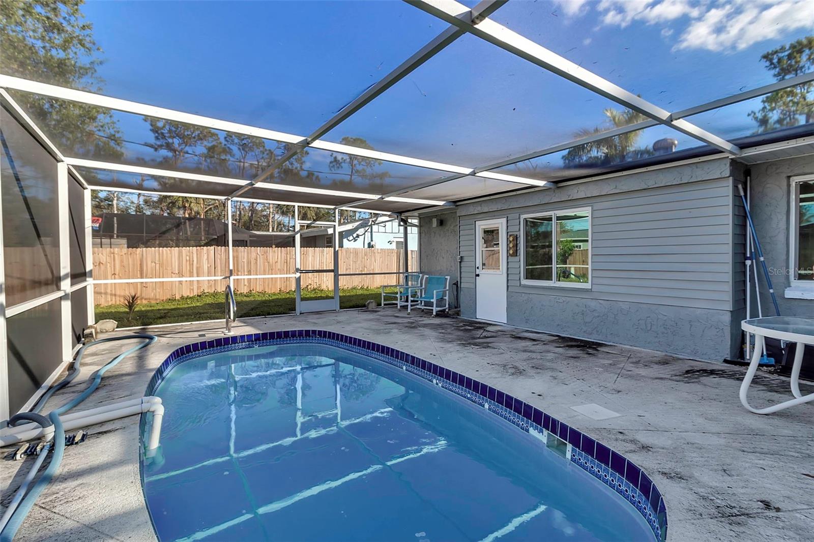 20378 Emerald Avenue in Port Charlotte, FL—a modern gem offering comfort and style with space to make it your own. This inviting home features 3 bedrooms, 2.5 bathrooms, and 1,486 square feet of well-designed living space screened-in POOL HOME. UNDER 300k!! Step into a welcoming foyer that leads to a bright living area, perfect for relaxing or entertaining. The galley kitchen boasts stainless steel appliances, a pantry, and ample counter space for culinary adventures. You will find the two generous rooms offering you privacy through the kitchen. Across the hall, you will find your half-bath laundry room combination which allows for plenty of room for storage or a pantry. The third bedroom/den faces the carport with sliding glass doors. For your peace of mind, there are IMPACT WINDOWS throughout the home. Outside, your private oasis awaits with a sparkling pool and plenty of room on the 10,000 square foot lot for outdoor enjoyment. Experience modern living in this charming Port Charlotte home! Port Charlotte is one of the fastest-growing areas in Florida. The home is situated 15 minutes from shopping and dining at the Port Charlotte Town Center