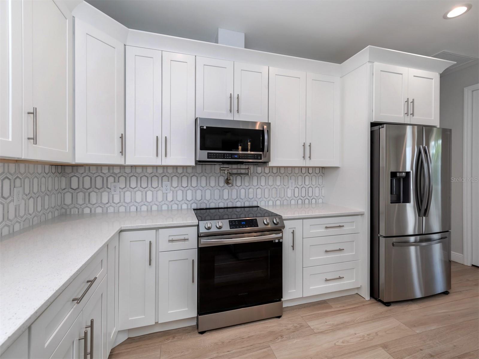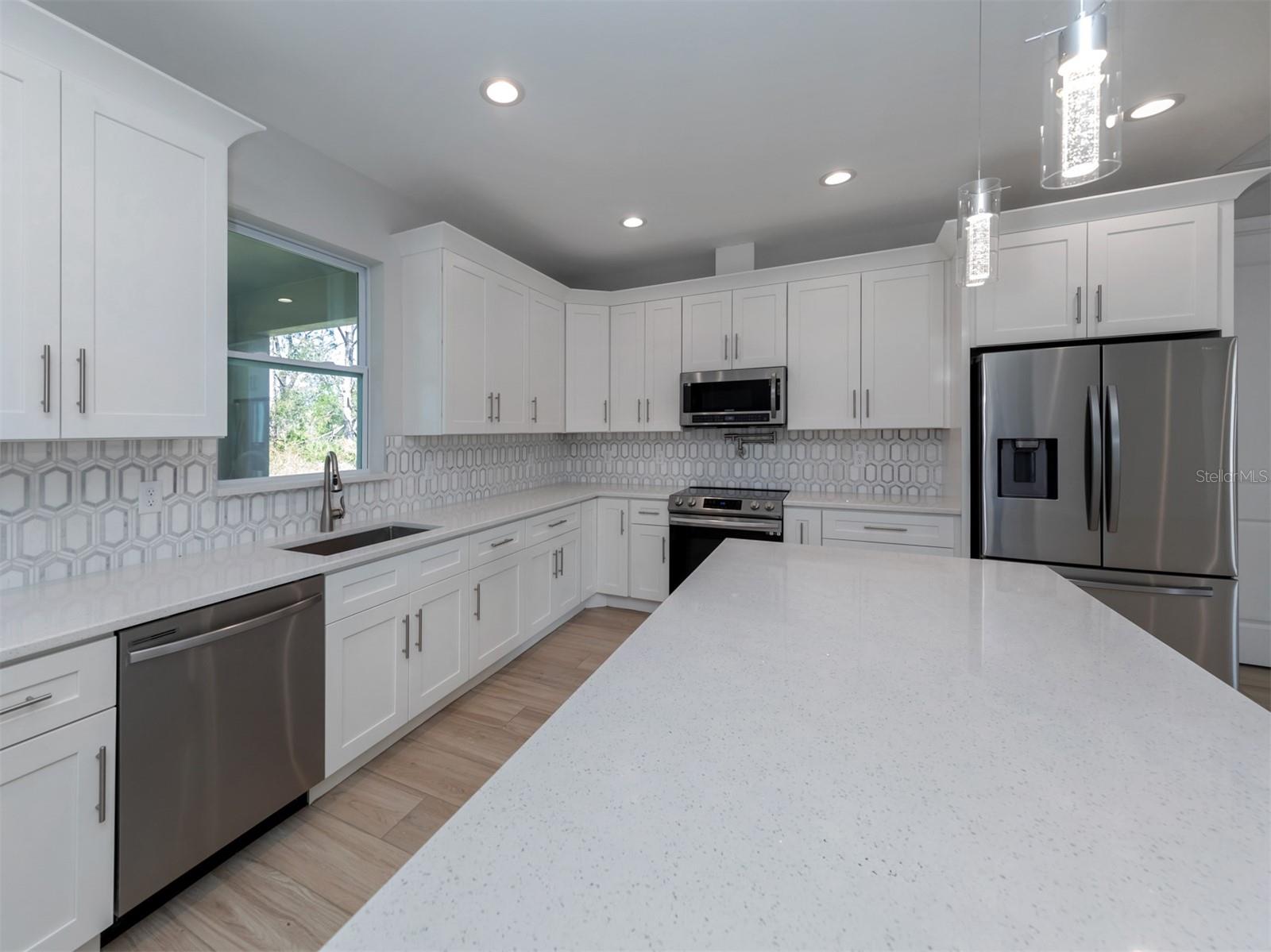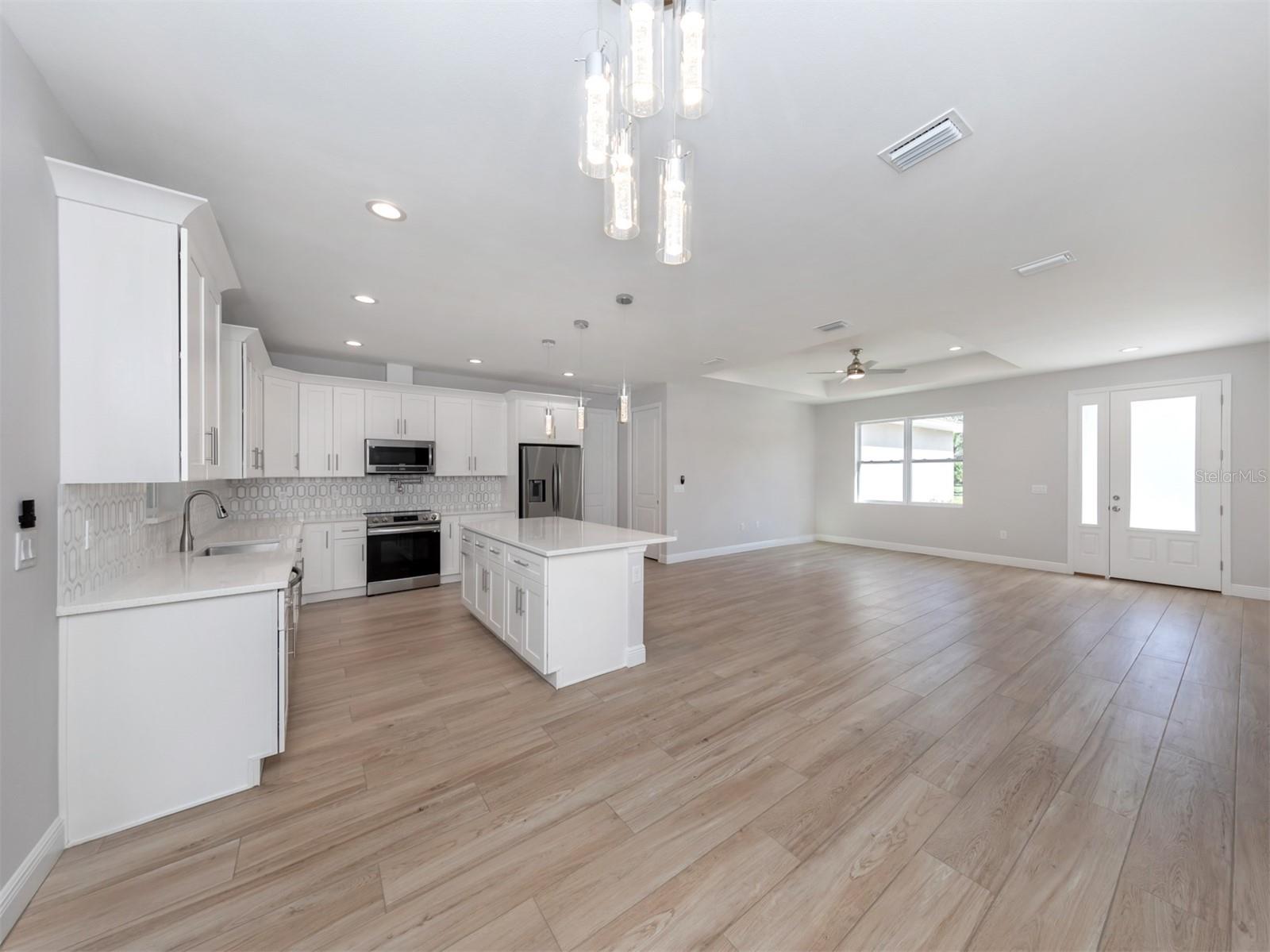 NOT IN A FLOODZONE. Welcome home to this lovely, brand new 3 bed 2 bath home located in the best part of Port Charlotte. No expense was spared by the builder including impact windows, premium insulation, designer finishes, quartz counters and modern stainless steel appliances. Boasting over 1700 square feet, there is space for the whole family to enjoy the open concept floor plan. The kitchen opens up to a generous size family room with double sliders which lead you to a secluded lanai away from any road noise. This home is also connected to city water for less maintenance and quality.