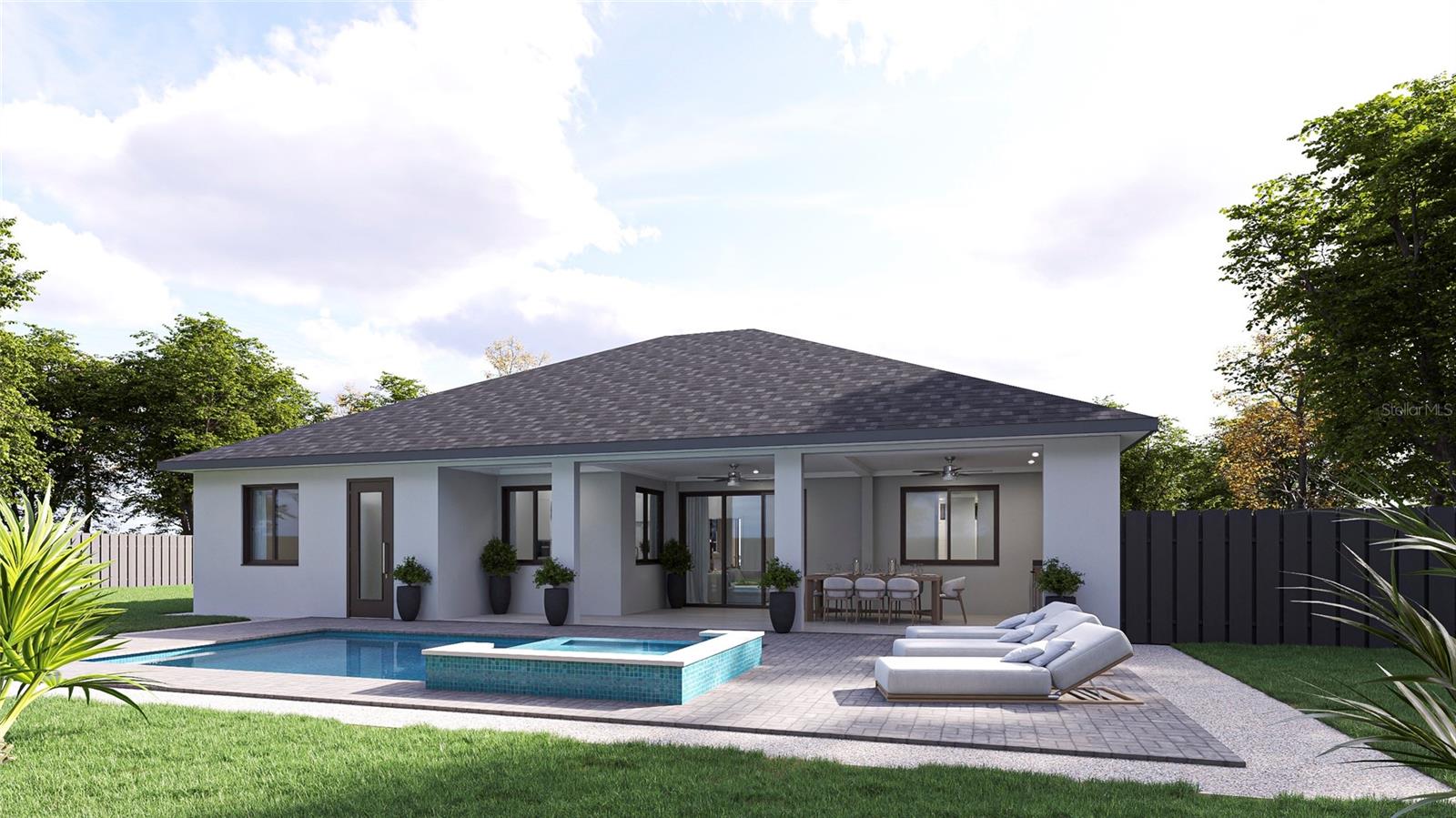 One or more photo(s) has been virtually staged. Pre-Construction. To be built. Pre-construction opportunity in Port Charlotte, Florida! This stunning 3-bedroom, 3-bathroom home with a private pool and 2-car garage is set for completion by late 2025. Located on a beautifully paved street, this 1,735 sq. ft. home combines modern luxury with thoughtful design. The open floor plan features a gourmet kitchen with solid surface countertops, premium appliances, and an outdoor kitchen perfect for entertaining. The spacious primary suite boasts a walk-in closet, dual sinks, and a luxurious shower. Additional features include coffered ceilings, an office space, and tile flooring throughout. The backyard is an entertainer's dream, featuring a private in-ground pool and spa surrounded by a spacious deck. Relax and enjoy outdoor living with a built-in outdoor kitchen, equipped with a grill and ample counter space for meal prep and serving. Ceiling fans provide a refreshing breeze as you dine or unwind in this inviting space. Whether you're hosting a summer barbecue or enjoying a quiet evening by the pool, this home is designed to take full advantage of Florida's sunny lifestyle. Now is your prime opportunity to choose your own finishes—from tile, paint, appliances, cabinets, and more—to make it your unique dream home! Changes can only be made depending on the stage of construction. Situated on a 0.23-acre lot with no HOA, this home offers both comfort and convenience near schools, shopping, dining, and Florida's Gulf Coast beaches. Contact us today to learn more about this exceptional opportunity!