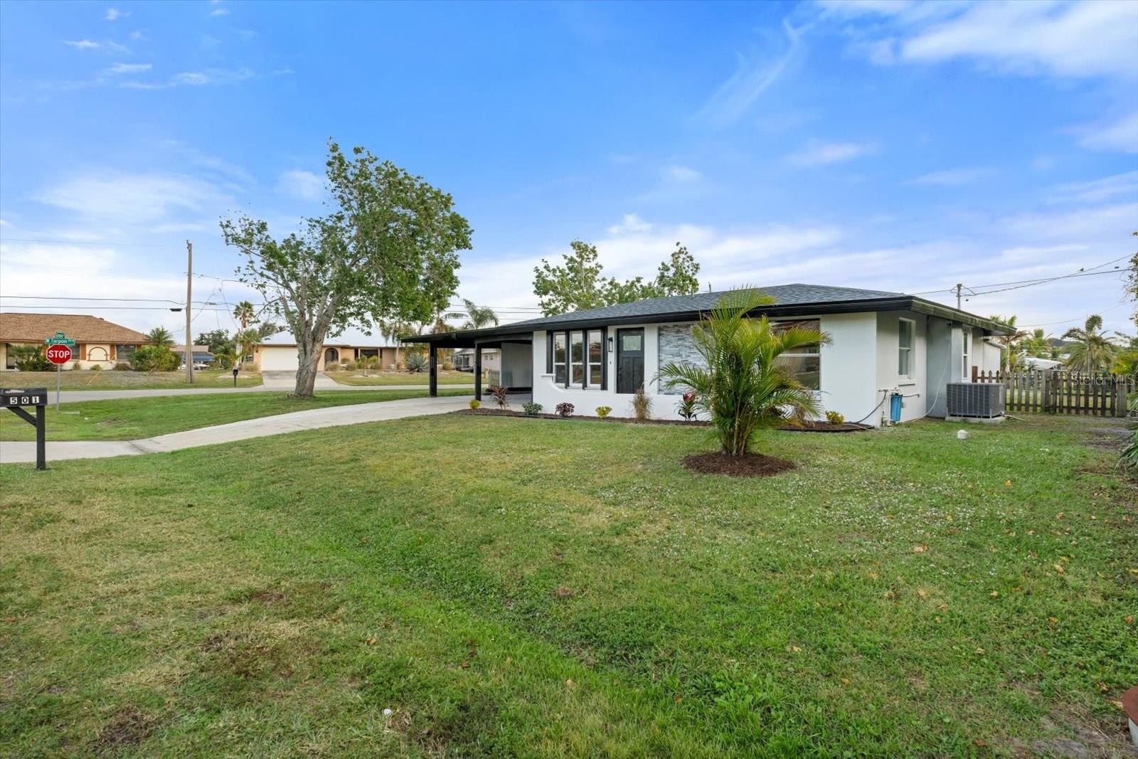 This very nicely updated home in a highly desirable coastal area located at 501 Grove Ave NW, Port Charlotte, FL Offers 3 bedrooms and 2 bathrooms with a total finished area of 1,118 sq.ft. The home was very nicely updated featuring; New kitchen cabinets and quartz countertops, Updated bathrooms, Luxury Vinyl Plank throughout the home. The roof is under a Year old and has a newer ac system also. The property sits on a spacious fenced in corner lot size of 10,149 sq.ft., providing plenty of room for outdoor activities and potential expansion. With its convenient location and well-maintained interior, this home is perfect for those seeking a cozy and inviting living space in a desirable neighborhood.
