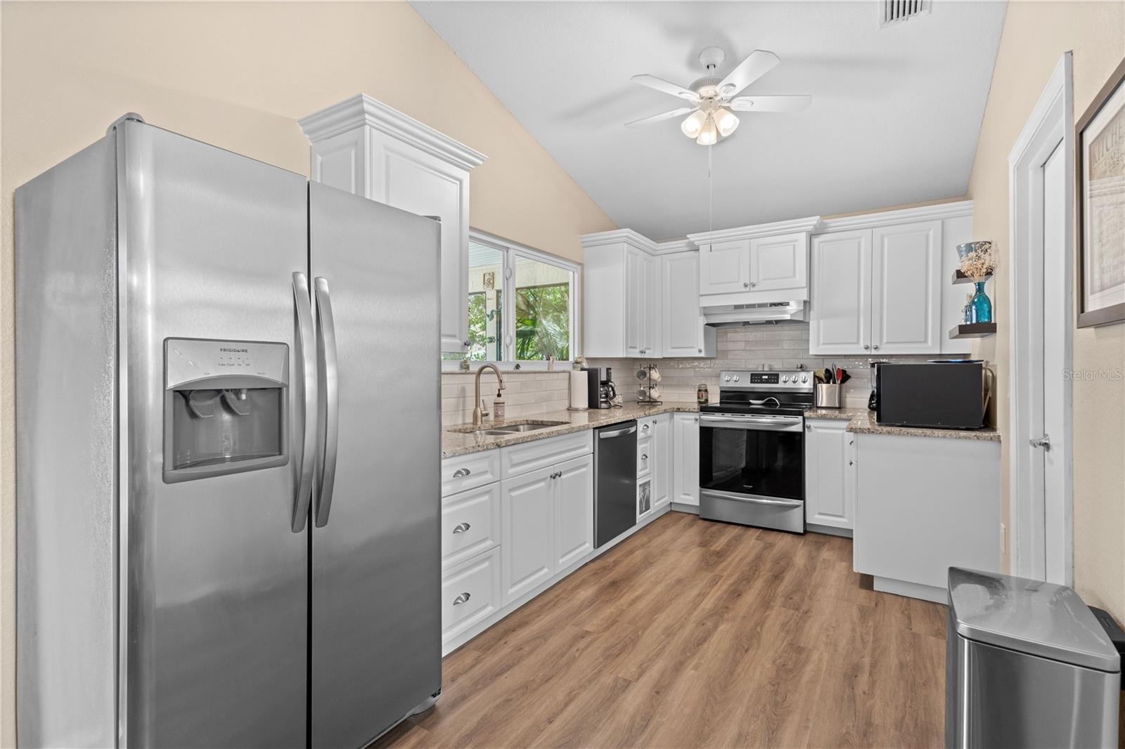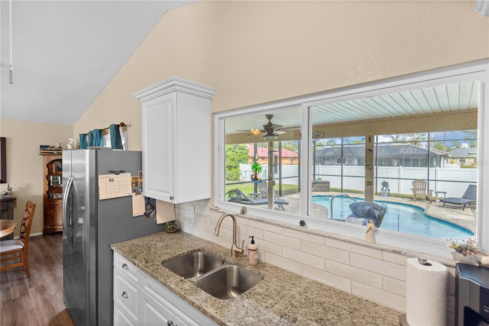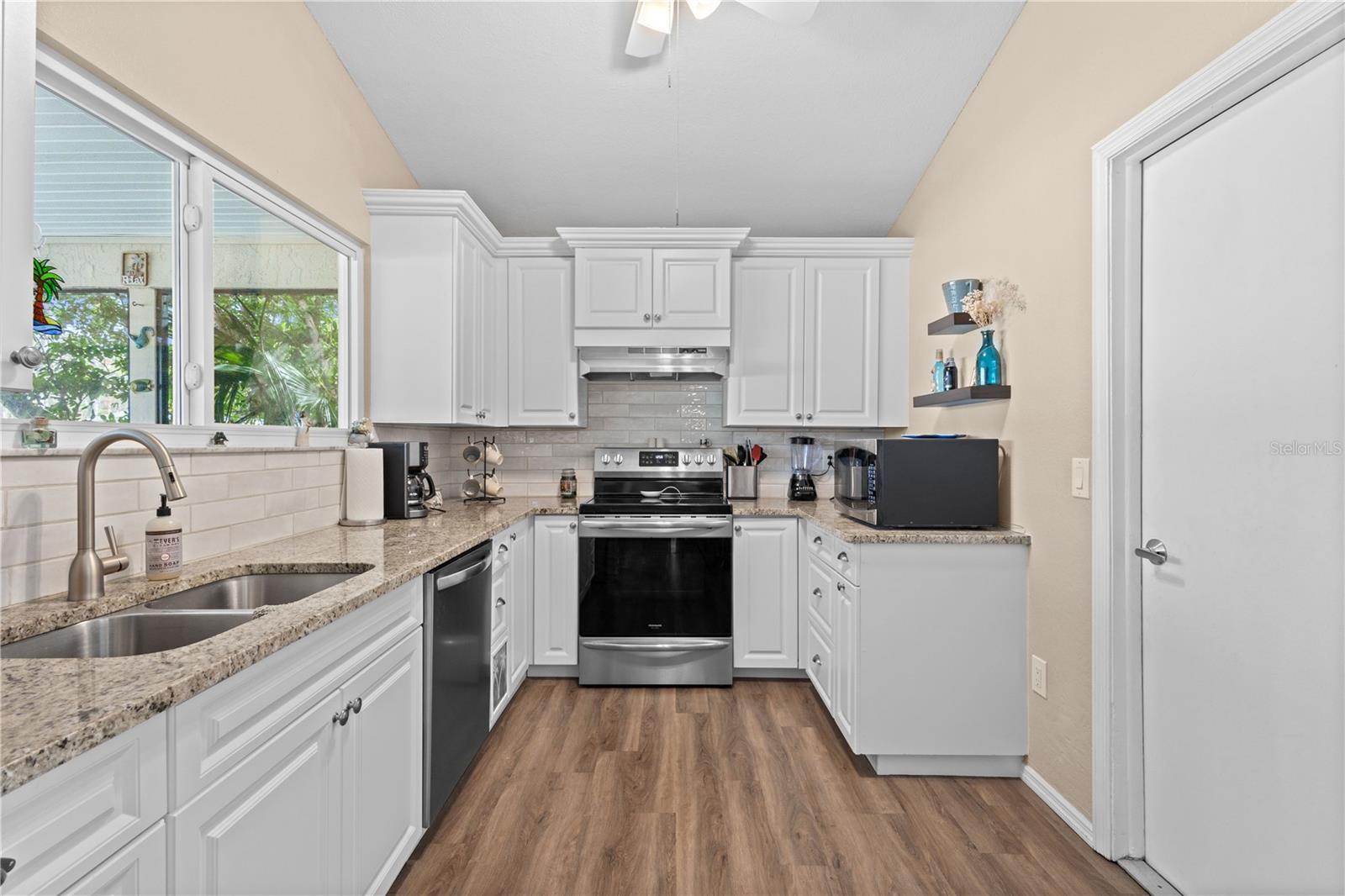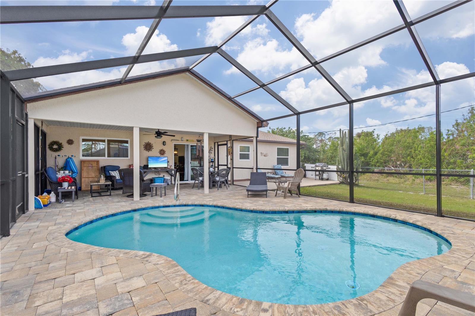 Nestled in the desirable waterfront community of Gulf Cove, this move-in-ready 3-bedroom, 2-bathroom home offers the perfect blend of comfort and convenience. Enjoy the Florida lifestyle with a newer Pebble Tech pool (2021), complete with a solar heater and surrounded by a lanai fitted with no-see-um screens for ultimate outdoor relaxation. The recently remodeled kitchen boasts granite countertops, stainless steel appliances, and soft-close cabinets, making it a chef's dream. Additional upgrades include a new roof (2021), new A/C (2022), hurricane impact windows, and a generator inlet for added peace of mind. Gulf Cove residents can opt to join the HOA, which grants access to a private park and playground, as well as the option to purchase a decal for the community's private boat ramp. Whether you're boating, relaxing by the pool, or entertaining in your upgraded kitchen, this home has it all!
