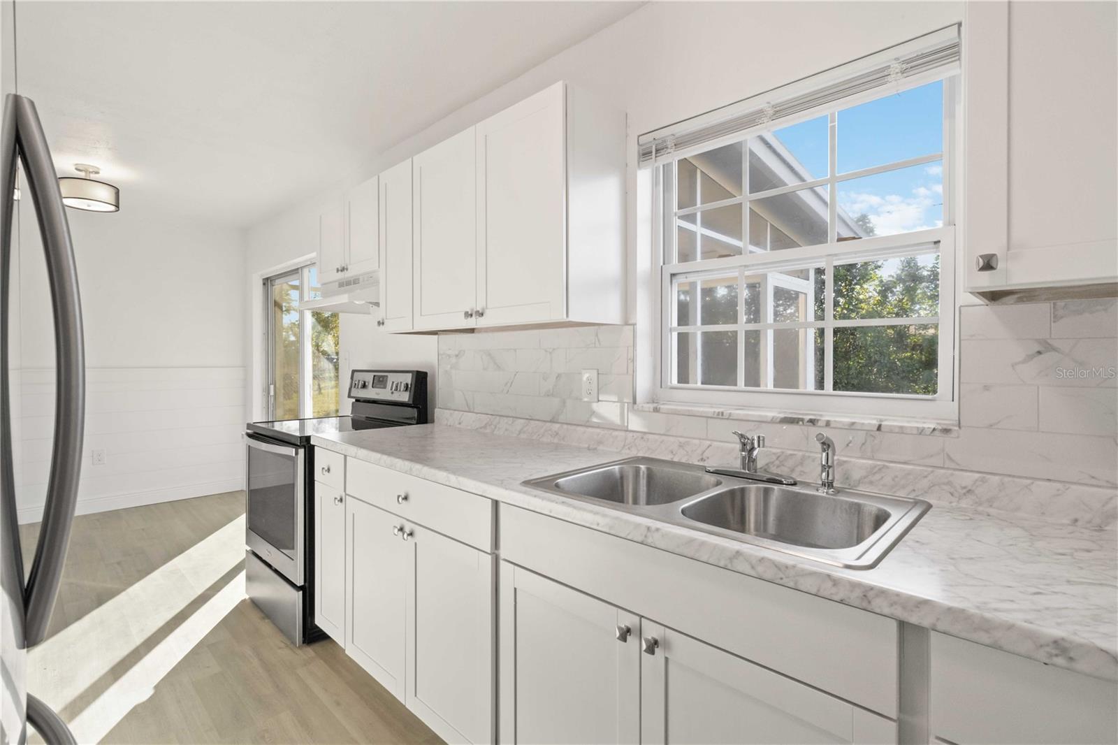 One or more photo(s) has been virtually staged. Price Improvement! Welcome home to this completely remodeled home! Updates include: New Roof/Soffit/Facia, A/C, Water Heater, Windows, Flooring throughout home, fresh paint, kitchen cabinets and countertop, bathroom all redone, light fixtures, and exterior of home painted. All of the major items checked off your list and no HOA or CDD in this quiet community. Step outside to a screened-in covered patio and fenced in backyard. There is also a shed out back to store all of your outdoor items. Pack your bags and move in worry free to start enjoying living in paradise today!