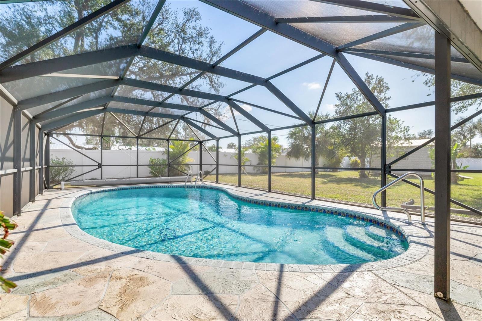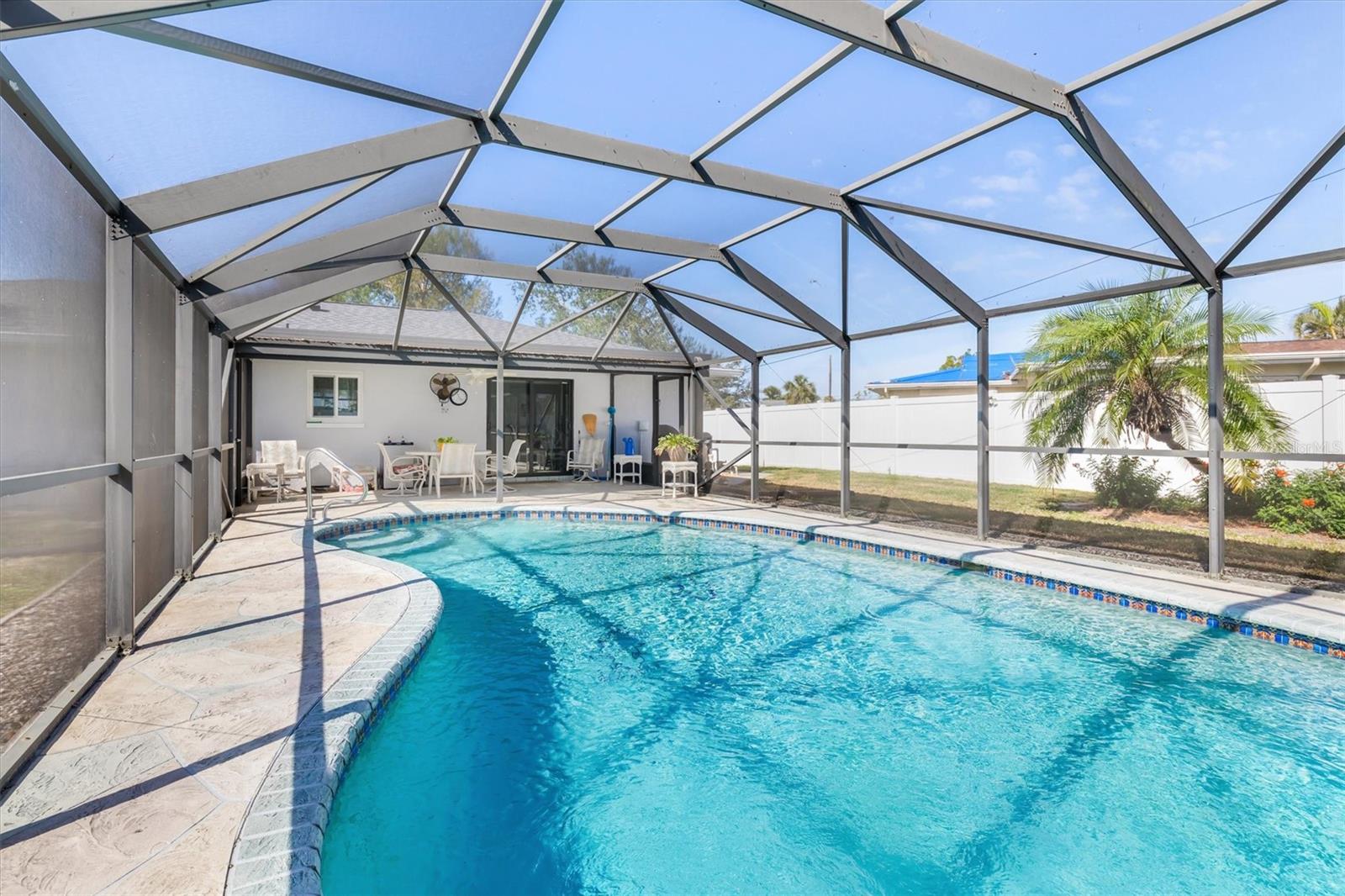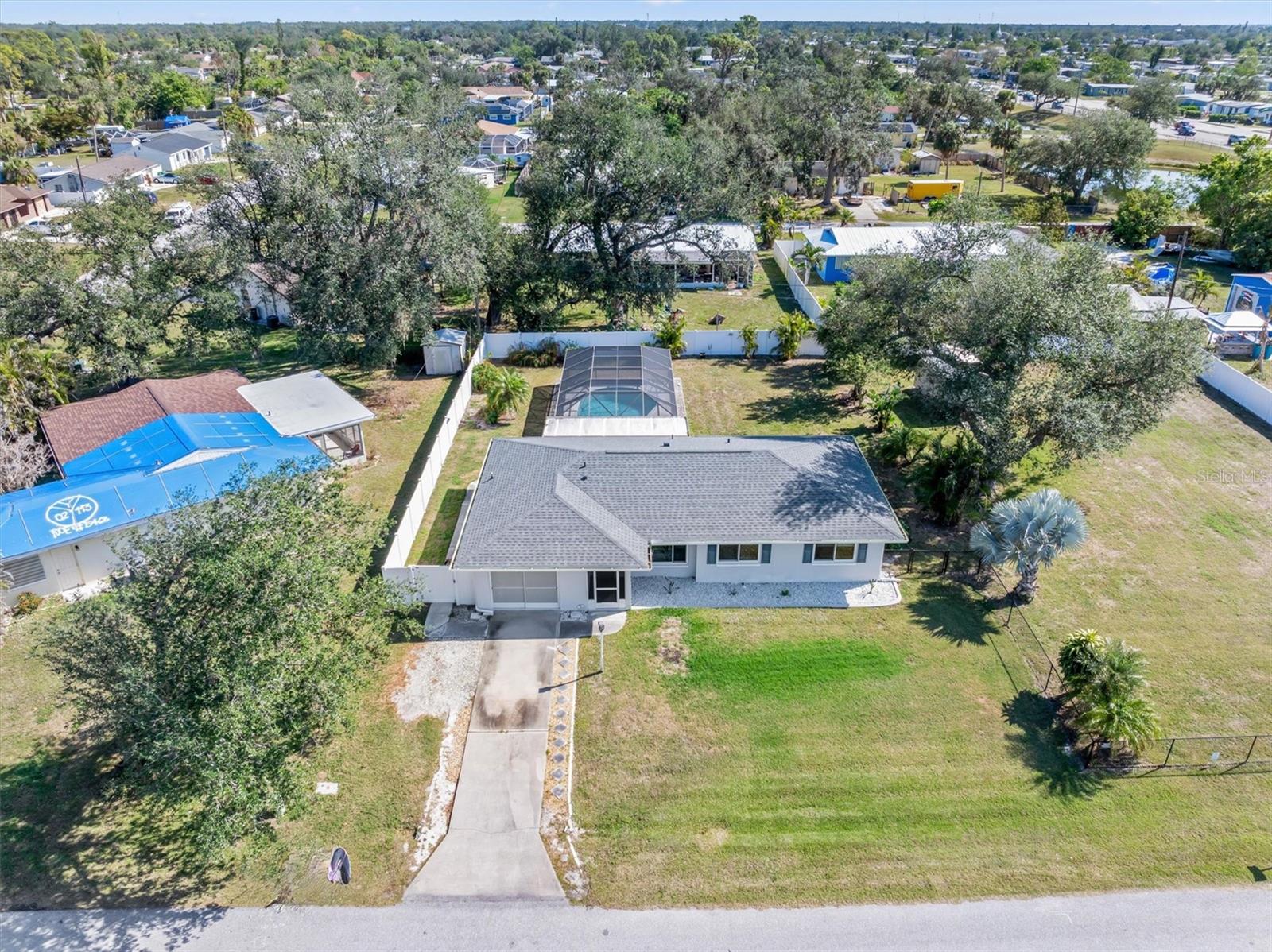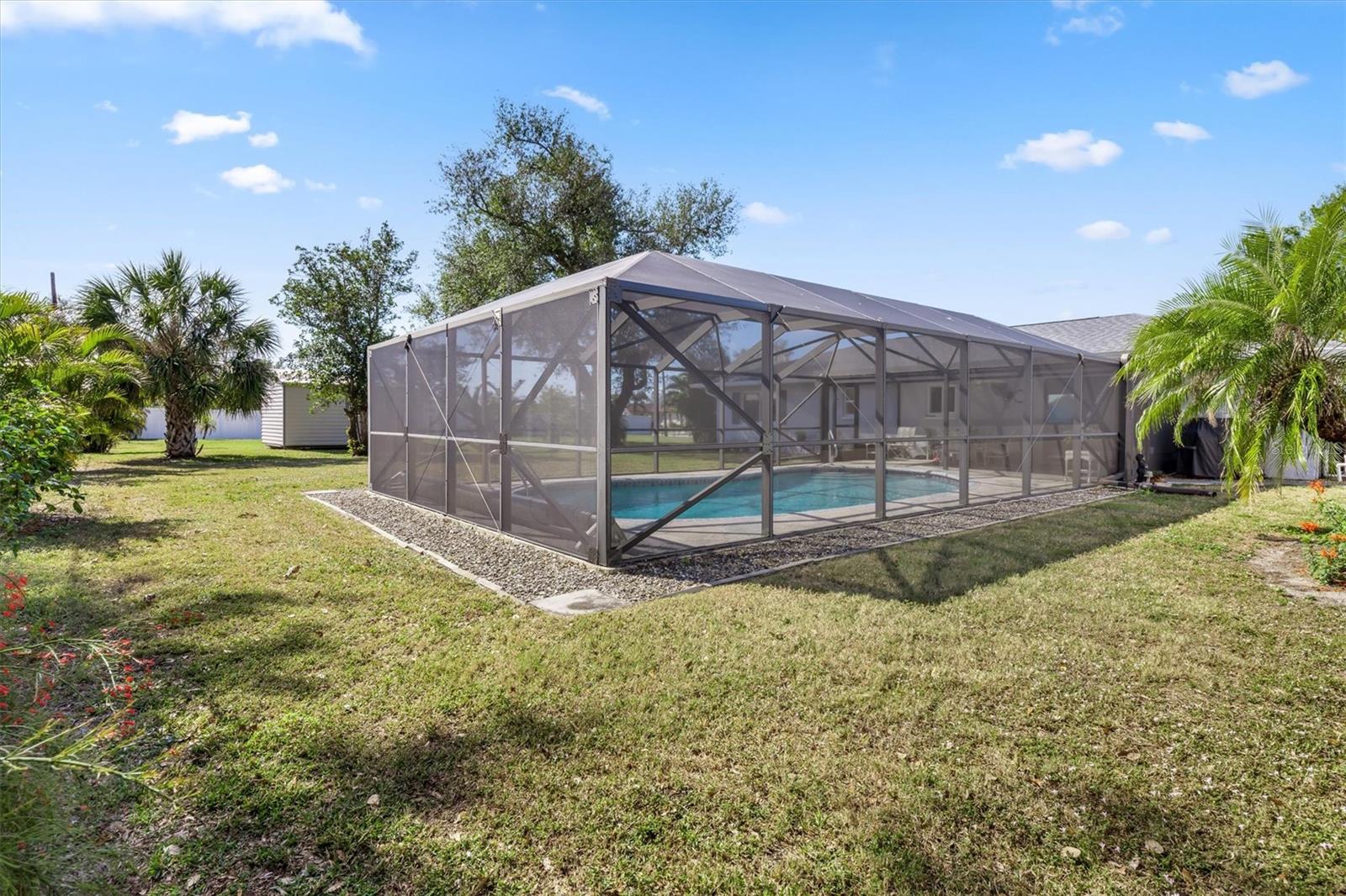 Meticulously Updated Pool Home on Double Lot in Port Charlotte – Move-In Ready! Welcome to your dream retreat in the serene and sought-after community of Port Charlotte! This stunning home, nestled on a rare DOUBLE lot spanning 0.46 acres, offers the perfect blend of privacy, functionality, and modern upgrades. From the moment you arrive, the newly updated landscaping and charming front porch set the stage for the exceptional features waiting inside. Step into a bright and spacious living room, where large windows fill the space with natural light, creating an inviting atmosphere perfect for relaxing or hosting guests. The heart of this home is the beautifully updated kitchen. Featuring granite countertops, soft-close cabinets, and stainless steel appliances (installed in 2019), it’s a chef’s delight. Adjacent to the kitchen, the dining area overlooks your private backyard oasis through sliding glass doors, providing a seamless indoor-outdoor flow. The luxurious master suite is your personal retreat, with a walk-in shower and updated fixtures (2019) in the ensuite bathroom. Two additional bedrooms provide comfortable accommodations with easy access to the updated guest bathroom. Outside, the hurricane-proof lanai houses a sparkling pool with a new pool heater (2018), perfect for year-round enjoyment. Recent upgrades to the lanai include new screens (2023), ensuring durability and comfort. The expansive, fenced backyard provides endless possibilities for entertaining, gardening, or future expansion. It also includes a 10 x 16 wired shed, ideal for a workshop or extra storage. Key upgrades include: Hurricane windows, doors, and garage door for year-round peace of mind. A brand-new roof and seamless gutters (2024) to enhance curb appeal and protect your investment. Situated in a prime location, this home offers easy access to shopping, dining, and nearby I-75, making commuting to surrounding cities and Gulf Coast beaches a breeze. The proximity to Punta Gorda and Fort Myers Airports adds convenience for frequent travelers. With its combination of updates, ample space, and unbeatable location, this home is perfect for families, entertainers, or anyone looking for a peaceful retreat in paradise. SELLERS MOTIVATED – don’t miss your chance to make this incredible property yours! Schedule your private tour today!