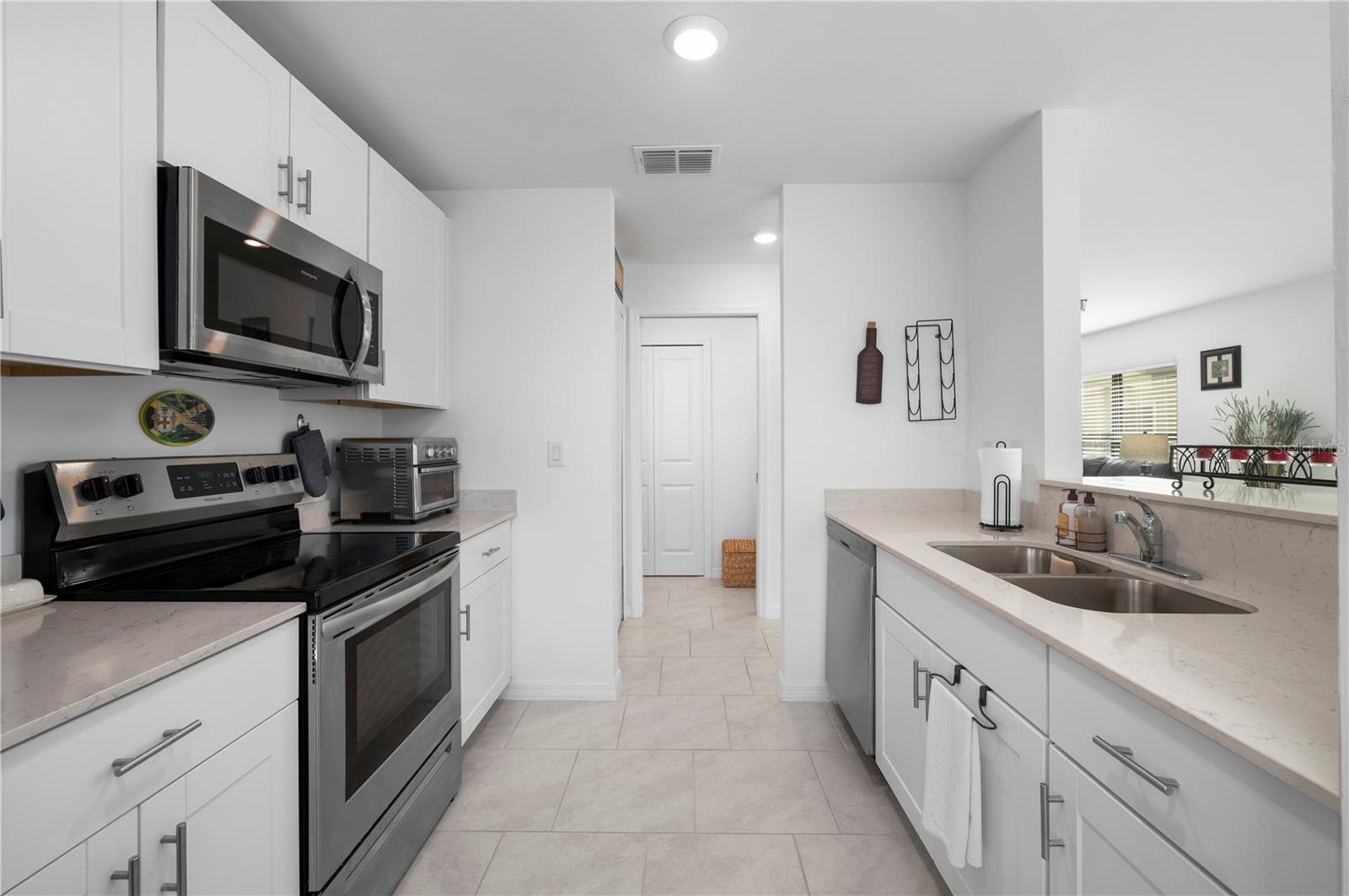 Nearly new (built in 2023) bright and airy townhome is an end unit that borders a large pond and green space. Enter the 1st floor to an open living and dining area that has room for either a small get together or larger gatherings. The galley kitchen is efficiently laid out with a pass thru window, ample cabinets & counter space, and stainless appliances for food and beverage prep. The 1st floor also features a 1/2 bath and laundry facility. All of the bedrooms are located on the 2nd floor. The primary bedroom has a walk in closet and attached full bath, both accessory bedrooms have large closets and share a full bath, all 3 bedrooms are carpeted. The Landings at West Port are conveniently located to many local attractions and amenities (aprox 30 min or less); Gulf beaches on Boca Grand & Manasota Key, Centennial Sports Park, Centennial Aquatics Center, Tampa Rays spring training facility, golf, kayaking, fishing and boating, dining, shopping, biking and walking trails.