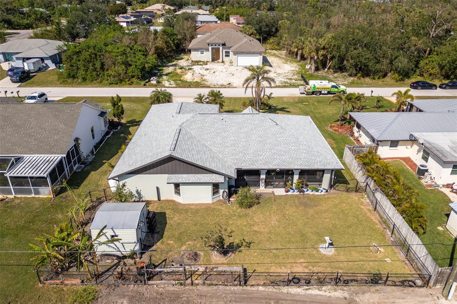 Spacious & Well-Equipped Home in a Prime Location! Step Into This Beautiful Home Featuring High Ceilings and an Open-Concept Design That Enhances Its Spacious Feel. The Large Primary Suite Includes Dual Sinks, a Walk-In Closet, and a Generously Sized Bathroom. Throughout the Home, You’ll Find Waterproof Vinyl Flooring for Both Style and Durability. Each Room Conveniently Opens to a Screened-In Lanai With Epoxy Flooring, Perfect for Enjoying Florida’s Outdoor Lifestyle. This Home Boasts Two Living Areas, a Living/Dining Room Combo, and a Kitchen With IG Appliances, Seamlessly Blending Comfort and Functionality. Additional Features Include a Laundry Room With a Sink, Whirlpool Appliances, and Spacious Guest Rooms. Designed for Convenience and Peace of Mind, the Home Includes a New Water Heater (2022), a Generator Wired to Power the Entire Home, and a Propane Tank on a Flat Base With an Automatic Generac System. It Also Sits at a Good Elevation and Features City Water, a Rain Bird Sprinkler System, Gutters, Plant Beds, and a Fenced Backyard With a Storage Shed. Enjoy the Beauty of Coconut, Banana, and Sugar Trees in the Yard, All Within a Desirable New Construction Area. Located in Flood Zone X With No HOA, This Home Is Just Minutes From Shopping and Restaurants Yet Nestled in a Quiet, Peaceful Neighborhood. Furniture Is Negotiable—Everything Is Negotiable! Don’t Miss Out on This Incredible Opportunity!
