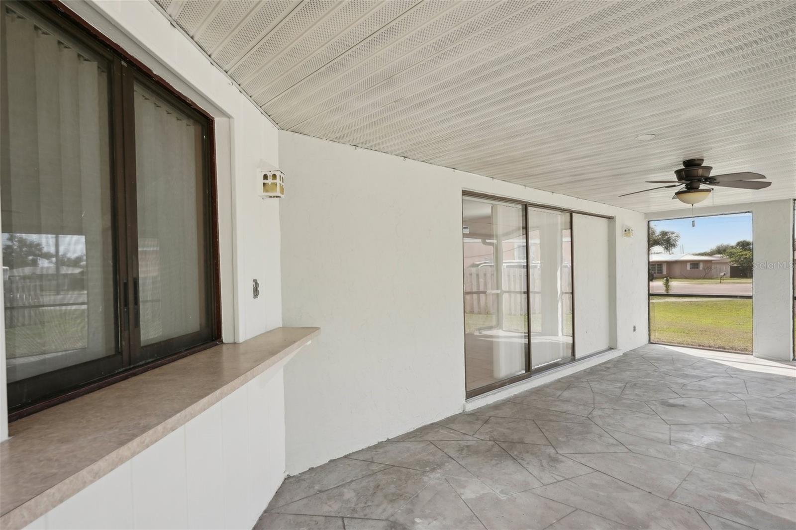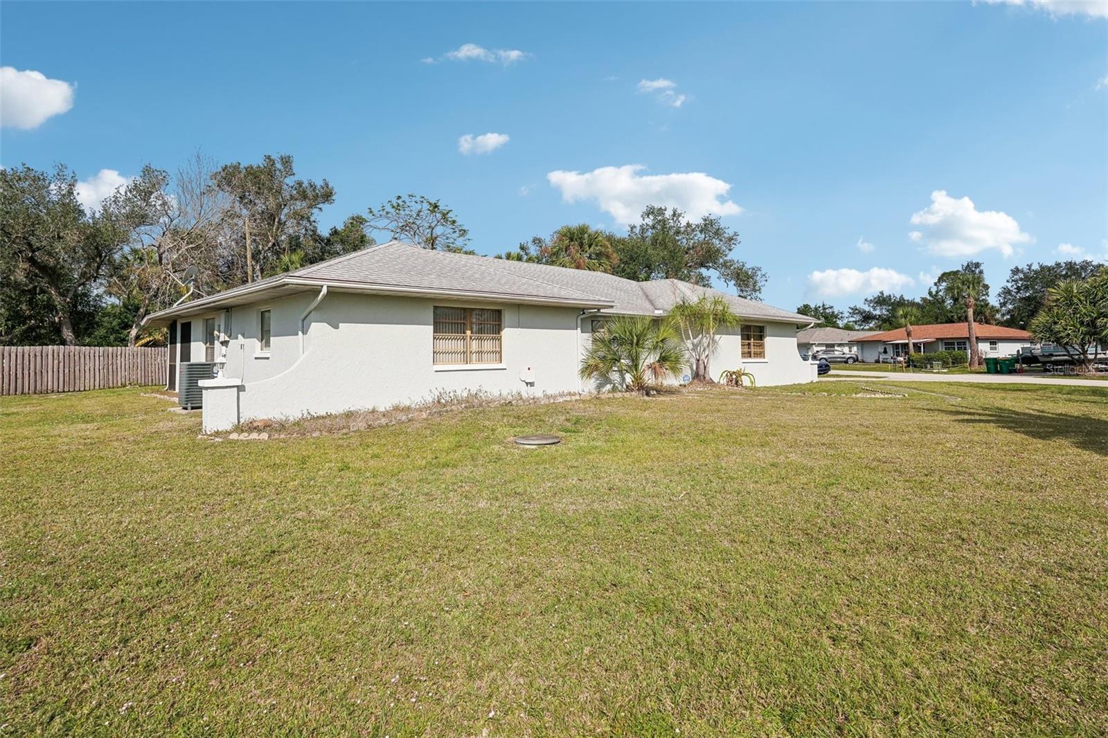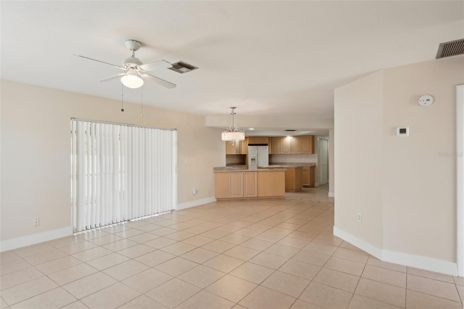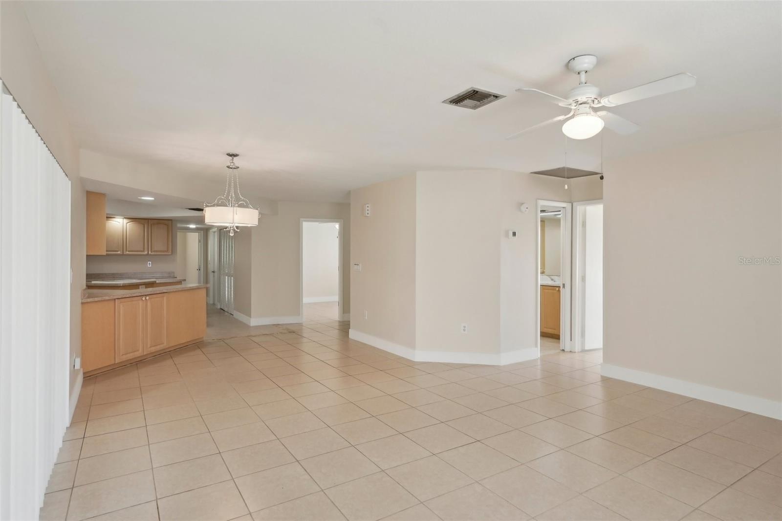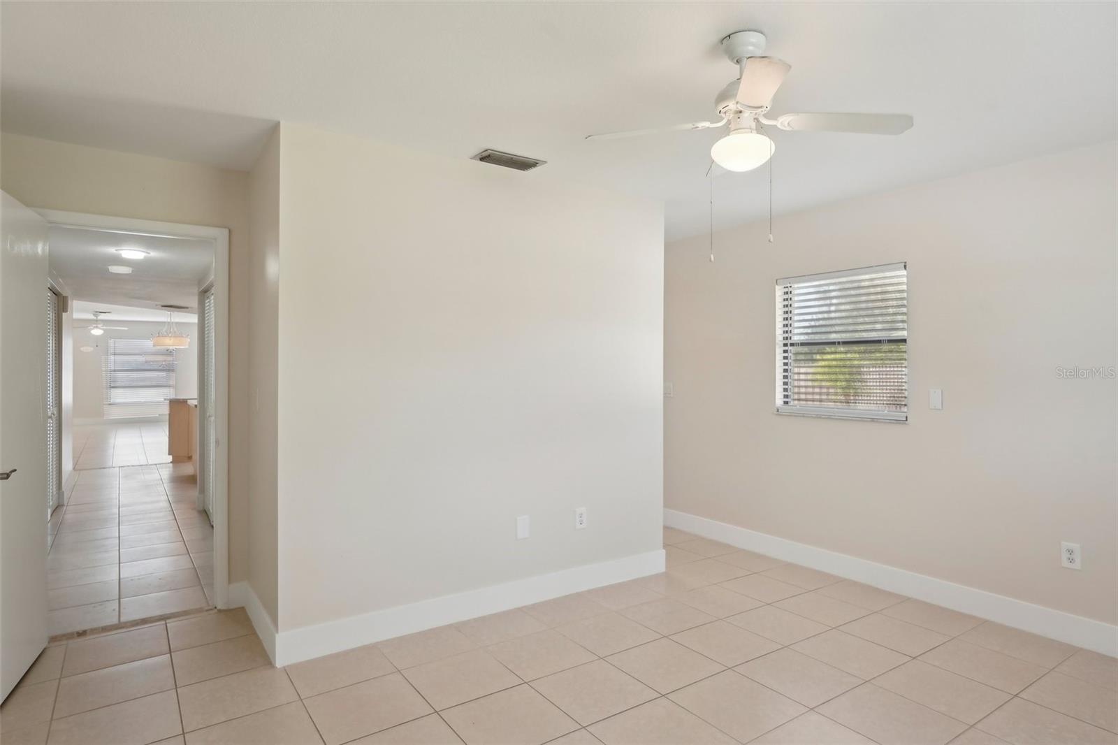 One or more photo(s) has been virtually staged. One or more photo(s) has been virtually staged. This immaculate and well-maintained 3-bedroom, 2-bath home sits on a spacious corner lot, offering both comfort and convenience. The heart of the home is the beautifully designed kitchen, seamlessly opening to the dining and family room—perfect for entertaining. A versatile bedroom with double doors at the entry can serve as a home office or flex space. Both bathrooms have been updated with elegant new tile and quartz countertops. The primary suite features a generous walk-in closet with built-ins and a private en-suite bath. Step outside to enjoy the inviting, large screened lanai—ideal for relaxing or hosting guests. Best of all, this home is in a NO FLOOD ZONE, meaning NO FLOOD INSURANCE REQUIRED! Don’t miss this incredible opportunity!