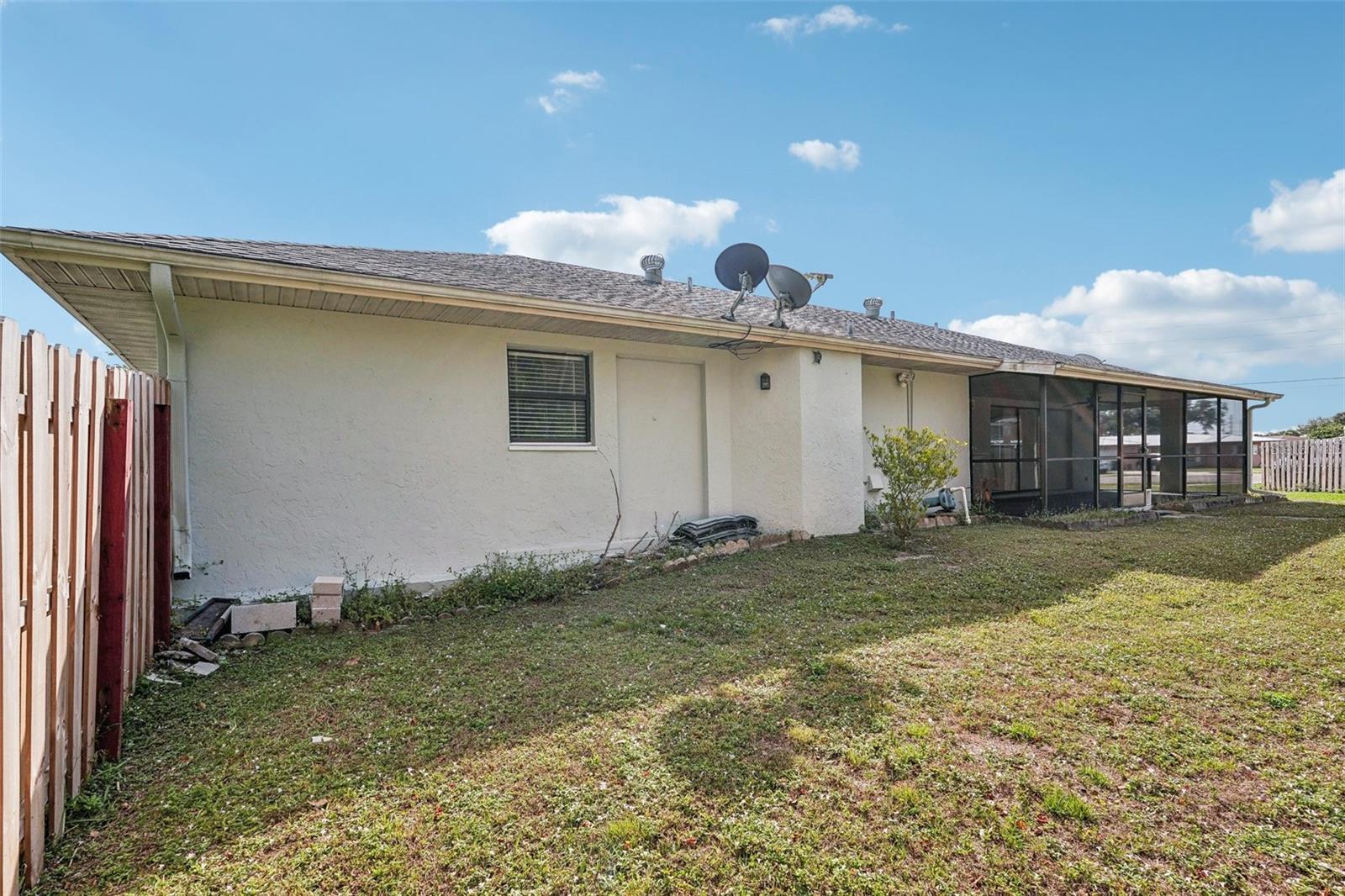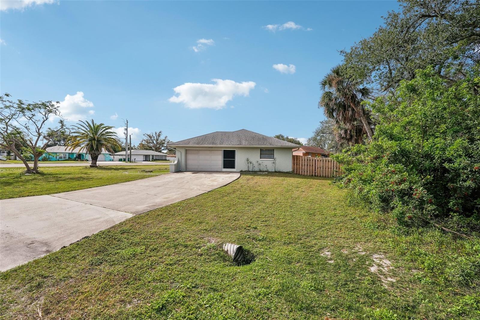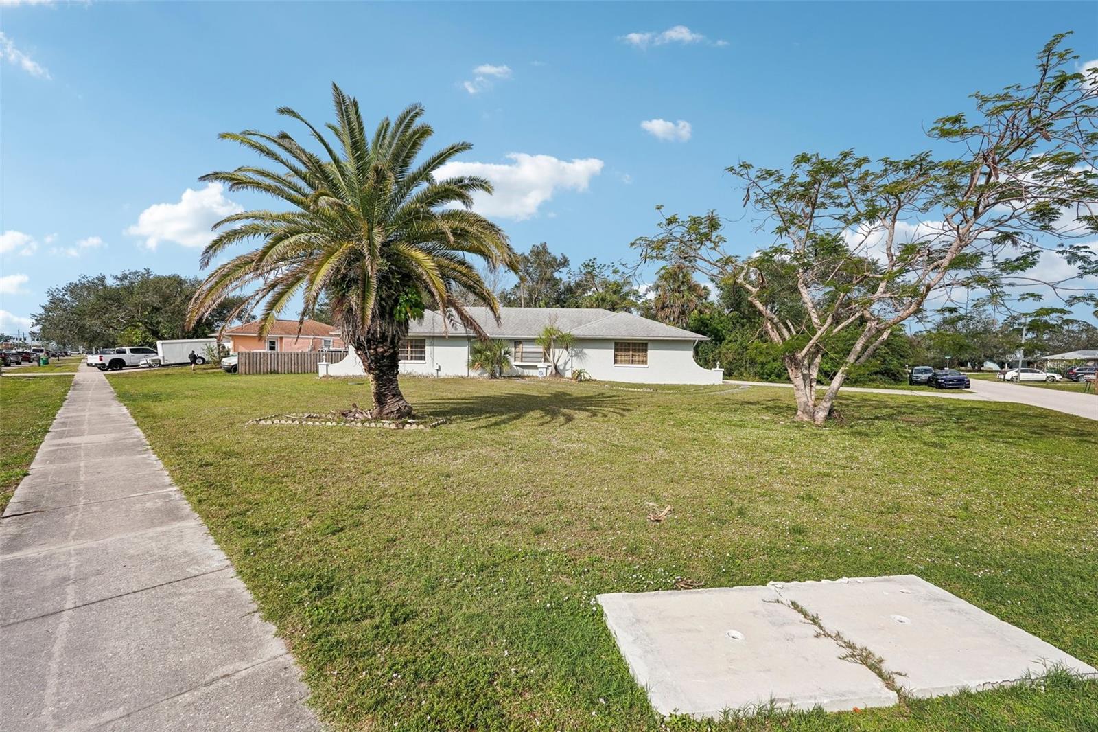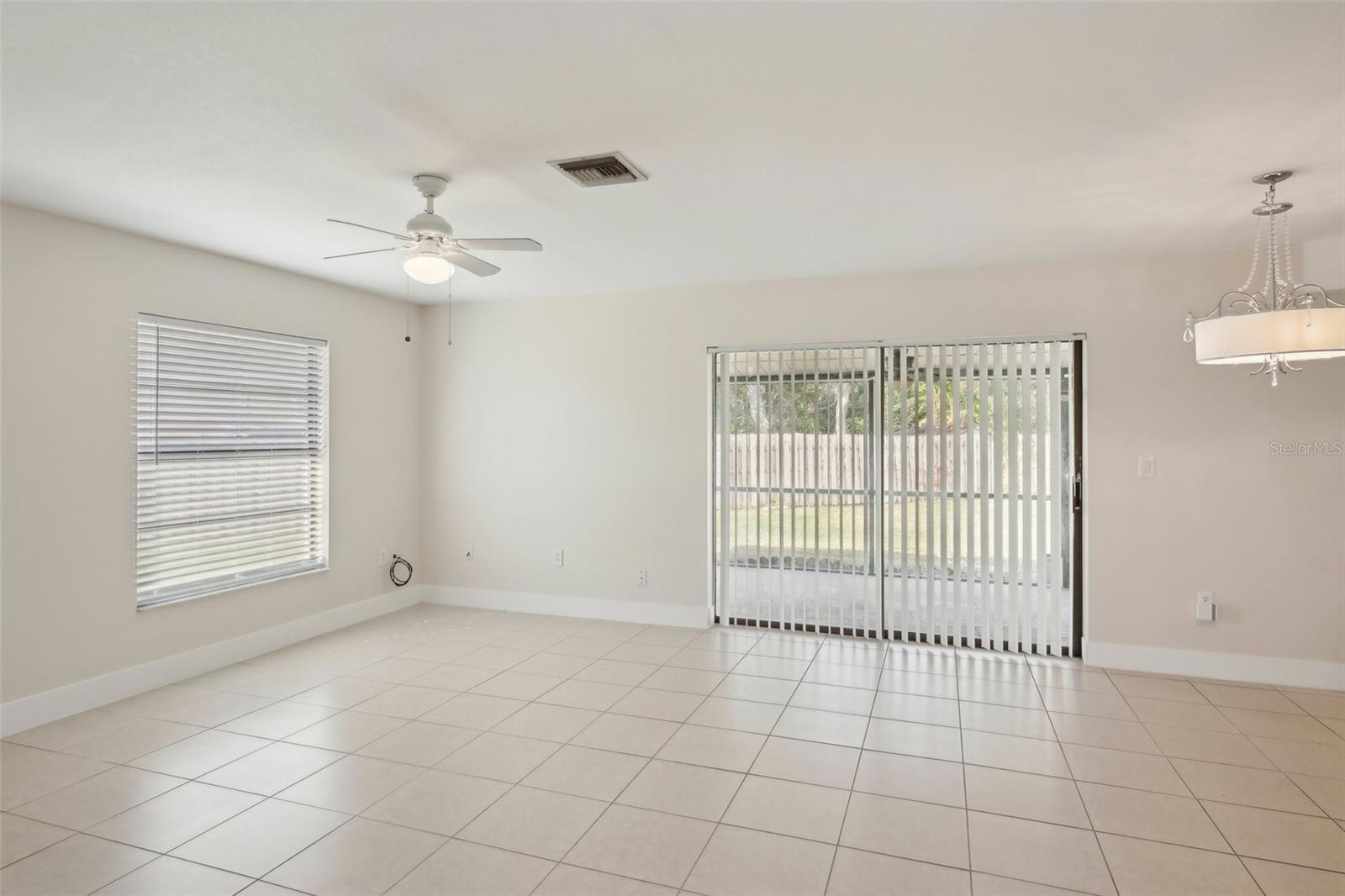 One or more photo(s) has been virtually staged. One or more photo(s) has been virtually staged. This immaculate and well-maintained 3-bedroom, 2-bath home sits on a spacious corner lot, offering both comfort and convenience. The heart of the home is the beautifully designed kitchen, seamlessly opening to the dining and family room—perfect for entertaining. A versatile bedroom with double doors at the entry can serve as a home office or flex space. Both bathrooms have been updated with elegant new tile and quartz countertops. The primary suite features a generous walk-in closet with built-ins and a private en-suite bath. Step outside to enjoy the inviting, large screened lanai—ideal for relaxing or hosting guests. Best of all, this home is in a NO FLOOD ZONE, meaning NO FLOOD INSURANCE REQUIRED! Don’t miss this incredible opportunity!