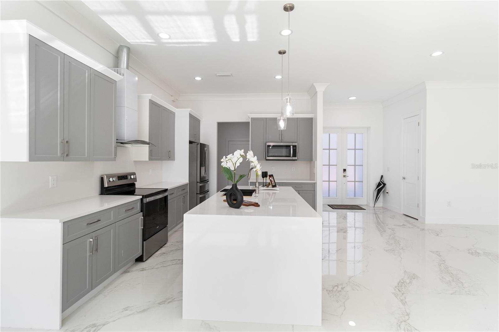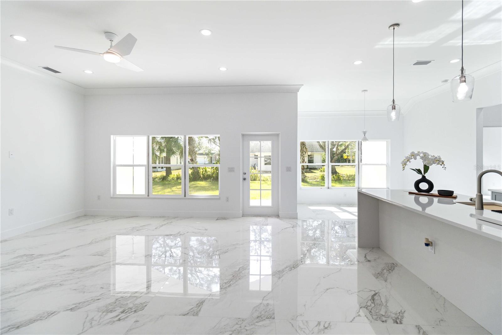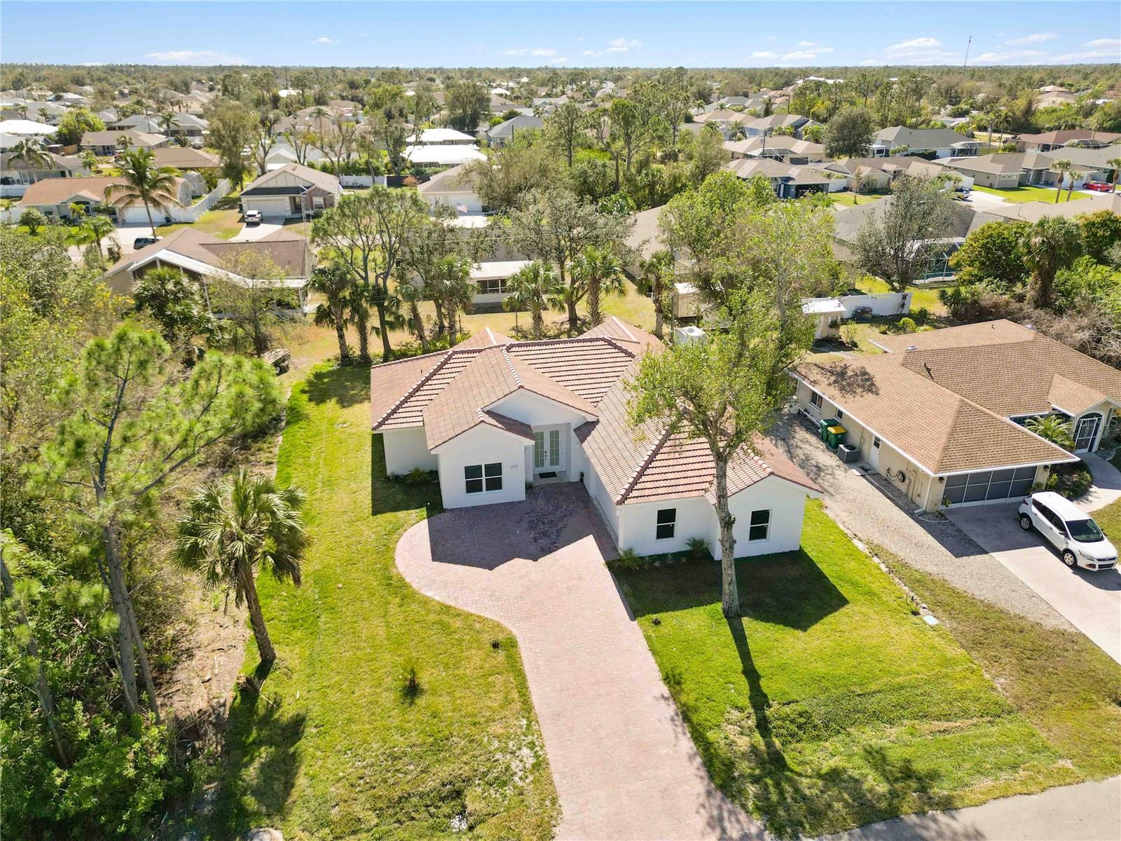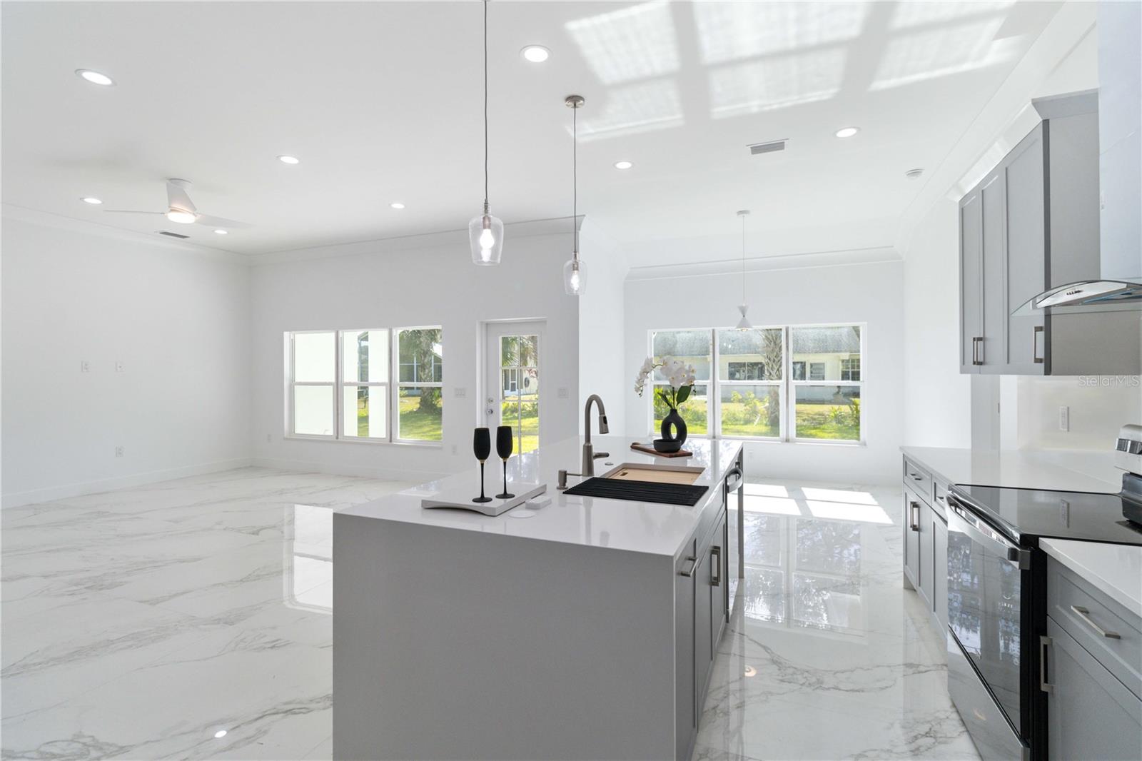 One or more photo(s) has been virtually staged. Step into a world of refined luxury with this stunning new residence in the coveted Section 15 of Port Charlotte. Offering a prime location, unparalleled amenities, and exceptional real estate growth potential, this architectural masterpiece seamlessly blends modern elegance with everyday functionality. Spanning three bedrooms and two bathrooms, this open-concept home is designed to impress. The soaring 11-foot ceilings and gleaming porcelain floors create an ambiance of sophistication and spaciousness, while expansive windows bathe the interiors in natural light. The gourmet kitchen is a chef’s dream, equipped with Samsung "Bespoke" appliances, an oversized quartz island, and an independent pantry, perfect for entertaining and culinary creations. The great room, dining area, and foyer flow effortlessly, offering a seamless connection to the backyard retreat. The luxurious master suite is a private oasis, featuring a spa-like ensuite bathroom with a double vanity, walk-in shower, and indulgent soaking tub. The two additional bedrooms, each with walk-in closets, share a spacious bath with a double vanity and separate shower and toilet area, ensuring privacy and convenience. Outdoors, the covered patio invites alfresco dining and relaxation, while the expansive green space offers endless possibilities for a custom pool, lush landscaping, or outdoor entertainment area. Located within easy reach of Fort Myers and Sarasota, Port Charlotte offers a perfect balance of tranquility, accessibility, and recreation. Enjoy pristine nature trails at Bayshore Live Oak Park, Charlotte Harbor Preserve State Park, and Audubon Pennington Nature Park. Sports enthusiasts will love the city’s diverse facilities for baseball, soccer, tennis, pickleball, cricket, and more. For those seeking a coastal escape, Port Charlotte Beach Park offers an artificial beach, heated pool, fishing pier, and sports courts, while Englewood Beach, Stump Pass Beach State Park, and Don Pedro Island State Park provide a paradise of white sands, turquoise waters, and breathtaking sunsets. This isn’t just a home—it’s a luxurious lifestyle in one of Florida’s most desirable destinations. Don’t miss this extraordinary opportunity—schedule your private showing today and make this dream home yours!