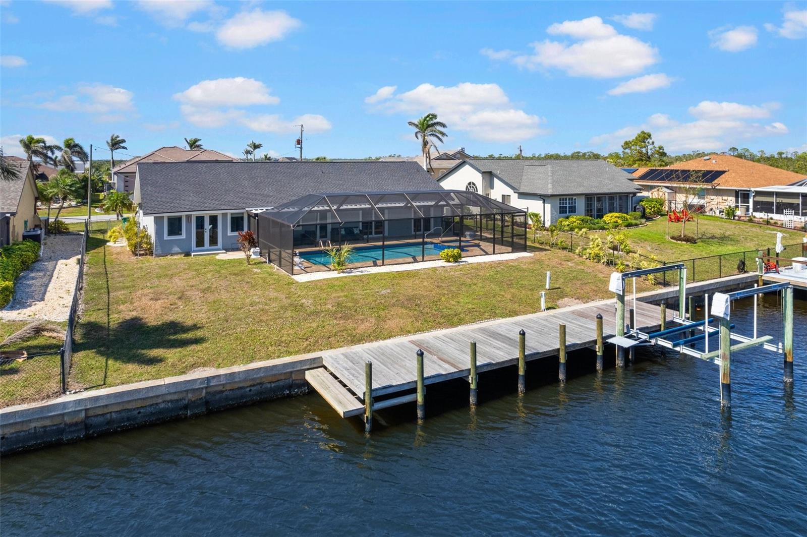 MOTIVATED SELLER! MAKE ME AN OFFER! NO HISTORY OF FLOODING OR ANY WAER DAMAGE AT ALL! HIGH AND DRY! Welcome to your dream waterfront pool home at 4196 Eastlake Court in beautiful Port Charlotte, Florida! This stunning home offers the perfect blend of comfort, style, and access to the open waters. This home is a boater’s paradise with direct access to sailboat water right from your own backyard! This home features 3 large bedrooms and 2 full baths with stunning modern finishes and an ample two car garage. The gourmet kitchen features a large island with stunning quartz countertops and soft close cabinetry. The kitchen offers new stainless steel appliances including a wine fridge! The home has been fully renovated from top to bottom offering a new roof, new AC, and hurricane impact windows! Step outside to your private oasis! The property boasts 80 feet of waterfront with a dock and lift. The heated pool and spa have been beautifully maintained. The large screened lanai is surrounded by lush landscaping, perfect for entertaining or unwinding after a long day. Enjoy breathtaking views of the canal from your backyard where you can easily launch your boat for a short ride to the harbor and Gulf of America!. Situated in an upscale boating community, this home provides not only waterfront living but also proximity to many local beaches, shopping, dining, and many recreational activities. The neighborhood is known for its friendly atmosphere and well maintained properties. Don’t miss out on this incredible opportunity to own a piece of paradise in sunny Florida!