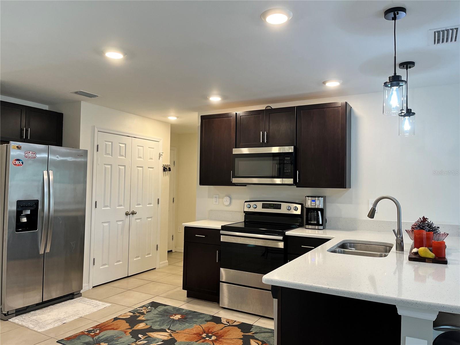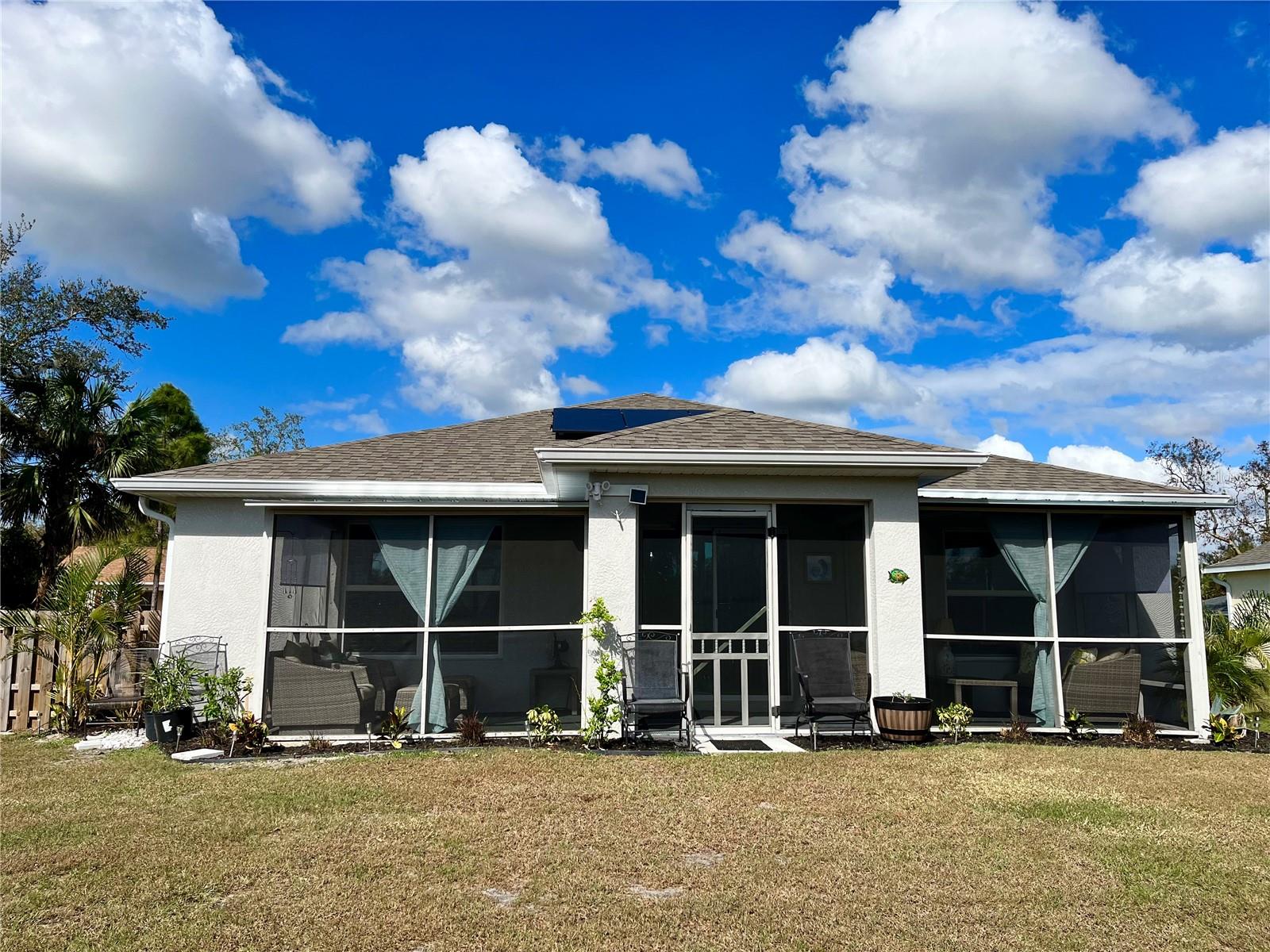 Step into modern comfort with this 2022-built, fully furnished 3-bedroom, 2-bathroom home—completely move-in ready! Designed for both style and function, the split floor plan ensures privacy, while the open-concept kitchen and living area provide the perfect space for gathering. The kitchen shines with stainless steel appliances, a breakfast bar, a spacious pantry, and ample cabinetry. Enjoy added peace of mind with this NO FLOOD ZONE property that also comes with NO HOA restrictions. Plus, solar panels mean super low electricity bills! The fully fenced backyard offers a private outdoor retreat, and best of all, this home stood strong through last years hurricanes with NO damage or flooding. Don’t miss out on this incredible opportunity—schedule your showing today!