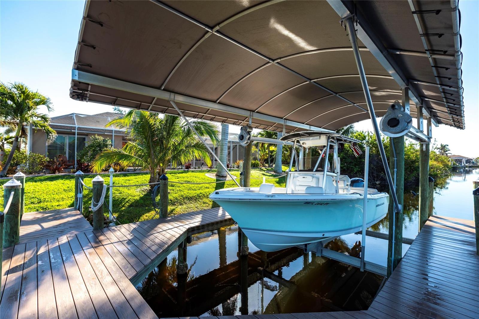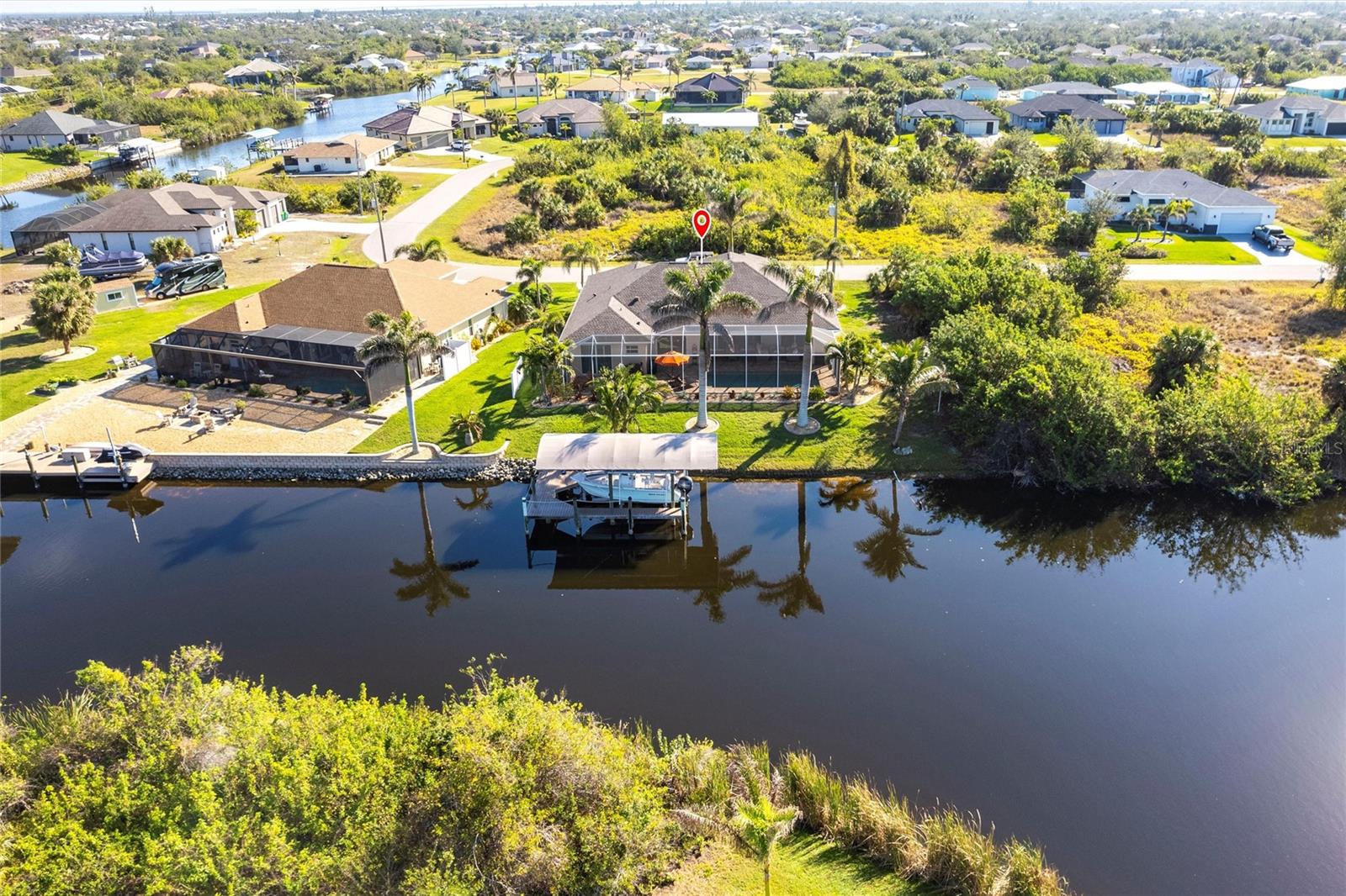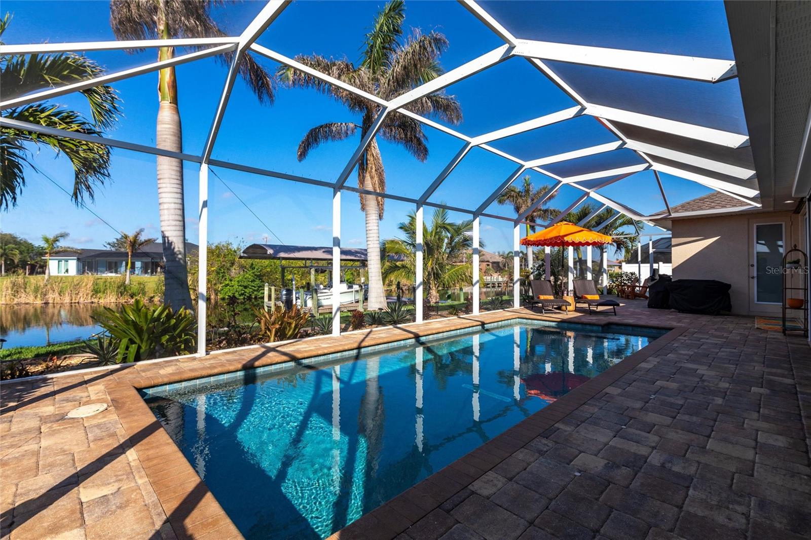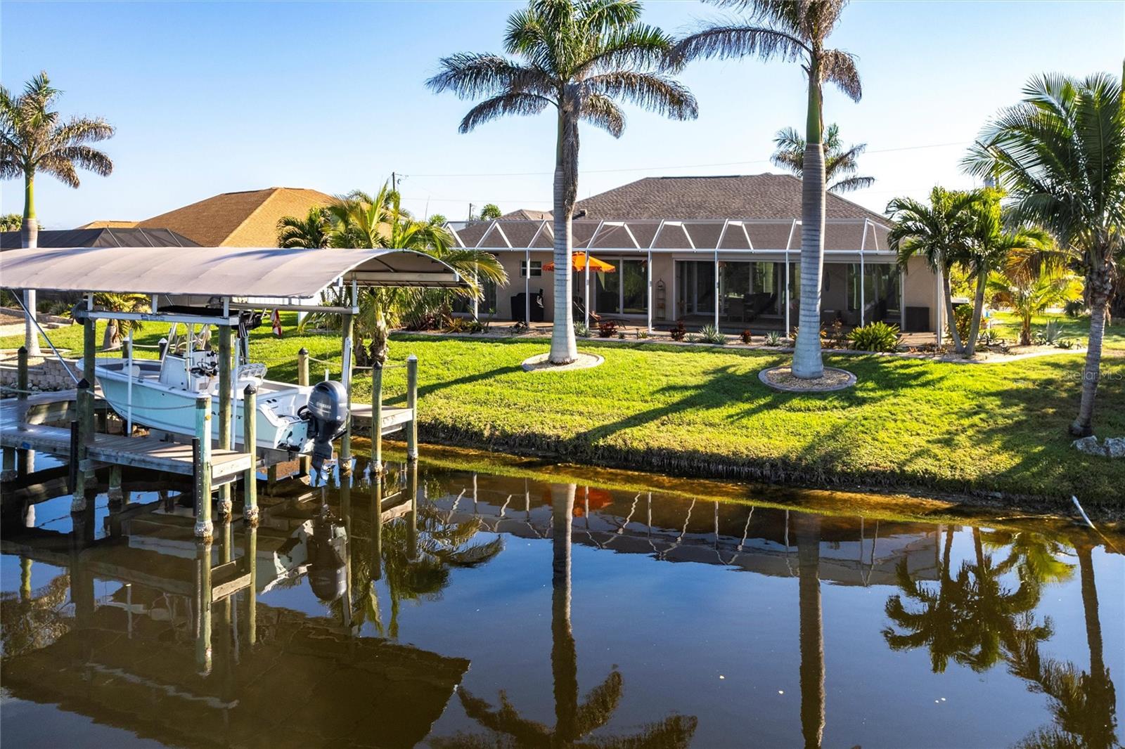 ****ENORMOUS INCOME POTENTIAL. THIS HOUSE WOULD RENT LIKE A DREAM OR USE IT FOR YOUR LUXURY FOREVER HOME!!! WATERFRONT, 3/2 HOME WITH DEN AND 3 CAR GARAGE AND PRIVATE BOAT LIFT, PROPERTY --- AT MOTIVATED PRICE. BE IN DEEP WATER IN MINUTES. MODERN BLOCK BUILD WITH ALL THE LATEST HOME TECHNOLOGY. THE MOST DELUXE WIND AND WATER PROTECTION ON THIS LOVELY PROPERTY. HAVE FUN WITH NO WORRIES! ****Enjoy beautiful sunset views from your backyard w/your intersecting canals. Protect & store your boat w/your NEW canopy & 60001b boat lift plus a great NEW captains walk & composite decking w/ water & power. This home is loaded w/ UPGRADES like impact windows & doors including a zero comer sliders, plantation Gutters, die thru-out, 8 doors, NEW roof. NEW pool cage, NEW AC NEW landscaping & lighting, FRESHLY sealed pavers, pool bath, multiple showerheads, camera system, generator ready PLUS so much more! ****From the moment you walk into the glass double door entry this home boasts of its open concept living w/ soaring & tray ceilings plus an oversized covered lanai w/ electric hurricane screen which you can use for extra indoor/outdoor living w/ your zero corner doors open & yet staying comfortable in the air-conditioned space. This home has remarkable storage w/ it is 3 car garages & overhead hanging storage racks, oversized laundry room w/ sink, not to mention the SMART design of the pocket doors in the primary closets allowing you to use all of your wall space. Don't miss your chance on this GREAT home & see all that South Gulf Cove has! FOR SALE OR FOR RENT.