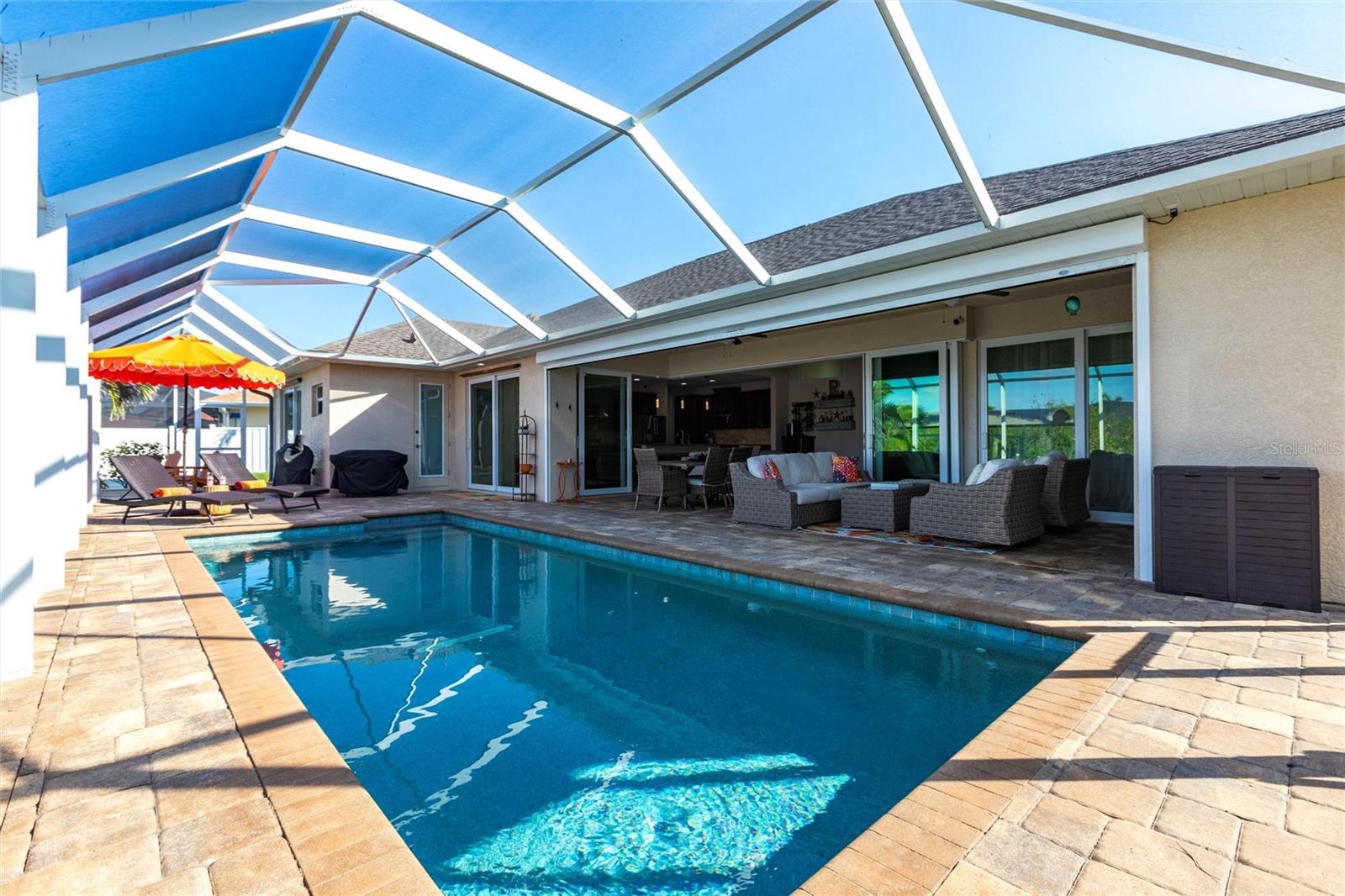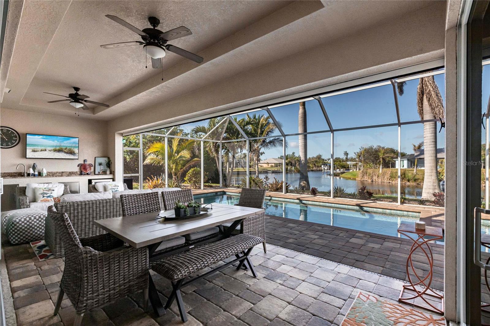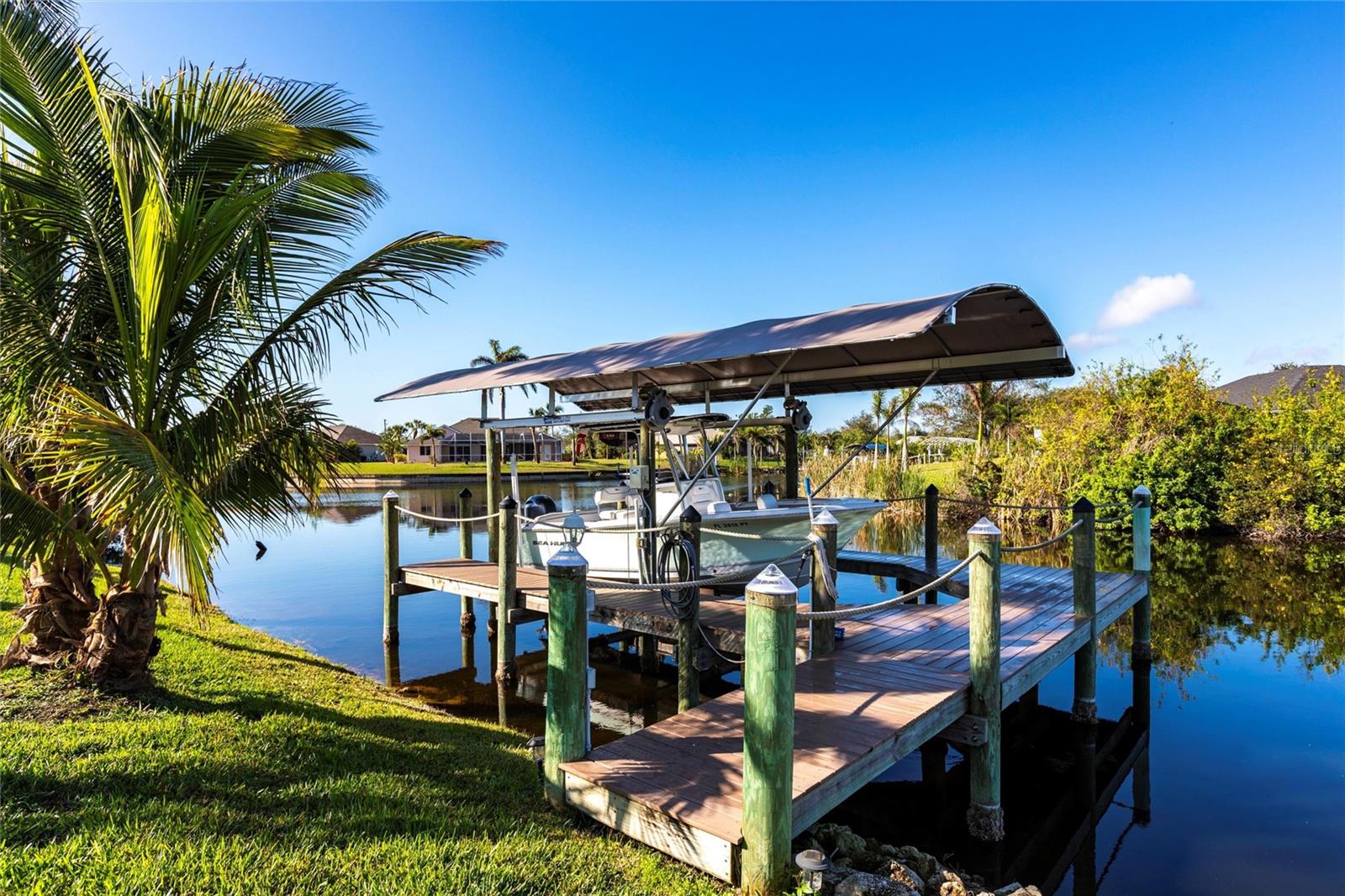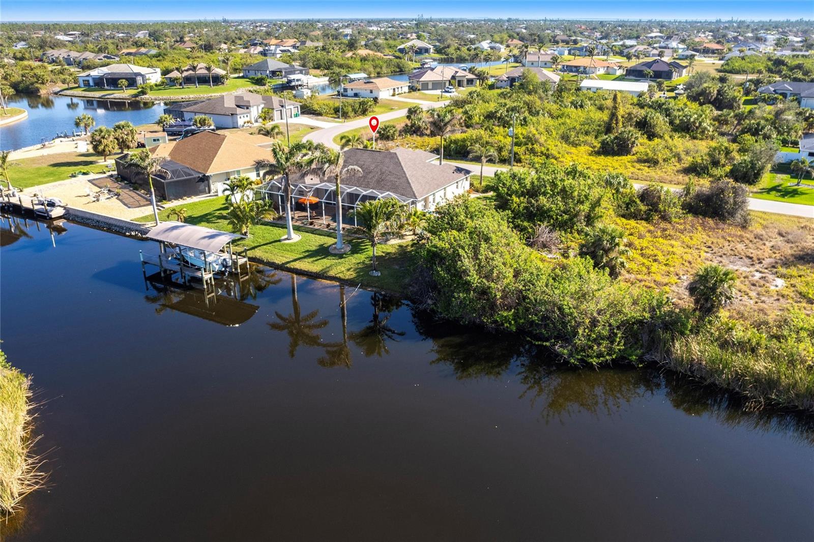 ****ENORMOUS INCOME POTENTIAL. THIS HOUSE WOULD RENT LIKE A DREAM OR USE IT FOR YOUR LUXURY FOREVER HOME!!! WATERFRONT, 3/2 HOME WITH DEN AND 3 CAR GARAGE AND PRIVATE BOAT LIFT, PROPERTY --- AT MOTIVATED PRICE. BE IN DEEP WATER IN MINUTES. MODERN BLOCK BUILD WITH ALL THE LATEST HOME TECHNOLOGY. THE MOST DELUXE WIND AND WATER PROTECTION ON THIS LOVELY PROPERTY. HAVE FUN WITH NO WORRIES! ****Enjoy beautiful sunset views from your backyard w/your intersecting canals. Protect & store your boat w/your NEW canopy & 60001b boat lift plus a great NEW captains walk & composite decking w/ water & power. This home is loaded w/ UPGRADES like impact windows & doors including a zero comer sliders, plantation Gutters, die thru-out, 8 doors, NEW roof. NEW pool cage, NEW AC NEW landscaping & lighting, FRESHLY sealed pavers, pool bath, multiple showerheads, camera system, generator ready PLUS so much more! ****From the moment you walk into the glass double door entry this home boasts of its open concept living w/ soaring & tray ceilings plus an oversized covered lanai w/ electric hurricane screen which you can use for extra indoor/outdoor living w/ your zero corner doors open & yet staying comfortable in the air-conditioned space. This home has remarkable storage w/ it is 3 car garages & overhead hanging storage racks, oversized laundry room w/ sink, not to mention the SMART design of the pocket doors in the primary closets allowing you to use all of your wall space. Don't miss your chance on this GREAT home & see all that South Gulf Cove has! FOR SALE OR FOR RENT.