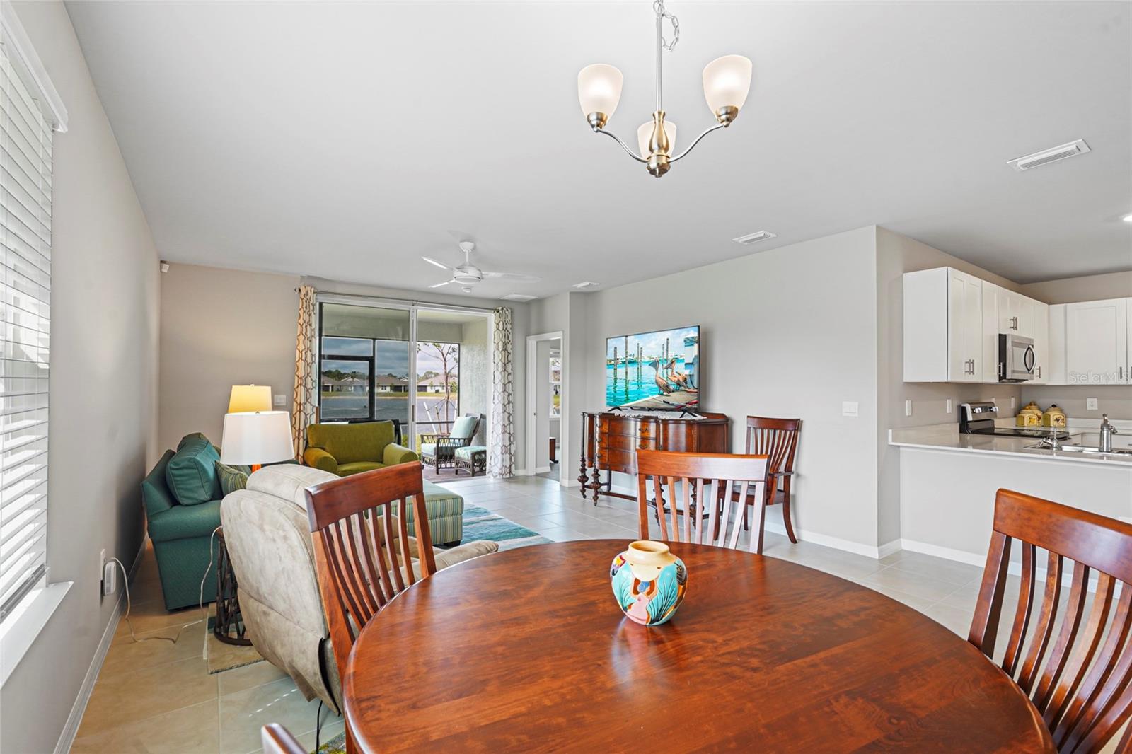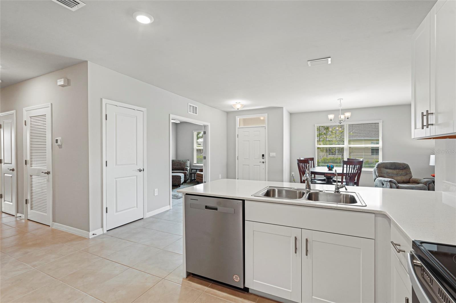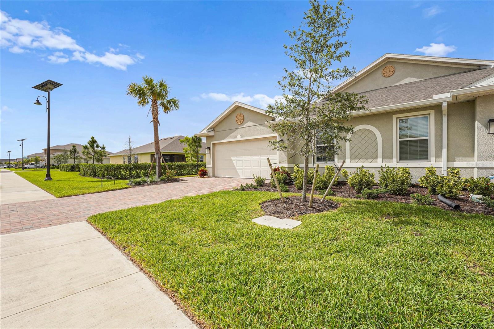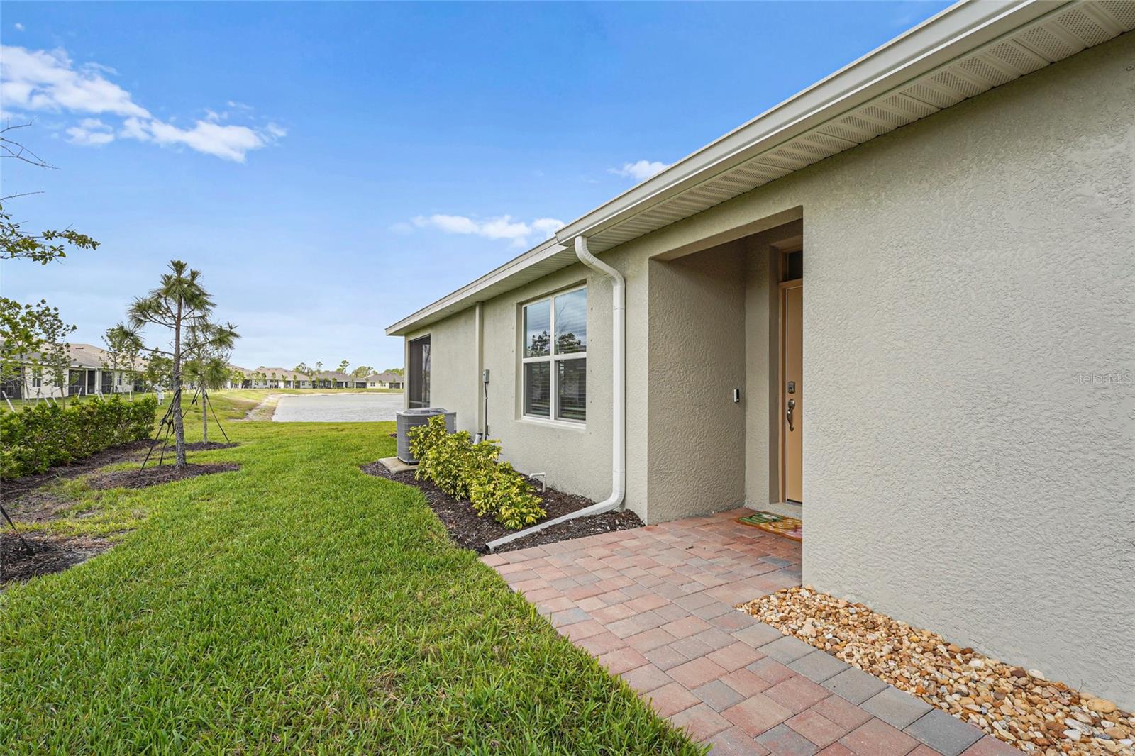 Welcome to this beautifully designed 2-bedroom, 2-bathroom villa PLUS a den, perfectly positioned on a premium LAKE VIEW lot with no direct side neighbor and no construction on the street. Nestled in the highly sought-after community of The Cove at West Port, this home offers a seamless blend of modern style, comfort, and convenience. Step inside to find a gourmet kitchen featuring shaker-style cabinetry, sleek quartz countertops, a spacious island with seating, and a full suite of stainless steel appliances—ideal for entertaining and everyday living. The open split-bedroom layout ensures privacy, while the flexible den/office space easily converts into a third bedroom to accommodate guests or work-from-home needs. The primary suite is a luxurious retreat, complete with a walk-in closet, dual vanities, and an oversized walk-in shower. Both bathrooms are designed with solid surface countertops, stylish tile flooring, and elegantly tiled showers. Additional upgrades include a Culligan water purification system, upgraded ceiling fans, and light fixtures throughout. Enjoy Florida’s breathtaking sunsets from your screened-in lanai overlooking the tranquil lake. Plus, with smart home technology, you’ll have seamless control over your home’s features at your fingertips. Beyond your doorstep, The Cove at West Port offers an exceptional resort-style lifestyle with amenities such as a stylish clubhouse, sparkling pool, state-of-the-art fitness center, pickleball and bocce courts, and more. With low HOA fees of just $260/month covering lawn care and no flood insurance required, this home is the perfect combination of luxury and value. Don’t miss this incredible opportunity—schedule your private showing today!