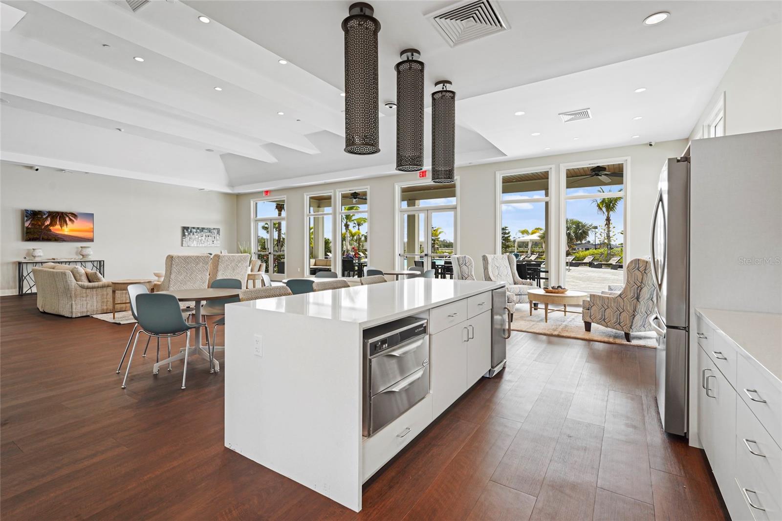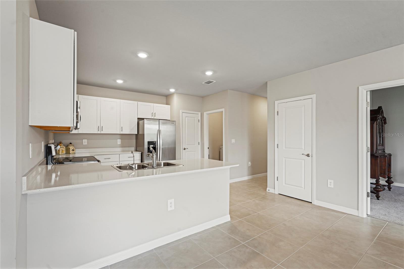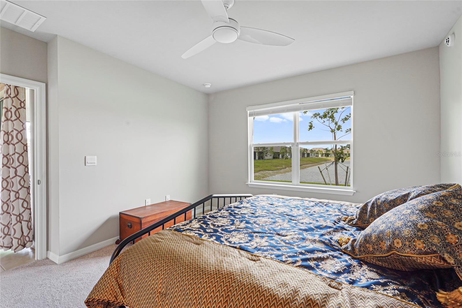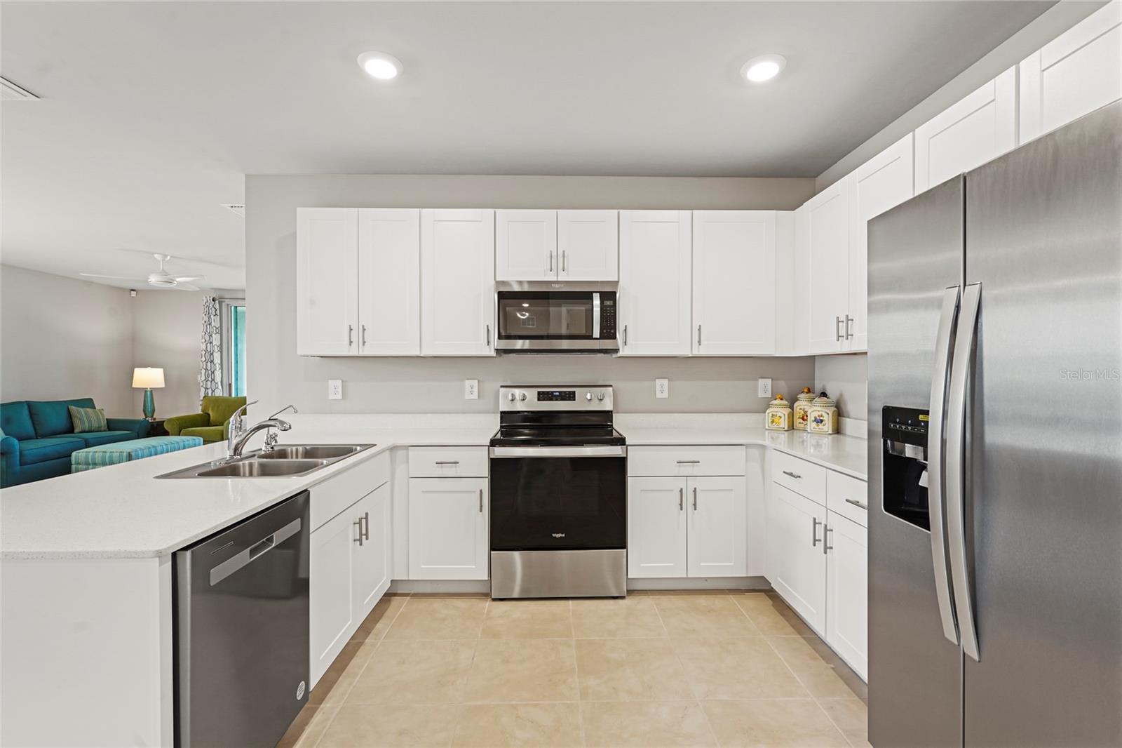 Welcome to this beautifully designed 2-bedroom, 2-bathroom villa PLUS a den, perfectly positioned on a premium LAKE VIEW lot with no direct side neighbor and no construction on the street. Nestled in the highly sought-after community of The Cove at West Port, this home offers a seamless blend of modern style, comfort, and convenience. Step inside to find a gourmet kitchen featuring shaker-style cabinetry, sleek quartz countertops, a spacious island with seating, and a full suite of stainless steel appliances—ideal for entertaining and everyday living. The open split-bedroom layout ensures privacy, while the flexible den/office space easily converts into a third bedroom to accommodate guests or work-from-home needs. The primary suite is a luxurious retreat, complete with a walk-in closet, dual vanities, and an oversized walk-in shower. Both bathrooms are designed with solid surface countertops, stylish tile flooring, and elegantly tiled showers. Additional upgrades include a Culligan water purification system, upgraded ceiling fans, and light fixtures throughout. Enjoy Florida’s breathtaking sunsets from your screened-in lanai overlooking the tranquil lake. Plus, with smart home technology, you’ll have seamless control over your home’s features at your fingertips. Beyond your doorstep, The Cove at West Port offers an exceptional resort-style lifestyle with amenities such as a stylish clubhouse, sparkling pool, state-of-the-art fitness center, pickleball and bocce courts, and more. With low HOA fees of just $260/month covering lawn care and no flood insurance required, this home is the perfect combination of luxury and value. Don’t miss this incredible opportunity—schedule your private showing today!