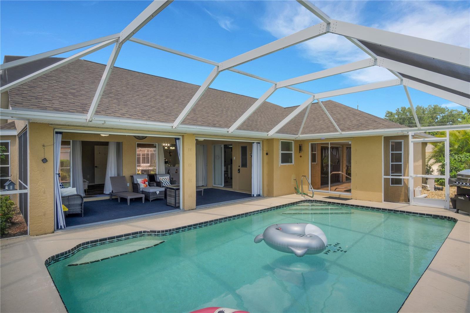 FULLY REMODELED & TURNKEY AIRBNB – PROVEN INCOME PRODUCER! Don’t miss this beautifully updated pool home with over 2,100 sq. ft. of living space! Situated on a corner lot with a circular driveway from both streets, this home boasts lush landscaping with concrete curbing and stone accents. This 3-bedroom, 2-bath, 2-car garage home has been completely refreshed and is truly move-in ready! Recent Upgrades Include: ? New vinyl flooring throughout ? Fully remodeled bathrooms ? Fresh interior paint ? New roof (2022) & A/C ? Smart hurricane curtains ? Pool with re-screened cage Step inside through the large screened and tiled entryway to a bright and airy formal living & dining room with volume ceilings, stylish ceiling fans, and decorative plant shelves. The spacious kitchen features plenty of cabinets, stainless steel appliances, and a walk-in pantry, opening to the family room with a charming bay window. The split-bedroom floor plan offers walk-in closets in every bedroom, including two in the master suite. The primary bathroom boasts dual vanities, a garden tub, and a walk-in shower, while the second bathroom doubles as a convenient pool bath with direct access to the lanai. Proven Airbnb Income – $55,000 in 2024! This home is a fully furnished, turn-key Airbnb with a strong rental history! In 2024 alone, it generated $55,000 in rental income, making it a fantastic investment opportunity. The owner is offering all brand-new furniture and stylish décor for just $1 with purchase, making it an easy and profitable transition for investors or those looking for a beautifully furnished home. Prime Location – No Flood Insurance Required! Enjoy peace of mind in a highly sought-after area just minutes from: ? Sunseeker Resort ? Shopping & restaurants ? World-class fishing & stunning beaches This one won’t last—call today for your private showing!