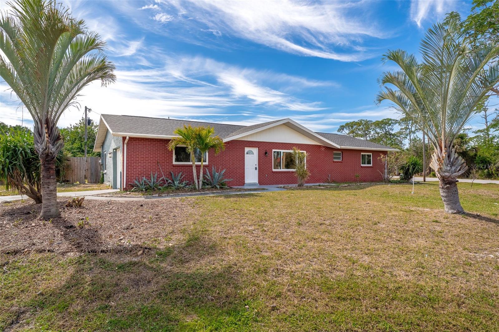 Your Dream Home Awaits! Spacious 3-Bedroom Gem on a Corner Lot with Major Upgrades! If you’ve been searching for a home that combines style and comfort this, is it! Nestled on a generous corner lot in the heart of Port Charlotte, this beautifully upgraded 3-bedroom, 2-bathroom concrete block home offers an open layout, high-end finishes, and a backyard designed for relaxation and entertaining. With no HOA restrictions, extra parking, and big-ticket upgrades already completed, this home is truly move-in ready! Brand New Roof – Installed for peace of mind and long-term durability, New Impact Windows – Providing energy efficiency, safety, and storm protection, New Electrical Box – Modernized to meet today’s safety standards, RV Hookup – Conveniently installed outlet to plug in your RV, Freshly Painted – Interior & Exterior painted in stylish, neutral tones. From the moment you walk in, you’ll feel the warmth and character of this thoughtfully designed home. The open-concept living and dining areas are flooded with natural light, creating an inviting atmosphere for everyday living and entertaining. NO carpet here! Sleek, durable flooring flows throughout the home, making maintenance a breeze. The heart of the home is a well designed and spacious kitchen, which features beautiful wood cabinetry, high-end stainless steel appliances, including a smart refrigerator. Whether you love to cook gourmet meals or just need a functional space for your daily routine, this kitchen delivers both style and practicality. The spacious primary bedroom is a true retreat, offering plenty of room to unwind. The completely updated en-suite bathroom boasts a Bluetooth-enabled music/fan/light system, fresh shower tile, elegant wainscoting, and waterproof vinyl flooring for a spa-like experience every day. Two additional large bedrooms provide flexible living space for family, guests, or even a home office. A second full bathroom ensures convenience and comfort for everyone. Love extra space? You’ll appreciate the multi-purpose sunroom, which can be used as a cozy den, a home office, a playroom, or even a gym. With plenty of windows, this space is bathed in natural light, making it a perfect retreat any time of day. Step outside to your private, fenced backyard, where a paver patio offers the perfect spot for grilling, dining, or simply relaxing under the Florida sun. Mature landscaping adds to the charm, while an outdoor shower is a great bonus for beach days or working in the yard. The side-loading garage includes a built-in workbench and storage area, making it an excellent space for DIY projects or extra organization. Need parking for a boat, RV, or other recreational toys? This property has a dedicated RV hookup and plenty of extra space to accommodate your needs. Located in a friendly, established neighborhood, this home is just minutes from shopping, dining, schools, parks, and the stunning Florida coastline. Enjoy easy access to boating, fishing, and all the outdoor activities that make Port Charlotte a sought-after destination. This move-in-ready home is packed with upgrades and priced to sell. Don’t wait—schedule your showing today and make it yours!
