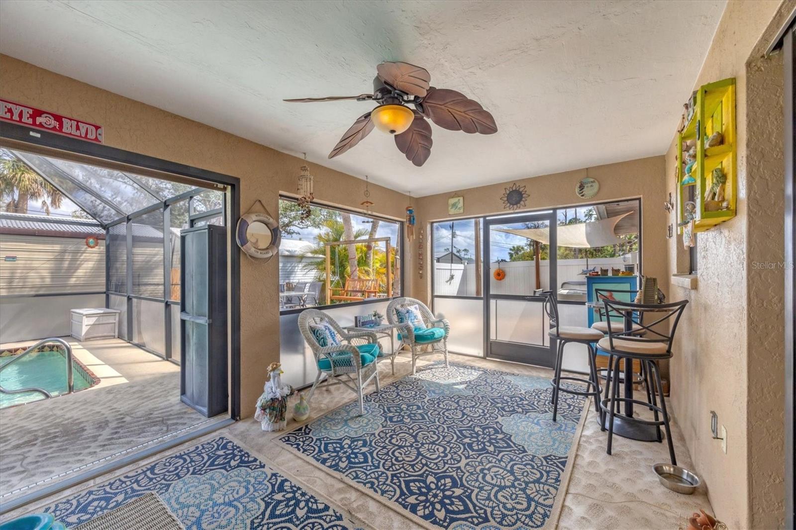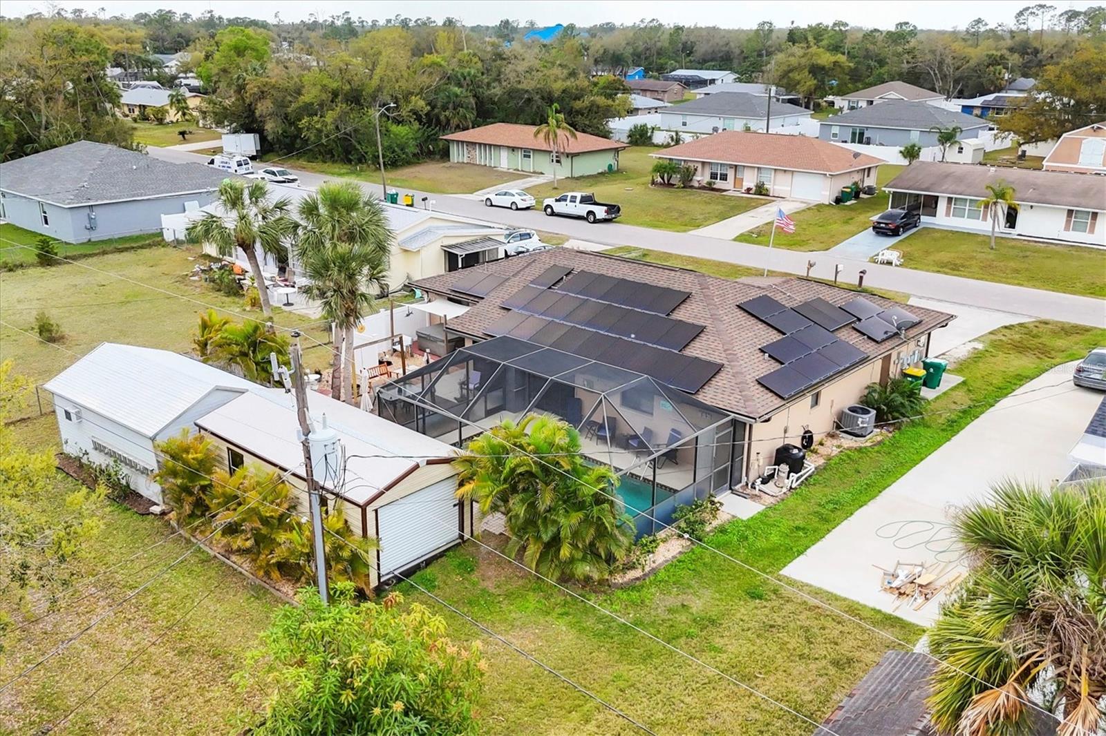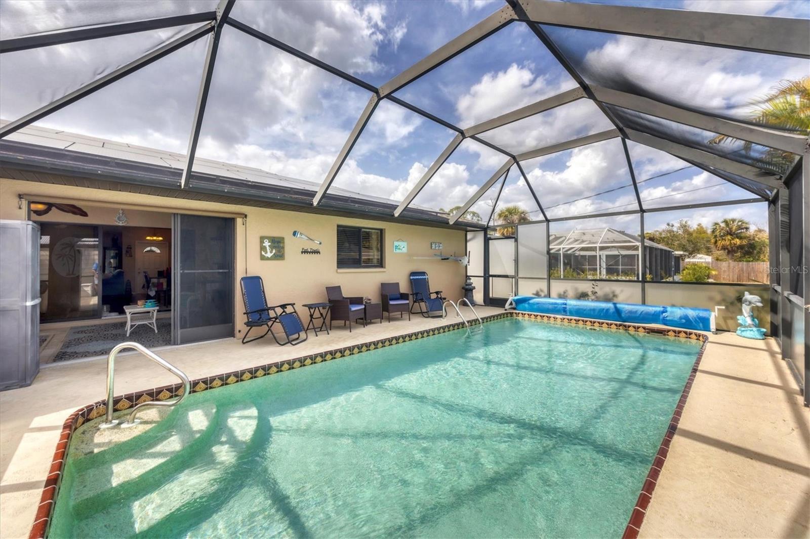 Now offered at just $360,000, 392 Yeager Street presents one of the best values in Port Charlotte for a three-bedroom, two-and-a-half-bath pool home with nearly 2,000 square feet of living space, extensive upgrades, and exceptional energy efficiency. Priced at just $187.98 per square foot, this home stands out among its competition—not just in price, but in long-term savings and lifestyle features. The seller will pay off the entire $70,400 solar loan at closing, transferring full ownership of a 17.1 KW solar system installed in 2021. This results in dramatically reduced utility costs, with the current owners paying only $74 per month in total fixed charges, compared to $350 to $450 per month for similarly sized homes without solar. These savings begin on day one. Inside, the home offers 1,915 square feet of living space plus 259 square feet of covered outdoor living. A vaulted ceiling design and split-bedroom floorplan create an open and functional layout. The living room features bright bow-framed windows, and the professionally converted garage adds a spacious sunken family room complete with a jet tub and half bath, perfect for guests, in-laws, or a home office. While the home no longer has a traditional garage, the added living area and abundant outdoor storage more than compensate. The kitchen was renovated in 2022 with earthstone countertops, a tiled backsplash, recessed lighting, and a walk-in pantry. Luxury vinyl plank flooring extends through the kitchen, living room, and family room, creating continuity and ease of maintenance. Key recent updates include a new roof in 2022, an HVAC system in 2020, an updated electrical panel, and a pool heat pump installed in 2019. Step outside to enjoy a true backyard oasis. The 338-square-foot heated Gunite pool with PebbleTec finish is enclosed in a 651-square-foot screened aluminum cage. The outdoor living space includes a shaded 209-square-foot lanai, a raised deck with swing, a tranquil fishpond, and a hot tub. Two outbuildings—a 12x24 Handi-House workshop and an additional shed, both with garage doors—offer ample space for hobbies, tools, and equipment. Situated on a quiet, low-traffic residential street, this home is not in a flood zone and has never sustained hurricane damage. It is just one block from Liberty Elementary School and within convenient distance of shopping, parks, and local attractions, including Port Charlotte Beach Park (5.7 miles), Fisherman’s Village in Punta Gorda (9.2 miles), Englewood Beach and Manasota Key (20 miles), and Boca Grande (26 miles). The seller is also offering to pay half of the owner's title policy at closing, adding extra value for buyers in today’s market. With its rare combination of energy efficiency, recent updates, generous outdoor living space, and strong price-per-square-foot value, this home stands out among the competition. Schedule your private showing today and experience all that 392 Yeager Street has to offer.