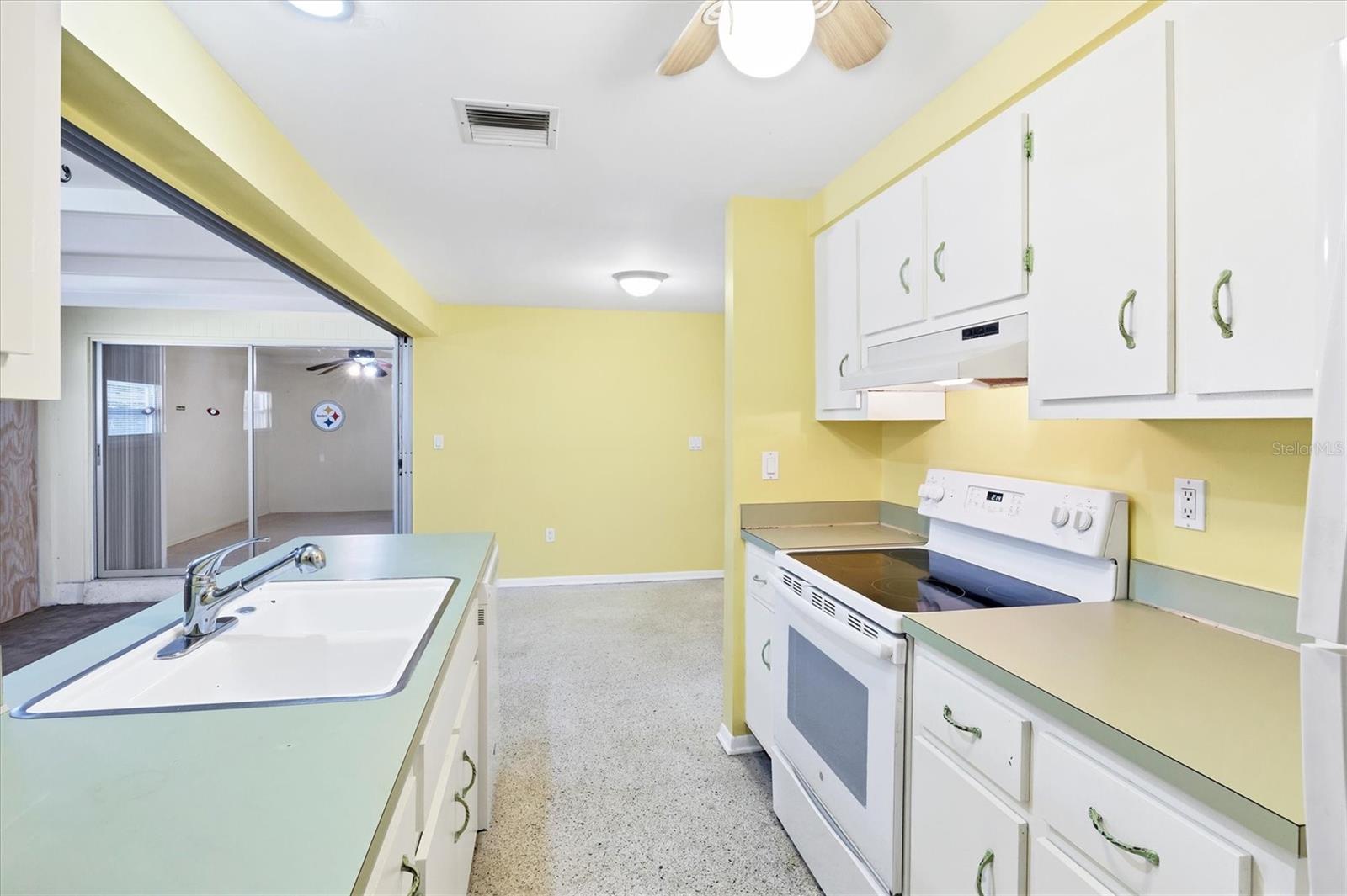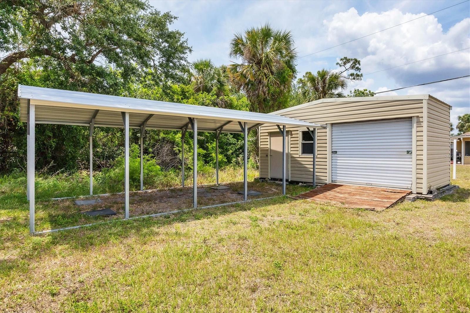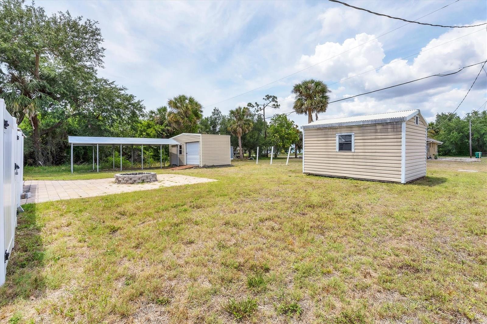 Presenting a sturdy clean house in a Central Location on a very quiet street. Close to the Port Charlotte Mall, Tamiami Trail (US-41), I-75, Punta Gorda Airport and Venice. It did not flood during any storm. Roof is two years old as are the rear windows.....Public water supply eliminates the need or worry of having a well.....Solid terrazzo floors throughout.....The lanai-Florida room has been enclosed and air conditioned to offer a more open living environment.....The primary bedroom has its own private bathroom and features sliding doors leading into the extended living area. The back yard is spacious, includes a finished fire pit as well as ample room for a pool. The patio area is partially covered and gives those using it a surprising amount of privacy....The primary shed is powered by electricity and has an attached ramp to allow access to the NEW Craftsman riding lawn mower that conveys with the property..... There is a car port on the side of the house to park another car or boat and space for a motor home....The garage is roomy enough for a car, a golf cart, tools, snowblower and shelving for all of your Christmas decorations.
