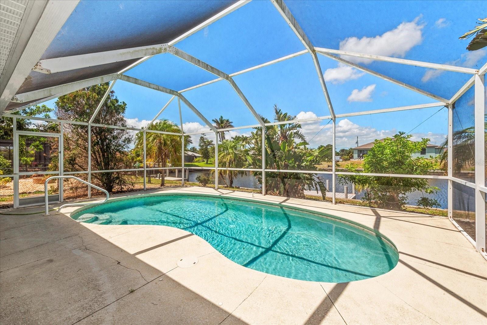 Discover your slice of Southwest Florida paradise in this super clean, spacious and beautifully maintained 3 Bedroom + Den / 2 Bath pool home located on a wide sailboat canal with no bridges—a true boater’s dream! Built in 2002 and offering 2,000 sq. ft. of comfortable living space, this home combines elegance, functionality, and a prime location. Enjoy breathtaking sunsets from your screened lanai and pool area, perfectly positioned with western exposure. Boasting 80 feet of waterfront with a concrete seawall, this home offers direct Gulf access ideal for boating, fishing, or simply relaxing by the water. Step inside to find volume ceilings, an open split floor plan, and a light-filled great room that seamlessly connects to the outdoor living area. The formal dining room is perfect for holidays or family gatherings, while the large open kitchen features a center island with area open to great room, with plenty of counter space for everyday living and amazing western water views Retreat to the private primary suite, complete with a spacious bath, walk-in closets and water views. Two guest bedrooms, a home office/den, and a large laundry room with versatile space for family, work, or guests. The attached 2-car garage provides additional storage and convenience. The newer roof and accordion shutters add peace of mind for summer storm season. While having direct gulf access, the outlying barrier preserves have protected this home from prior area storm surges; this home has never had any flooding. Located close to top-rated boating and fishing, shopping, dining, and everything that makes Southwest Florida one of the most desirable places to live, this home truly has it all.