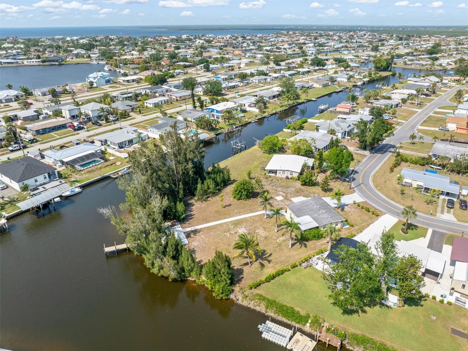 WATERFRONT CHARMING 2 Bedroom, 1 Bathroom Home in Port Charlotte on an OVERSIZED TIP LOT w/ 200ft of WATERFRONTAGE and access to CHARLOTTE HARBOR & the Gulf of Mexico!. This beautiful home 1004 sq ft packs a punch offering a BRIGHT & AIRY floorplan, high ceilings, lots of windows w/ natural light, and tile flooring throughout. You will be welcomed into the spacious living room w/ plenty of space for relaxing and offers a seamless flow into the dinette and kitchen area. The kitchen boasts of plenty of cabinetry w/ lots of storage, a great amount of countertops, all appliances, and even a breakfast bar! Both bedrooms are fantastic in size w/ nice sized closets and nearby to the tastefully updated full bathroom w/ an all tiled WALK-IN shower. Enjoy the beautiful Florida weather on the SCREENED-IN back patio that overlooks the EXPANSIVE backyard w/ plenty of room for a pool, gardening, or hosting evening BBQ's w/ family & friends! This property is PERFECT for the fisherman or boater w/ access to OPEN WATERS within minutes. NEW DOCK - EXTERIOR STORAGE SHED - OVERSIZED PARKING PAD - MATURE LANDSCAPING - 3 ROYAL PALMS & 1 COCONUT TREE - & SO MUCH MORE! Close to US-41, I-75, and local favorites such as Fishermen’s Village, Ponce De Leon Park, shopping & boutiques, fine & casual dining and LIVE entertainment. Also just a short car ride to the Gulf Beaches of Boca Grande, Englewood, or Manasota Key to name a few where you will find world class fishing and white sand between your toes. Schedule your showing TODAY!