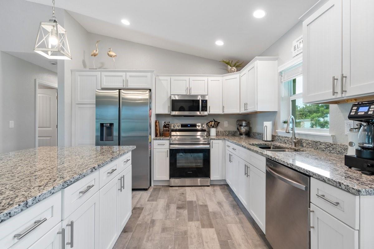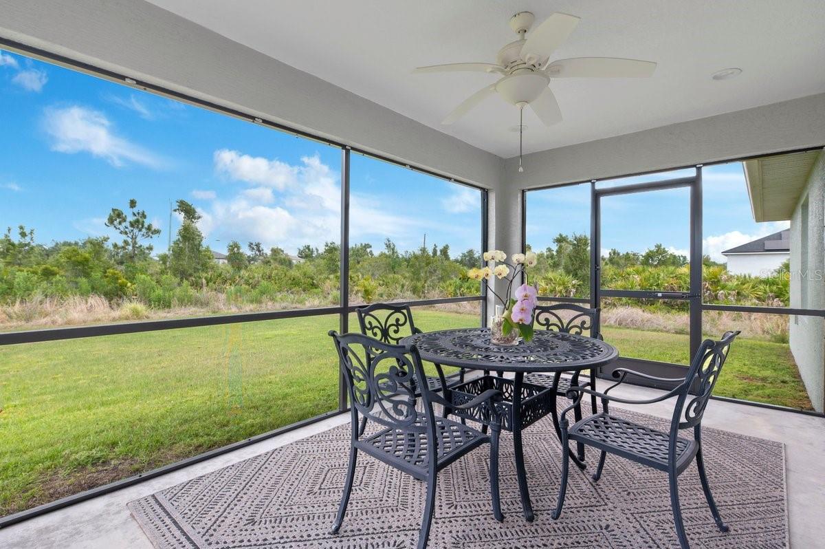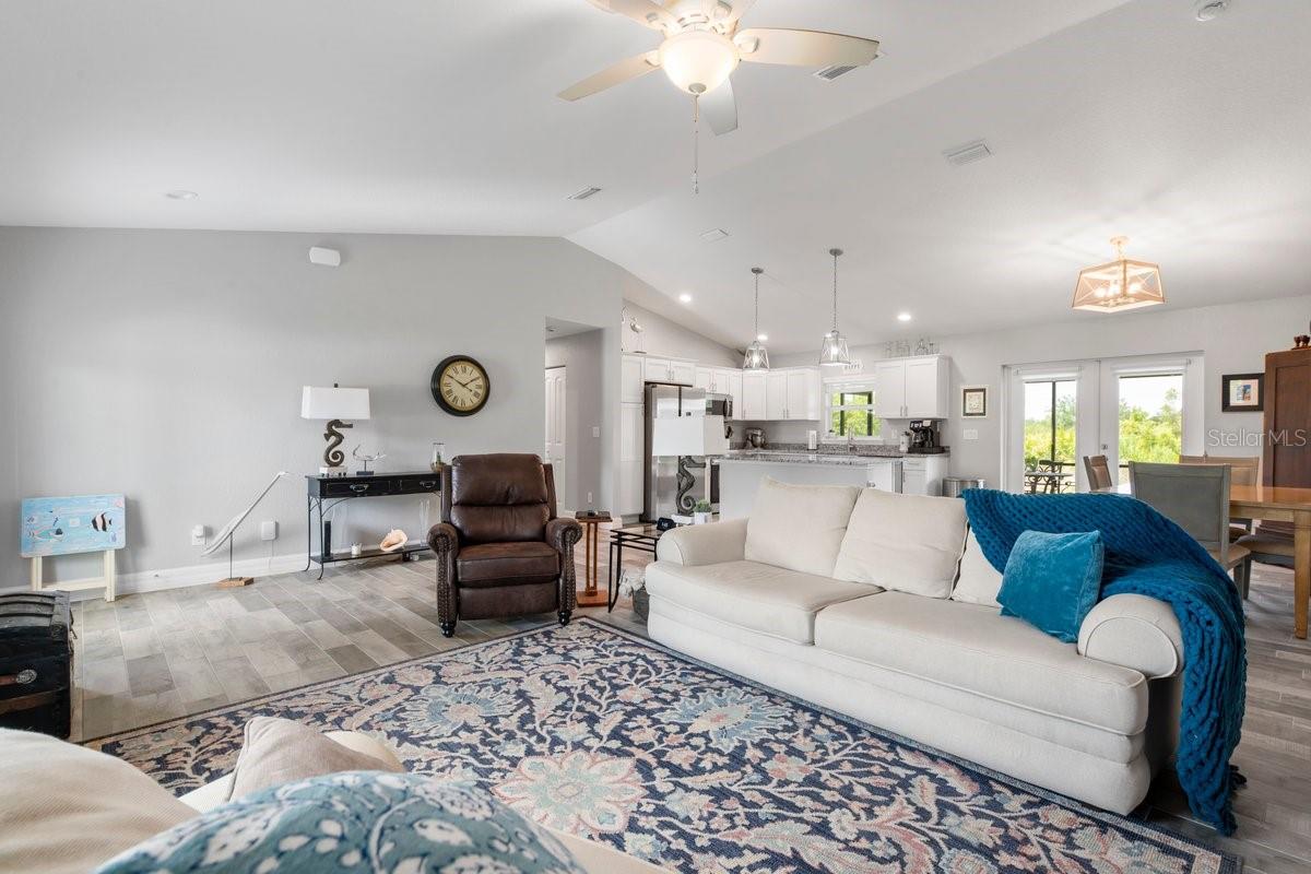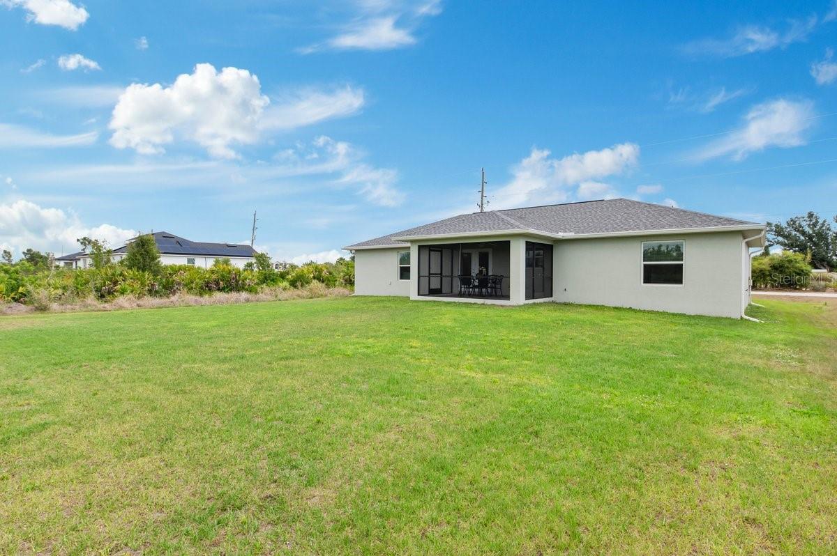 Welcome to this like-new (built 2023), move-in ready, 3 bed 2 bath home nestled in the sought-after South Gulf Cove community! This open-concept residence features beautiful wood-look tile flooring throughout, creating a seamless and stylish look. The kitchen boasts a large island, granite countertops, and soft-close wood cabinetry—perfect for cooking and entertaining. French doors open to a screened lanai, ideal for relaxing or enjoying Florida’s beautiful weather. The spacious primary en suite features dual sinks and a generous walk-in closet. Additional highlights include a convenient laundry room with a utility sink, and an OVERSIZED 2-car garage with EPOXY FLOORS and shelving for extra storage, screened in lanai, fixtures, blinds and an EXTENDED DRIVEWAY for overflow parking. The expansive yard has plenty of room for a pool and is equipped with a full IRRIGATION system. Enjoy peace of mind with no HOA fees and the option for community membership. Explore nearby parks and preserves, and take advantage of the area’s renowned fishing, boating, and golf opportunities. Just minutes from Boca Grande, Englewood, and Manasota Key Beaches! Don’t miss your chance to own this impeccable home in a fantastic location—schedule your showing today!