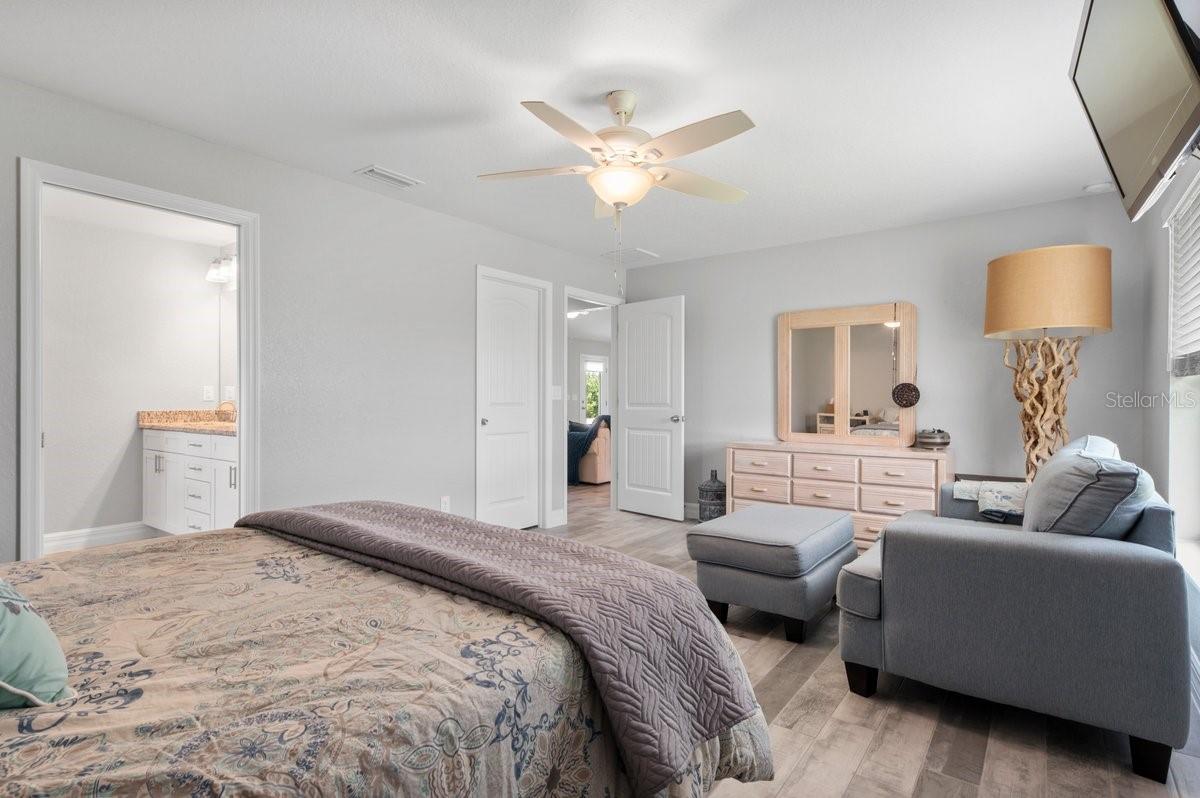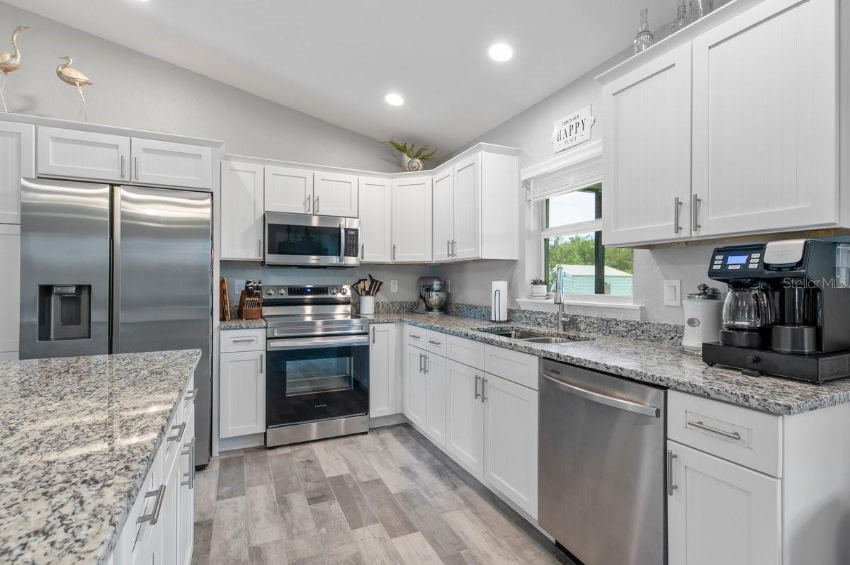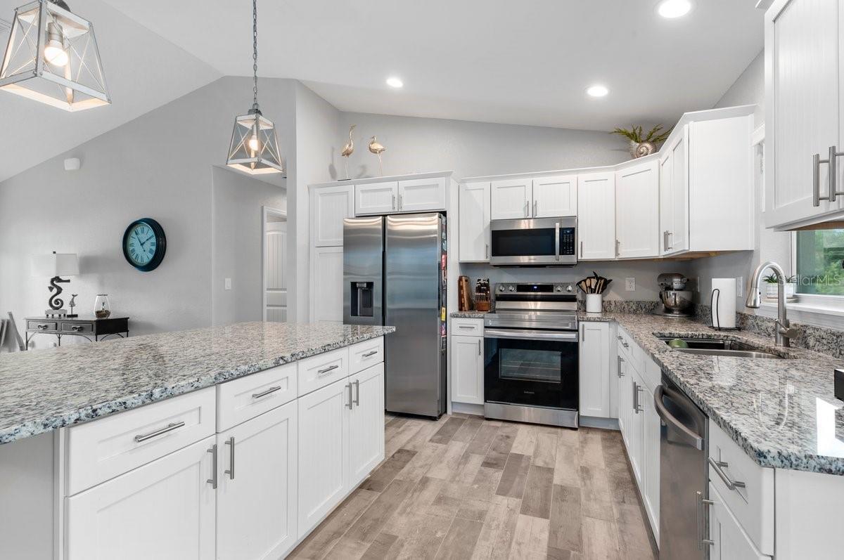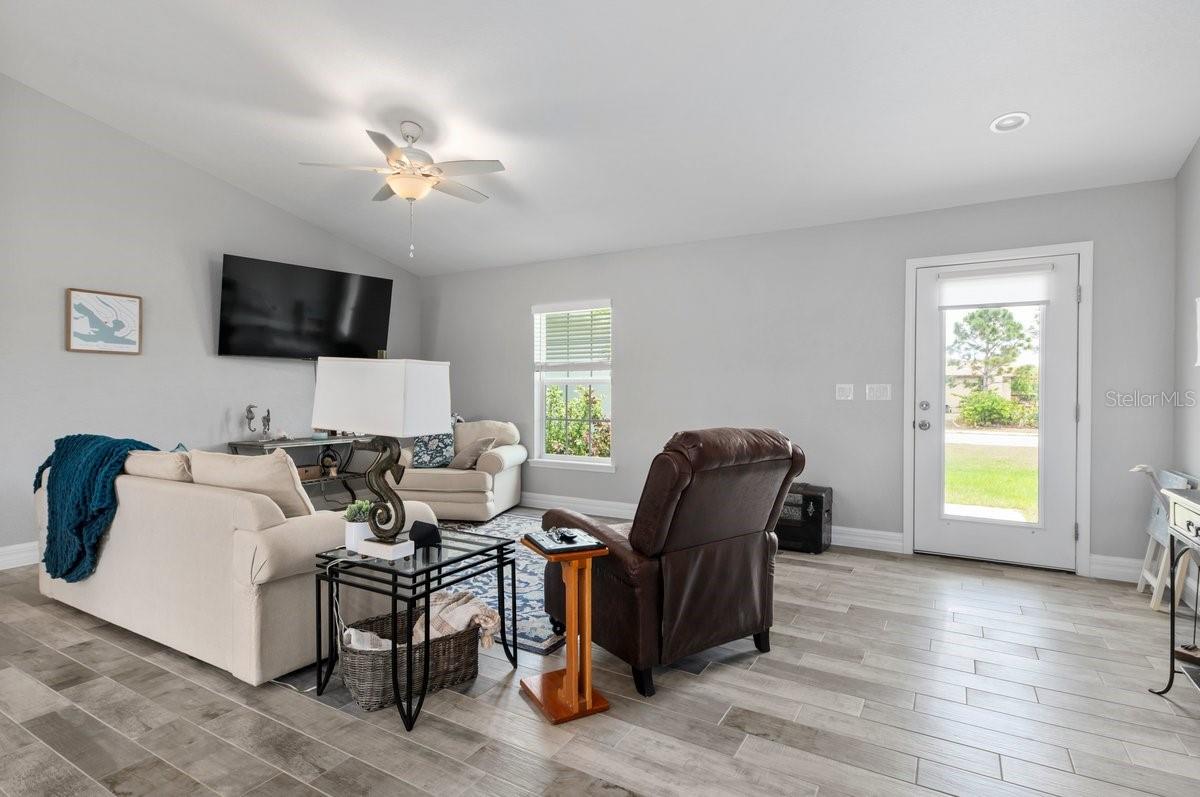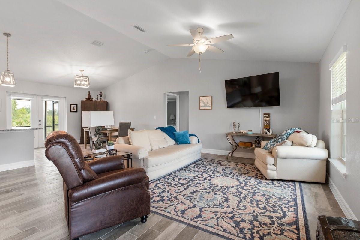 Welcome to this like-new (built 2023), move-in ready, 3 bed 2 bath home nestled in the sought-after South Gulf Cove community! This open-concept residence features beautiful wood-look tile flooring throughout, creating a seamless and stylish look. The kitchen boasts a large island, granite countertops, and soft-close wood cabinetry—perfect for cooking and entertaining. French doors open to a screened lanai, ideal for relaxing or enjoying Florida’s beautiful weather. The spacious primary en suite features dual sinks and a generous walk-in closet. Additional highlights include a convenient laundry room with a utility sink, and an OVERSIZED 2-car garage with EPOXY FLOORS and shelving for extra storage, screened in lanai, fixtures, blinds and an EXTENDED DRIVEWAY for overflow parking. The expansive yard has plenty of room for a pool and is equipped with a full IRRIGATION system. Enjoy peace of mind with no HOA fees and the option for community membership. Explore nearby parks and preserves, and take advantage of the area’s renowned fishing, boating, and golf opportunities. Just minutes from Boca Grande, Englewood, and Manasota Key Beaches! Don’t miss your chance to own this impeccable home in a fantastic location—schedule your showing today!