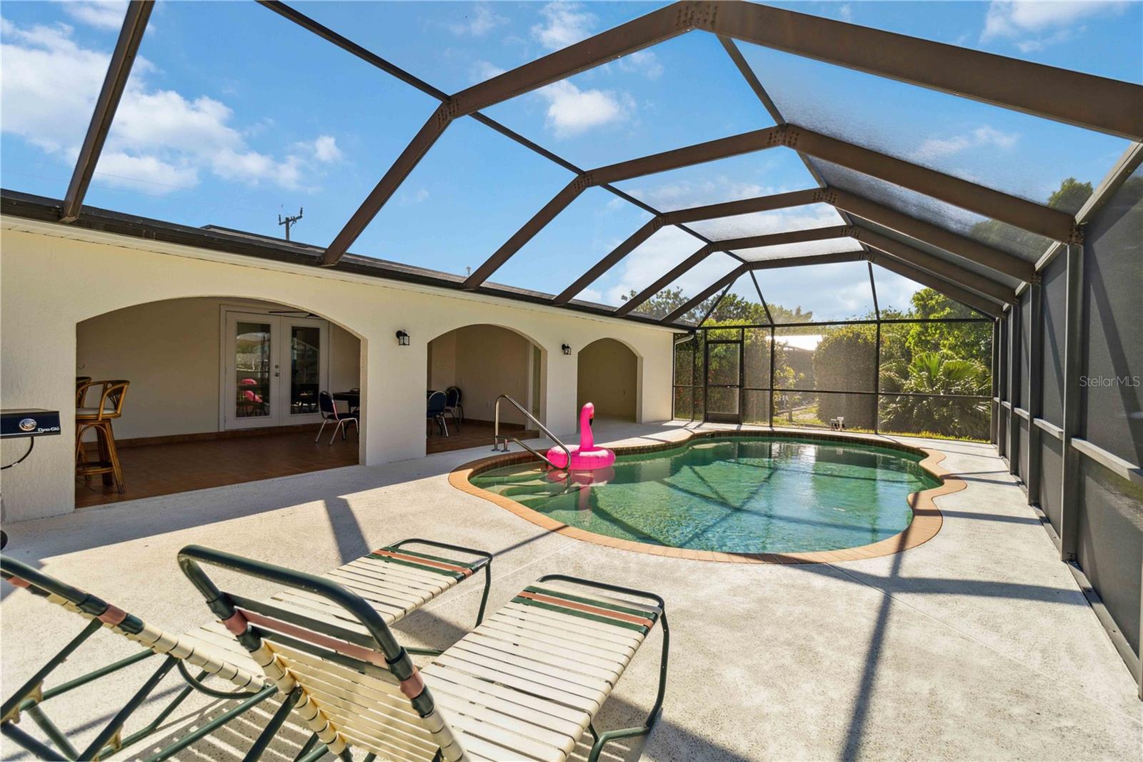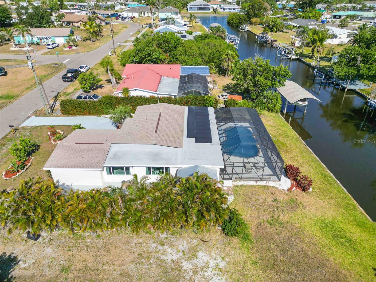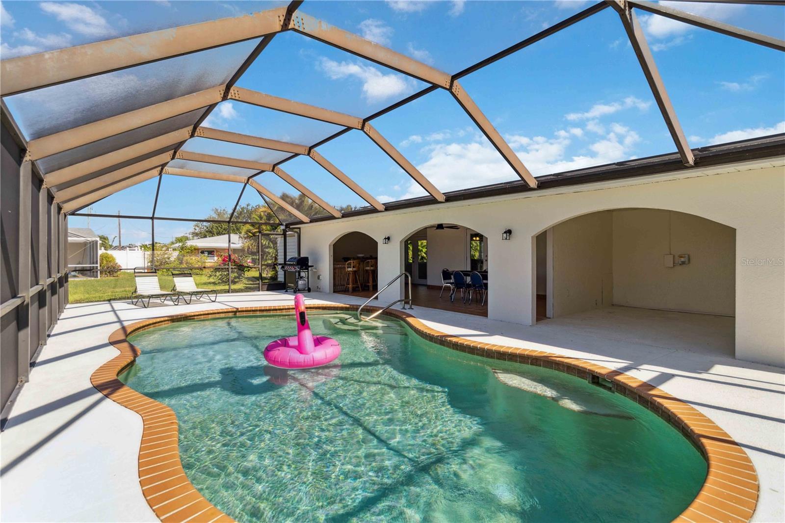 Owners are motivated! Bring all reasonable offers! Experience the ultimate in Florida waterfront living with this elegant 3-bedroom, 2-bathroom pool home nestled along the scenic Sunrise Waterway in beautiful Port Charlotte. Boasting 80 feet of pristine canal frontage with direct access to Charlotte Harbor and the Gulf of Mexico, this exquisite residence blends luxury, comfort, and convenience in a tranquil setting. Step inside to discover an expansive great room adorned with French doors that open onto a stunning lanai and saltwater pool, creating a seamless transition between indoor and outdoor living. A wall of sliders reveals a bright Florida room perfect for relaxed dining and entertaining. The beautifully updated galley kitchen features brand-new stainless steel appliances, granite countertops, and custom cabinetry, ideal for preparing meals while enjoying views of the water. The thoughtfully converted garage now serves as a luxurious primary suite, complete with built-in closets and a stylish, newly remodeled ensuite bath. On the opposite side of the home, two serene guest bedrooms share a modern bathroom with a walk-in shower. The outdoor oasis includes a covered lanai with brand-new screens, a screened-in saltwater pool, and a private 80-foot cement seawall, offering the perfect space to add a dock and boat lift for effortless days on the water. Additional highlights include a 12x8 storage shed, a newer roof with solar panels and A/C system from 2022, and a freshly painted exterior/interior. All windows are hurricane impact. A stackable washer and dryer add everyday convenience, discreetly tucked away in a closet off the primary suite. Located in a quiet, well-maintained neighborhood close to shops, dining, beaches, golf, and top-rated schools, this home is just minutes from Port Charlotte Beach Park with its public beach, playgrounds, tennis courts, boat ramp, and more. This is your chance to own a slice of waterfront paradise—where style, function, and location meet in perfect harmony.
