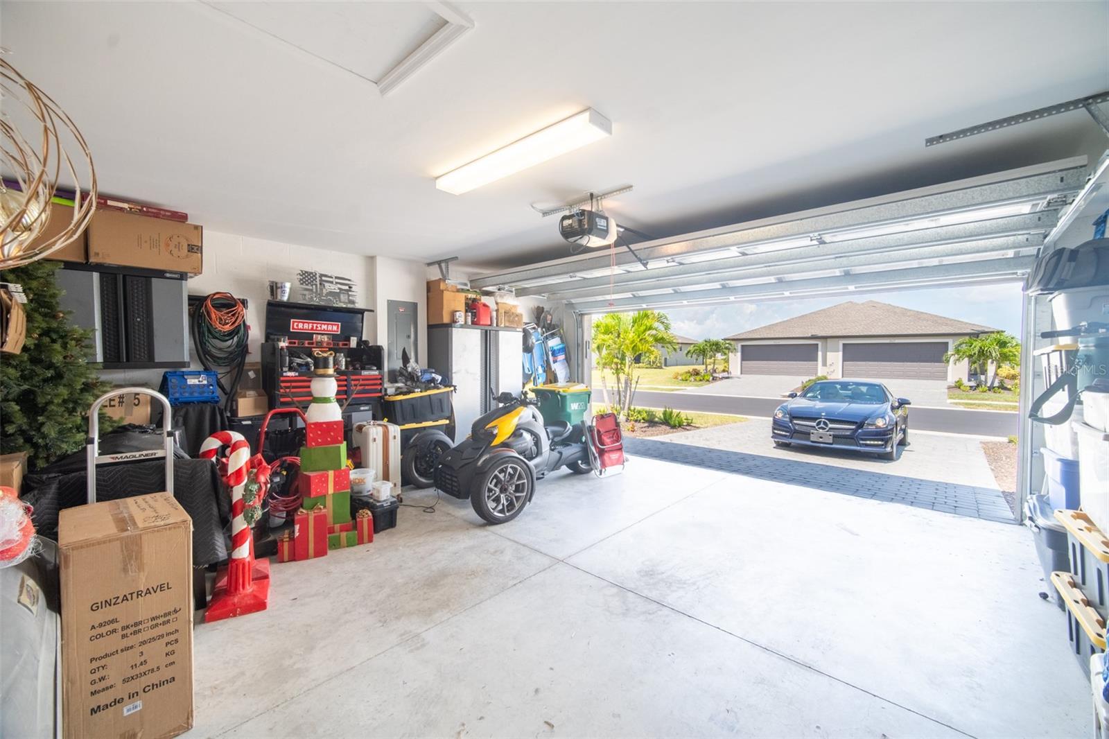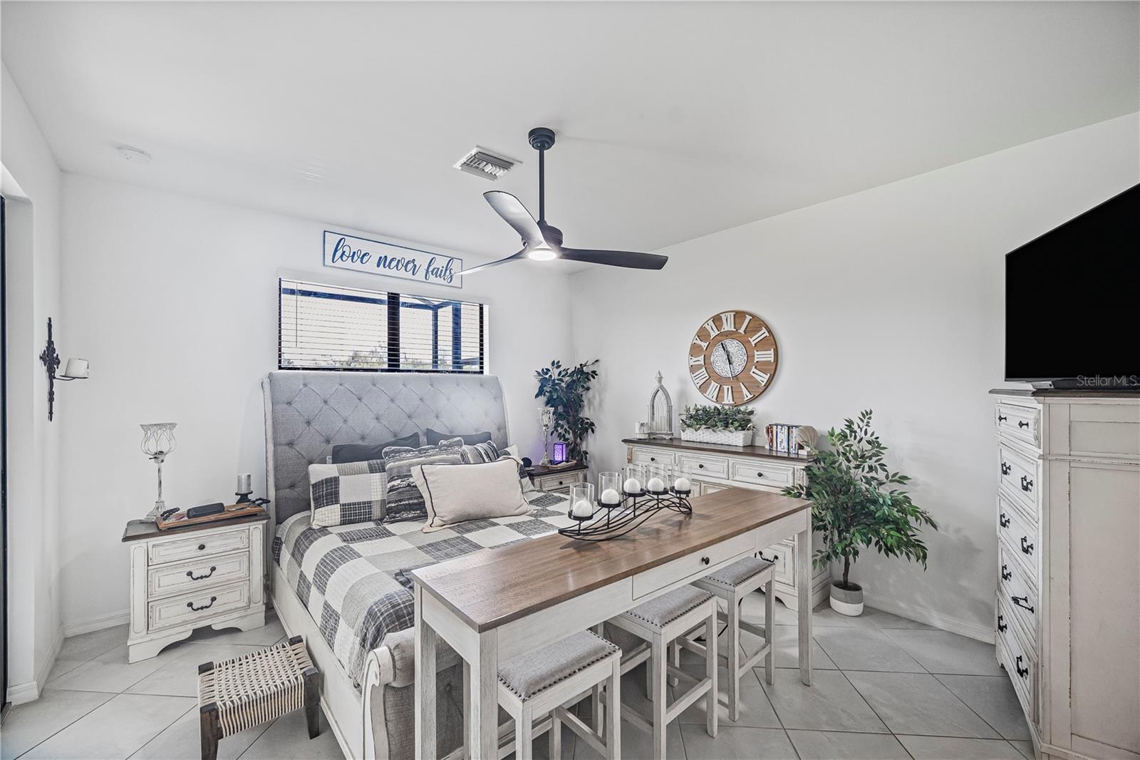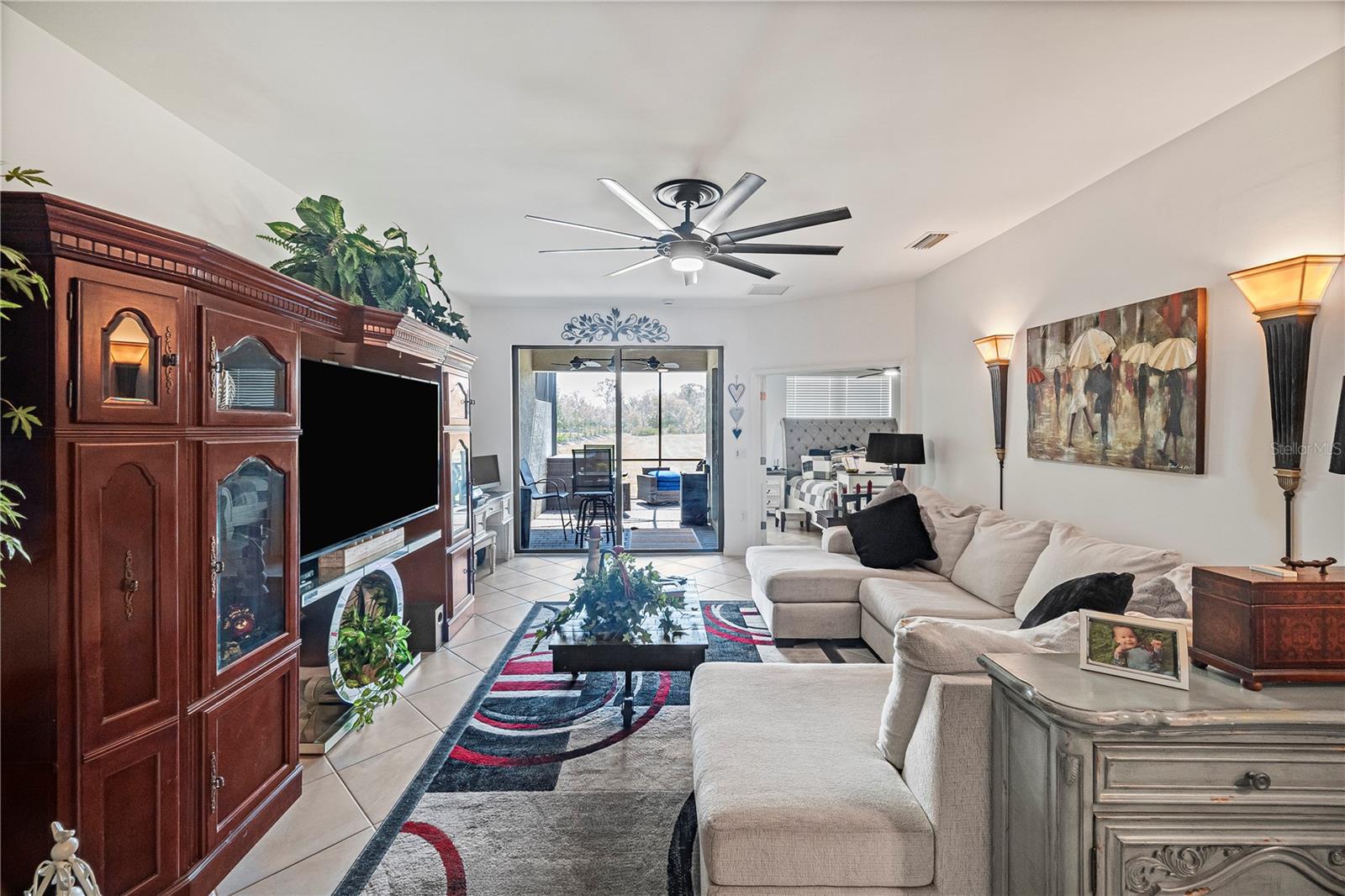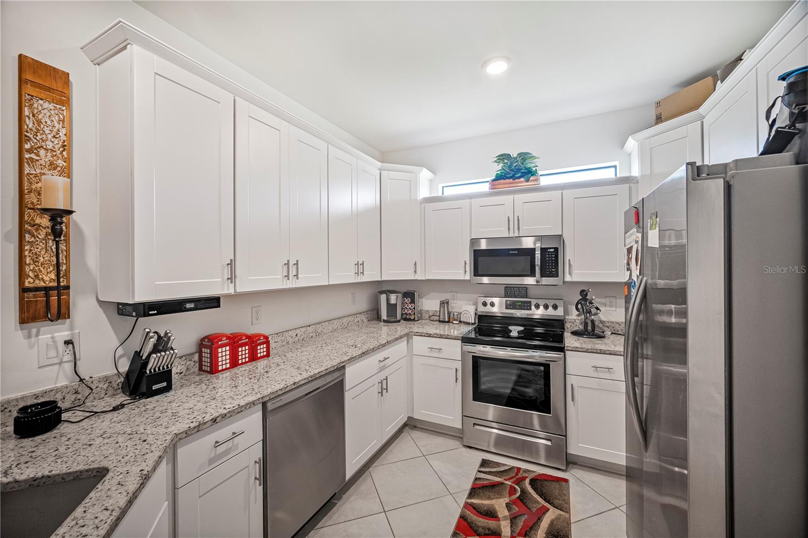 This almost new villa is located in the popular gated community of Biscayne Landing and offers 2 bedrooms, 2 bathrooms, and a versatile den/office that is currently being used as a third bedroom/guest room. The home features a split floor plan with high ceilings, ceramic tile throughout, and an open-concept layout ideal for both family living and entertaining. The kitchen is a standout with 42-inch cabinets, crown molding, stainless steel appliances, granite countertops, a large stainless sink, and a spacious pantry. The garage is 20'x20' and the paver driveway adds excellent curb appeal. The primary suite is generously sized with double windows, sliding doors to the lanai, a large walk-in closet, dual vanities, a large glass-enclosed walk-in shower, and a private water closet. The guest bedroom offers an oversized closet and fan. Second full bathroom with granite counters and a tiled tub/shower combo. French doors open to the den, adding flexibility for use as an office, third bedroom, or flex space. Enjoy a private, oversized lot with a covered lanai and extended screened patio finished in low-maintenance pavers, with peaceful nature and lake views. The HOA covers Wi-Fi, basic cable, lawn maintenance, community facilities, city water/sewer, reclaimed irrigation water, and more—with no CDD fees or flood insurance required. Located near top shopping, dining, beaches, golf, and entertainment. Come see how you can live like you're on vacation every day.