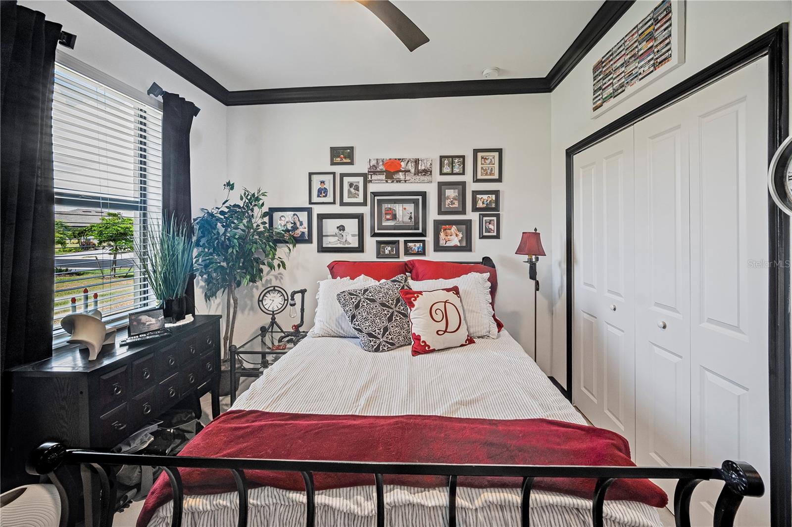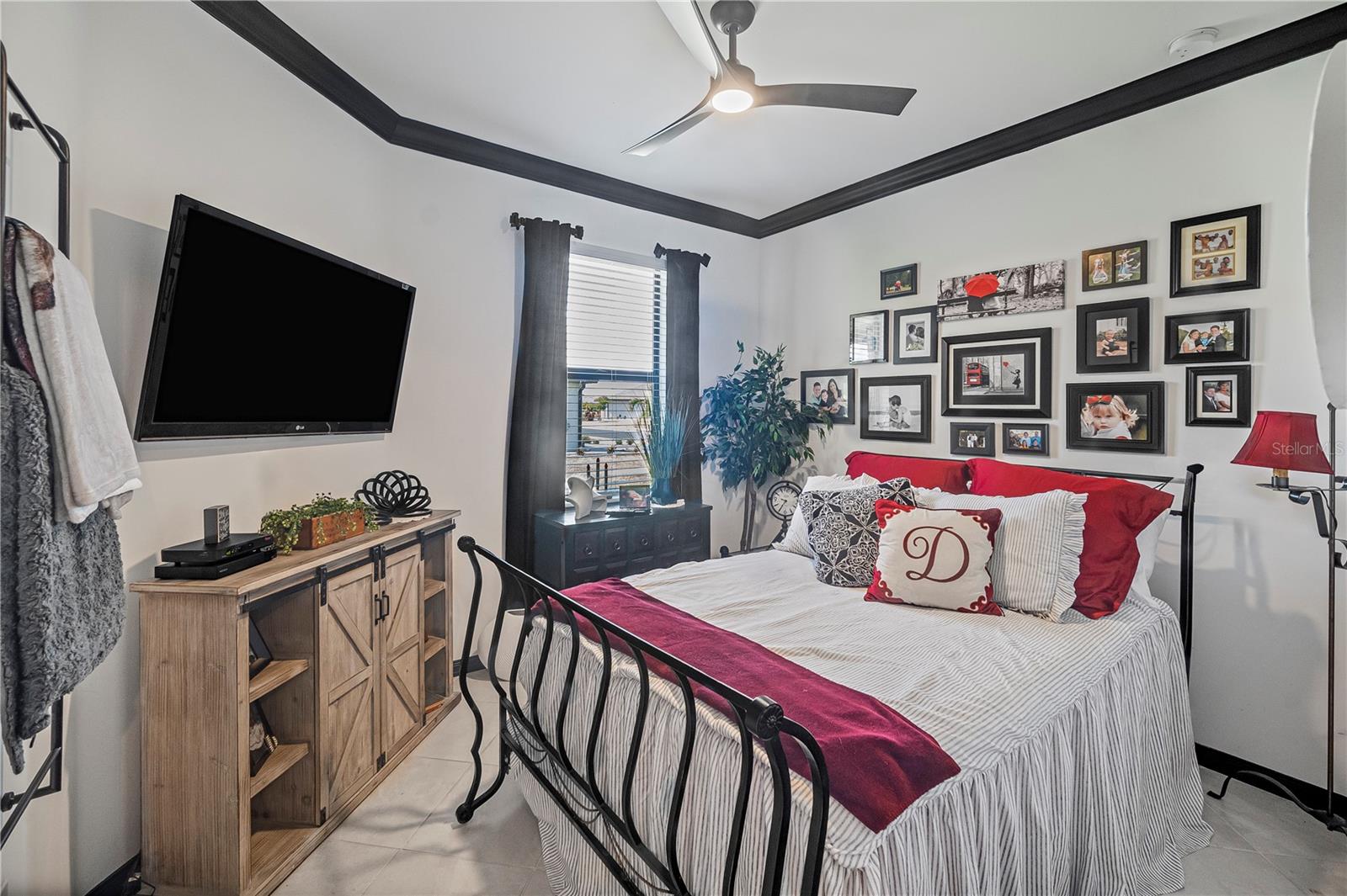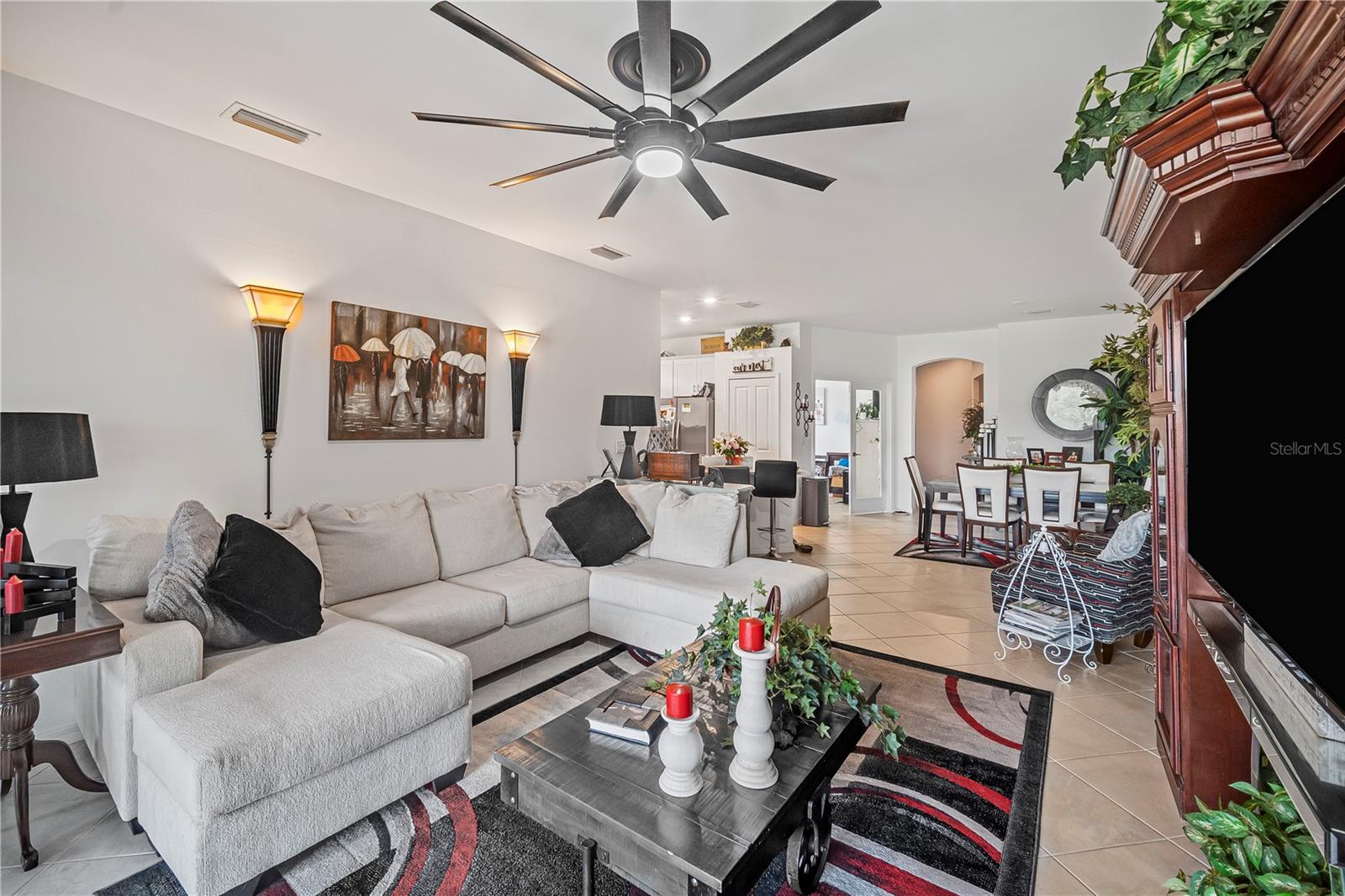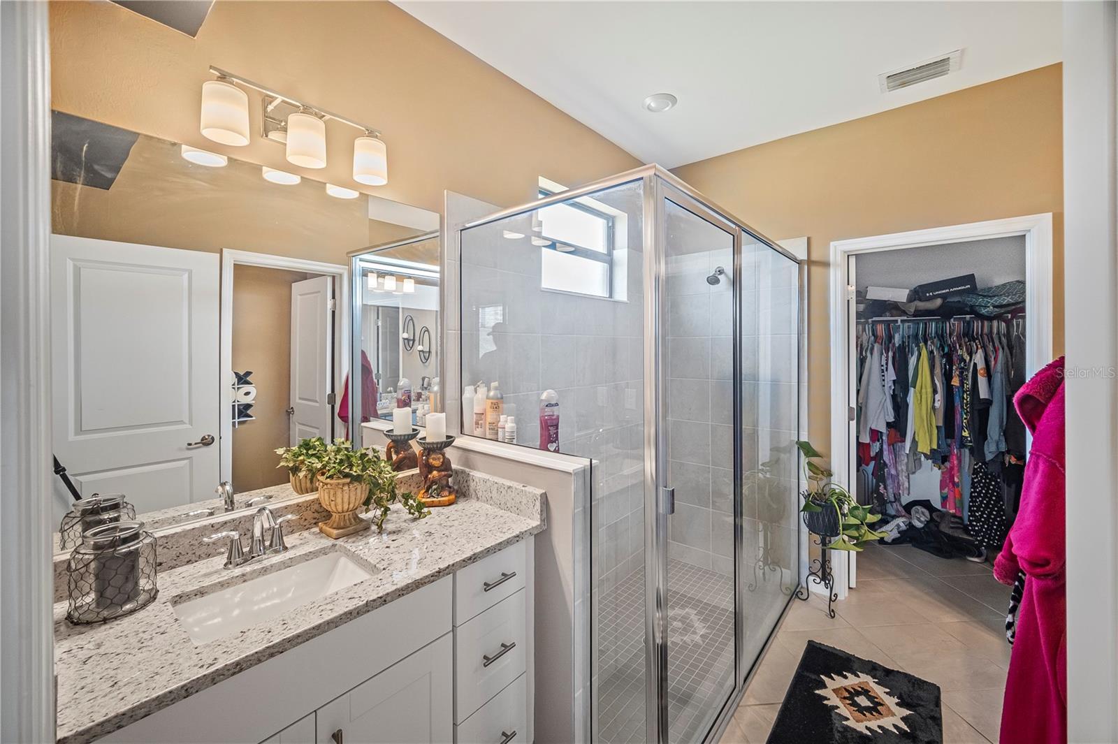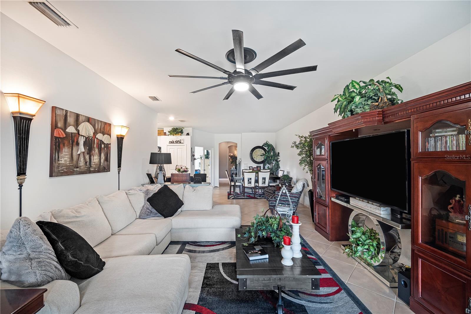 This almost new villa is located in the popular gated community of Biscayne Landing and offers 2 bedrooms, 2 bathrooms, and a versatile den/office that is currently being used as a third bedroom/guest room. The home features a split floor plan with high ceilings, ceramic tile throughout, and an open-concept layout ideal for both family living and entertaining. The kitchen is a standout with 42-inch cabinets, crown molding, stainless steel appliances, granite countertops, a large stainless sink, and a spacious pantry. The garage is 20'x20' and the paver driveway adds excellent curb appeal. The primary suite is generously sized with double windows, sliding doors to the lanai, a large walk-in closet, dual vanities, a large glass-enclosed walk-in shower, and a private water closet. The guest bedroom offers an oversized closet and fan. Second full bathroom with granite counters and a tiled tub/shower combo. French doors open to the den, adding flexibility for use as an office, third bedroom, or flex space. Enjoy a private, oversized lot with a covered lanai and extended screened patio finished in low-maintenance pavers, with peaceful nature and lake views. The HOA covers Wi-Fi, basic cable, lawn maintenance, community facilities, city water/sewer, reclaimed irrigation water, and more—with no CDD fees or flood insurance required. Located near top shopping, dining, beaches, golf, and entertainment. Come see how you can live like you're on vacation every day.
