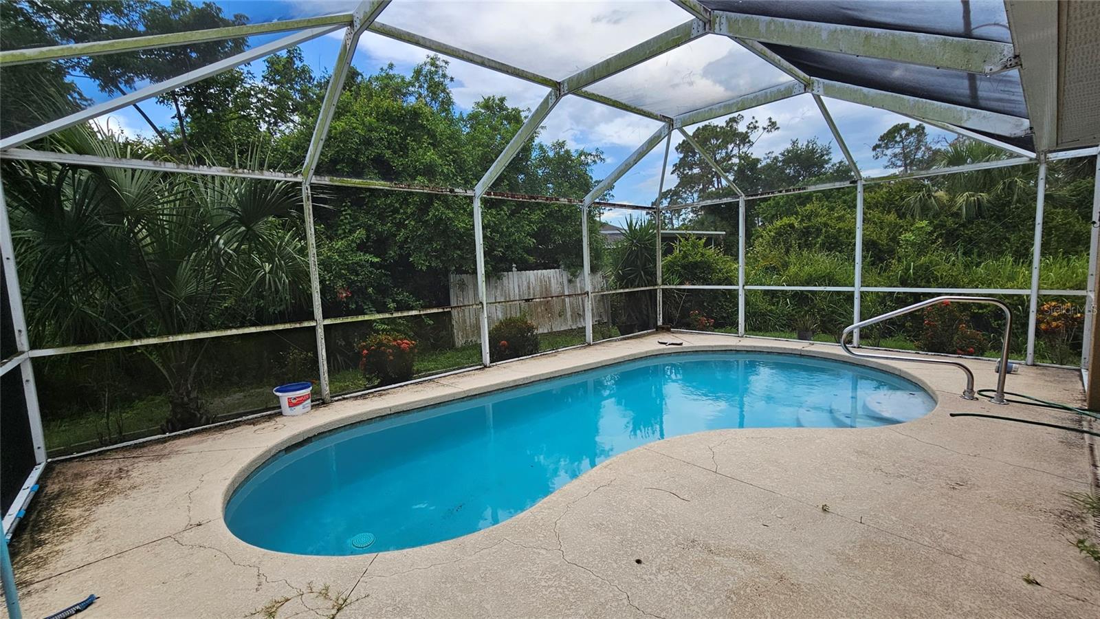Do you need a " Project"??? This house is for you!!!! New roof June 2025. Interior needs work, flooring, drywall, painting, appliances, updating, etc. It's a gem in Port Charlotte with a pool and three bedrooms, two baths, family room, two car garage, lanai in a very nice area too. This is a good buy for an investor or first-time home buyer. It's not far from shopping. Don't miss this opportunity!!!