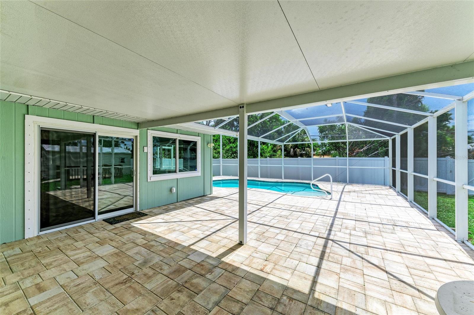 Are you looking for NO HOA so you can park your business vehicles, RV, or boat? Need to build an in-law suite/cottage? This move-in ready 3 bedroom, 2 bath ranch home on 1/3 acres has MANY POSSIBILITIES!!! The master bedroom is spacious with a large walk in shower . The split floor plan has two bedrooms on the opposite end of the home and a separate bathroom. The kitchen features wood cabinets, granite countertops and stainless steel appliances . There's even a pass through serving window to the lanai from the kitchen. Professionally cleaned and freshly painted interior, it is ready for a new owner. New ROOF and new heated pool/paver deck/lanai and cage installed in 2024. NEW PVC fence (single and double gate entry) to let your pets roam free. There is a large storage shed for yard equipment or use as a workshop. The garage has been divided with a laundry room and separate storage. It can be easily converted back into a single car garage. No hassle with a well or septic maintenance. This home is on both city water and sewer. There is a combination of impact glass windows and galvanized hurricane panels for the home. Come check out this double lot property with close access to everyday needs. Nearby access to public boat ramps. Schedule your showing today!