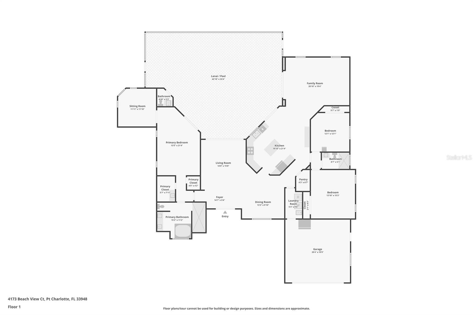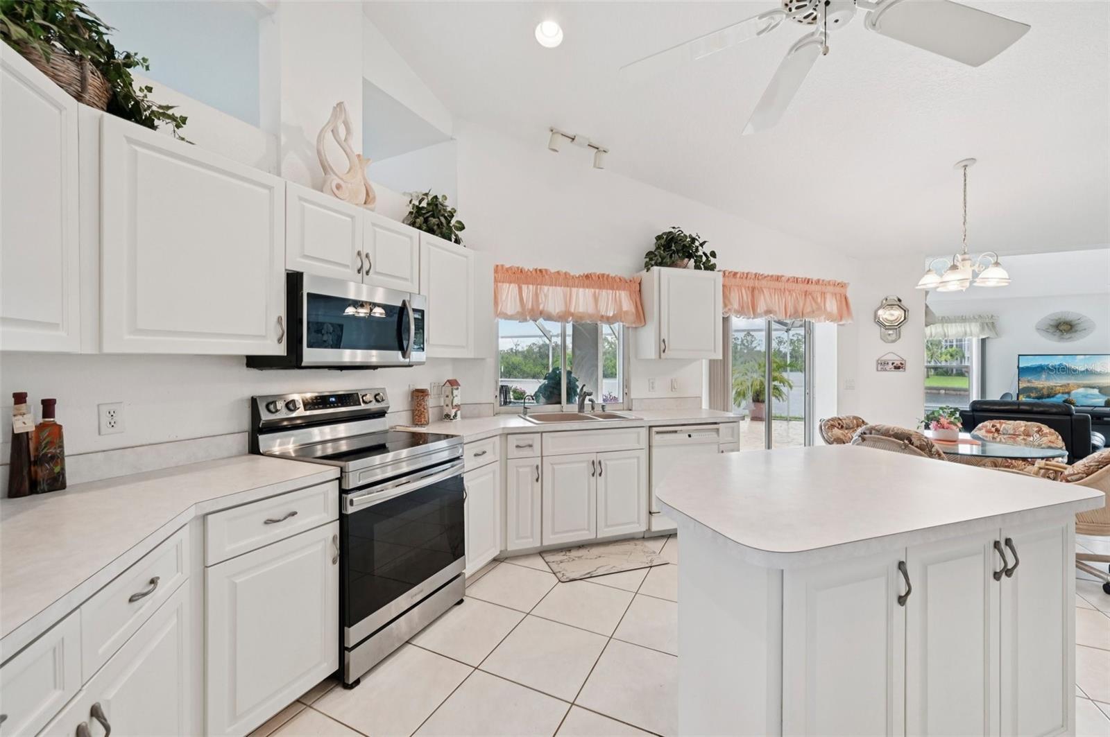 Start living your best life now in this exquisite WATERFRONT residence equipped with a plethora of custom design elements by J&J CUSTOM HOMES. Situated at the end of a cul-de-sac on a TIP LOT nearly 1/2 ACRE in size, this home offers panoramic views of the Harborview waterway, which provides direct SAILBOAT ACCESS to Charlotte Harbor. The home has been diligently and lovingly maintained by the original owner with updates and upgrades including : HOUSE REPIPED IN 2016, NEW HVAC IN 2020, HURRICANE RATED WINDOWS AND A TRANSFERRABLE FLOOD INSURANCE POLICY THAT IS ONLY $2100.00 YEARLY!! Designed with both elegance and comfort in mind, the home features a separate living room and dining room for more formal events as well as an open kitchen and family room layout, ideal for relaxed coastal living. The primary bedroom features a large, attached PRIMARY SITTING ROOM, a DRESSING ROOM with built-in vanity and sink, and a luxurious bathroom with separate tub and oversized walk in shower. The guest bedrooms are amply sized and can be easily closed off with the pocket door off the kitchen. A pool with waterfall overlooking the water, thoughtfully placed pool bath, and covered porch provide the perfect backdrop for year-round enjoyment. Mature tropical landscaping surrounds the home, complementing the concrete curbing, feature waterfall pond and beautifully patterned, pressed concrete driveway. This distinguished property presents an exceptional opportunity for refined waterfront living in a truly unique and serene setting.