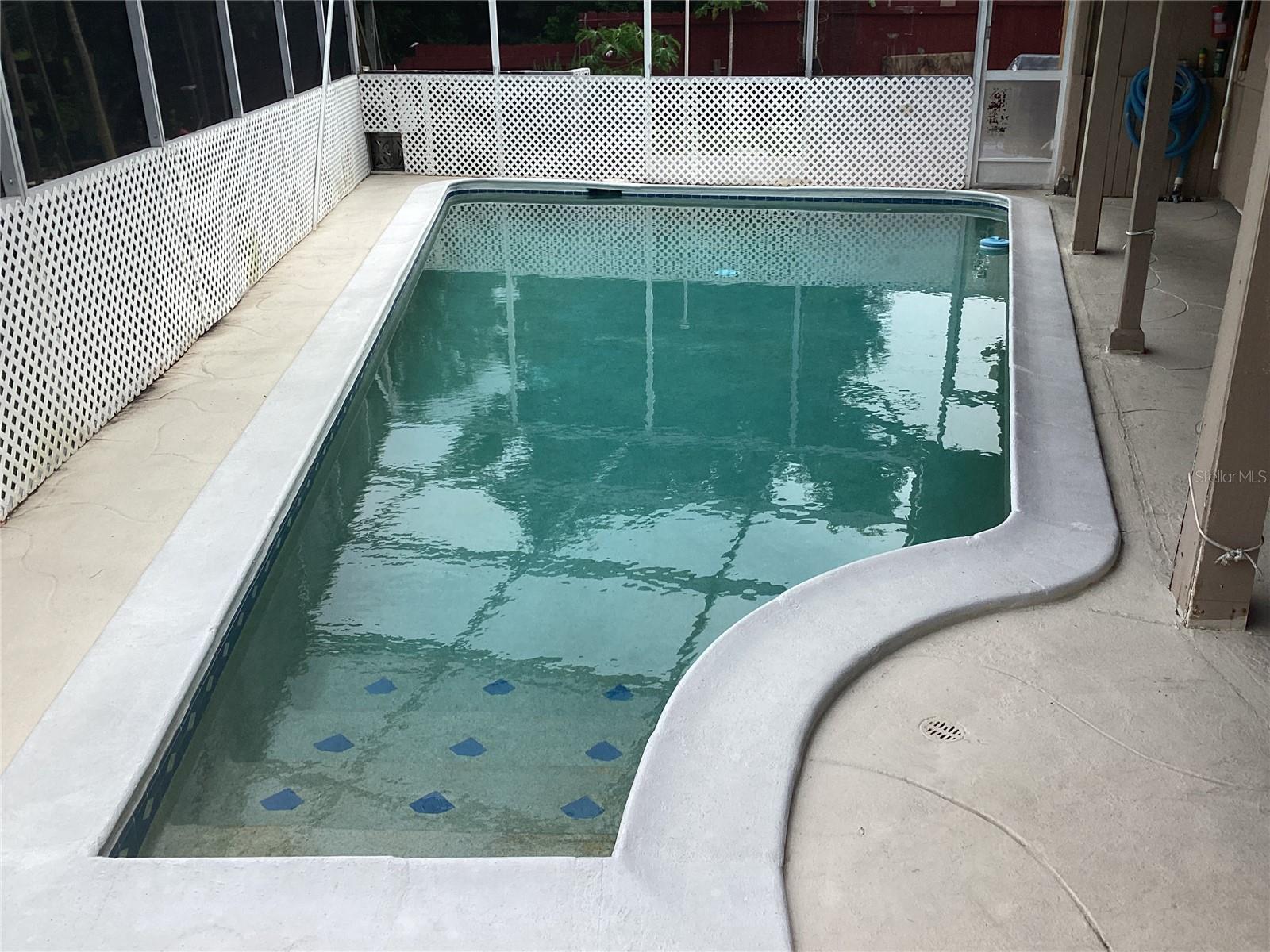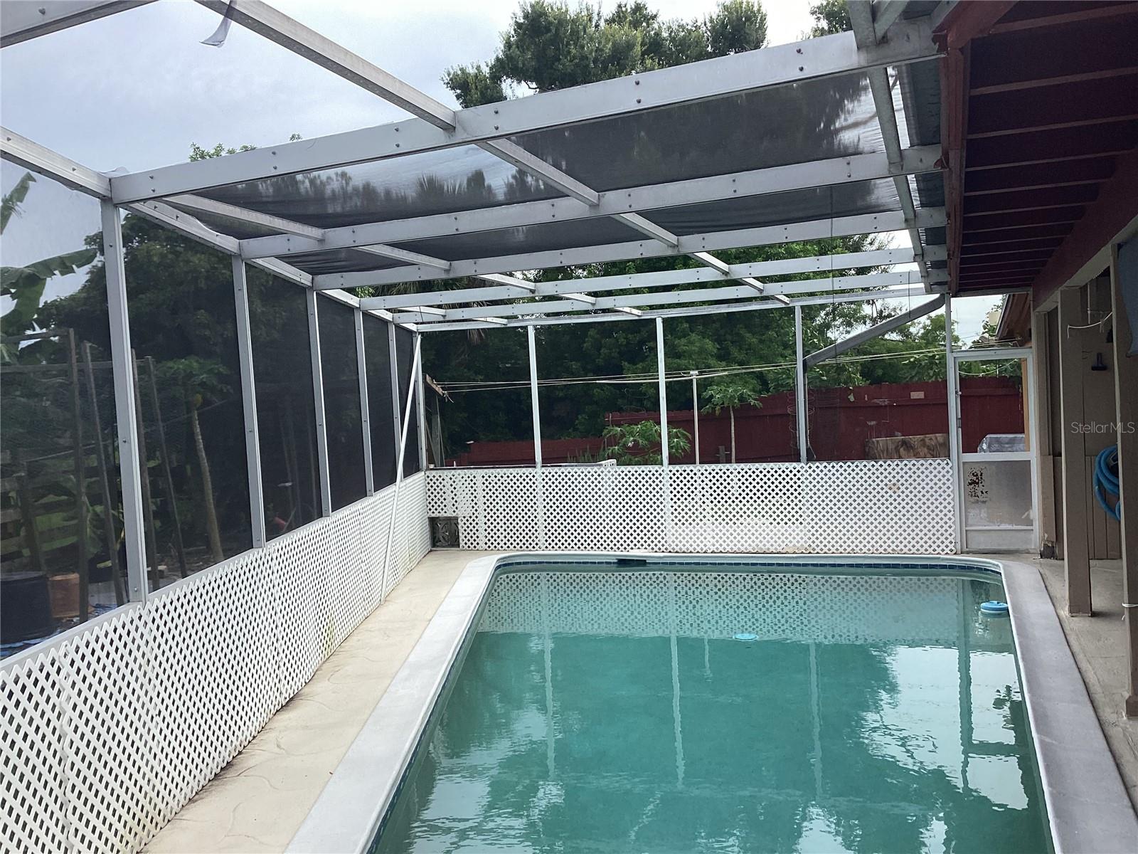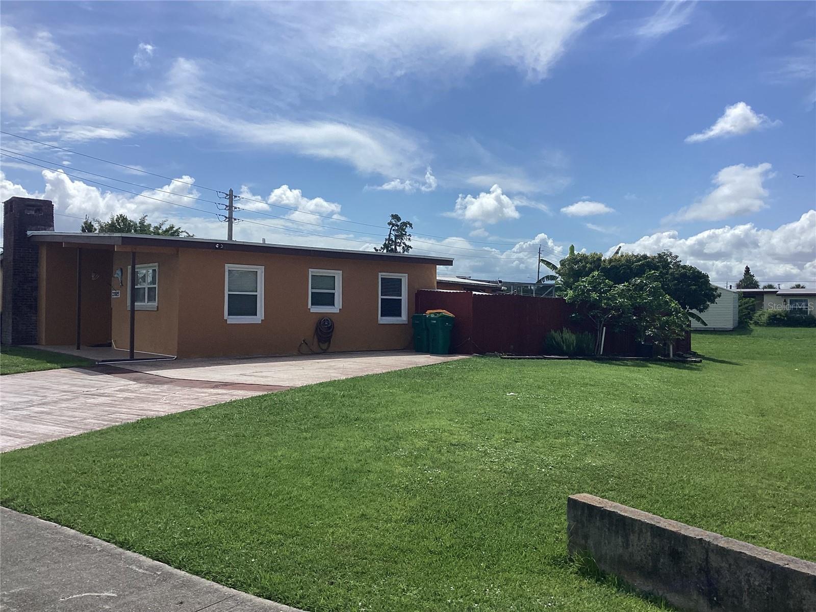 INVESTOR ALERT! UPDATING NEEDED BUT GREAT BONES! Gunite Inground pool, large corner lot with 50' greenspace surrounding property giving "large yard feel" Brick fireplace, cathedral ceilings, double wide driveway ready for carport, boat or RV parking, secondary driveway also.(corner lot) No hurricane damage, X-500 flood zone, Block & stucco build, single-hung double insulated windows previously installed, tile flooring atop terrazzo base makes luxury vinyl install a breeze! Previously upgraded electric panel. UNIQUE Floorplan bring your vision, good bones with great square footage to work with! Seller anxious all ready moved east! Come with your ideas and make this home yours.